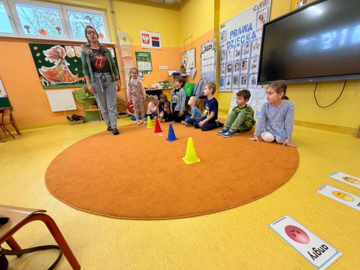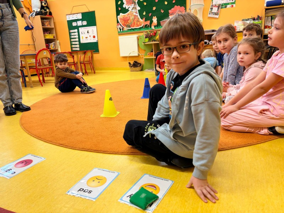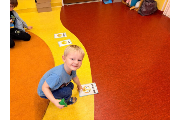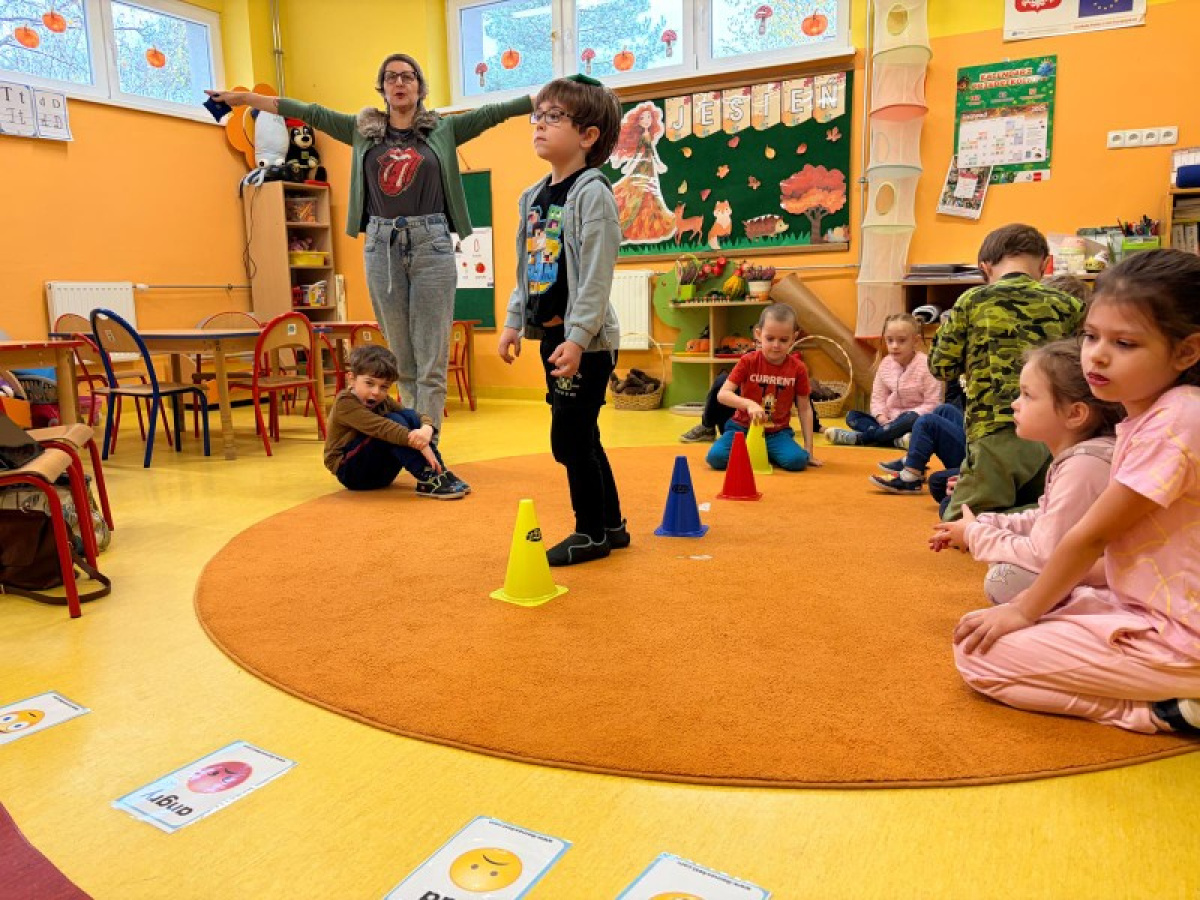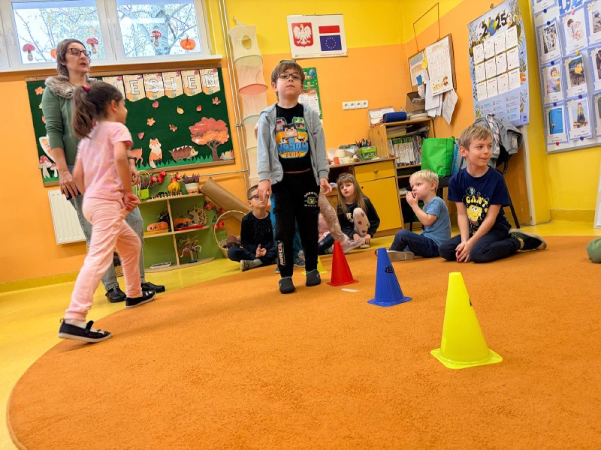 Pani Paulina zdążyła już dobrze poznać Kreciki. Wie, że najwięcej dzieci zapamiętają w ruchu i poprzez działanie. Na angielskim dzieciom w poznawaniu nowego słownictwa pomaga właśnie aktywność fizyczna. Ćwiczenia równoważne, slalomy, tory przeszkód i flashcards okazały się być bardzo dobrym połączeniem.