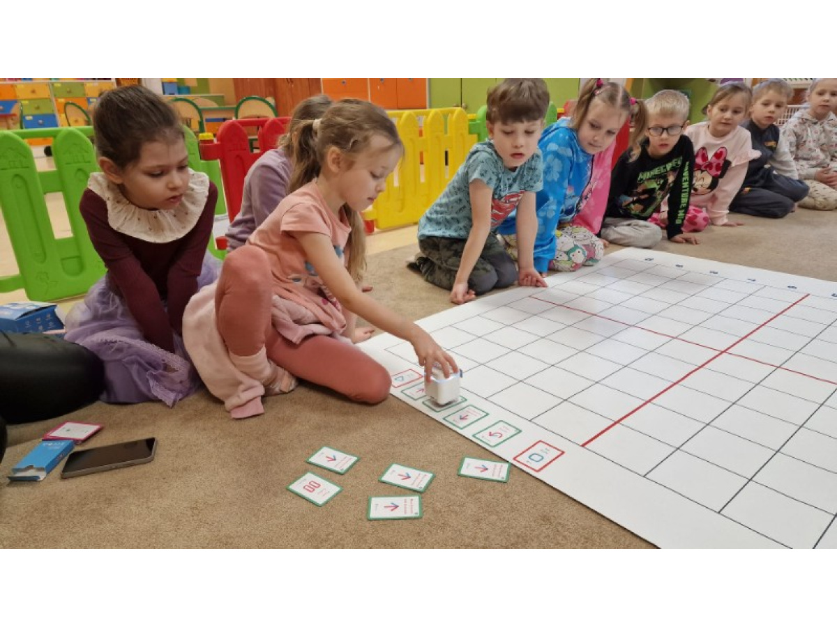 Podczas zajęć z kodowania Kreciki uczyły się programować robota edukacyjnego - GeniBota planując jego trasę i wydając mu proste polecenia. Dzieci rozwijały logiczne myślenie, orientację przestrzenną oraz umiejętność współpracy w grupie. Nauka przez zabawę sprawiła wszystkim wiele radości i satysfakcji z samodzielnie wykonanych zadań.
