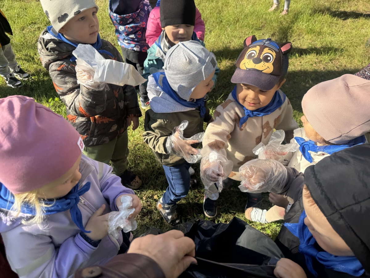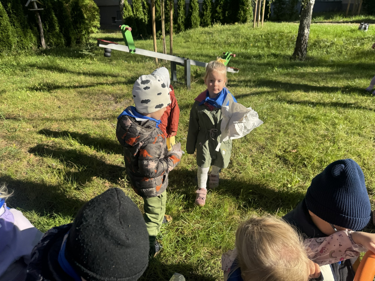 Dnia 25 września maluszki z grupy Misie po raz pierwszy sprzątały okolice przedszkola.