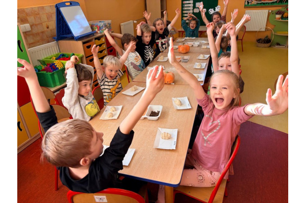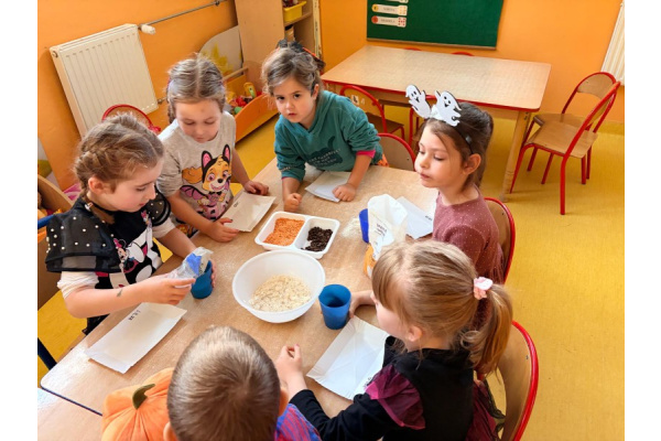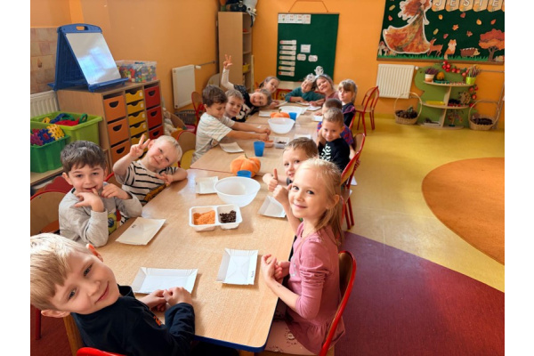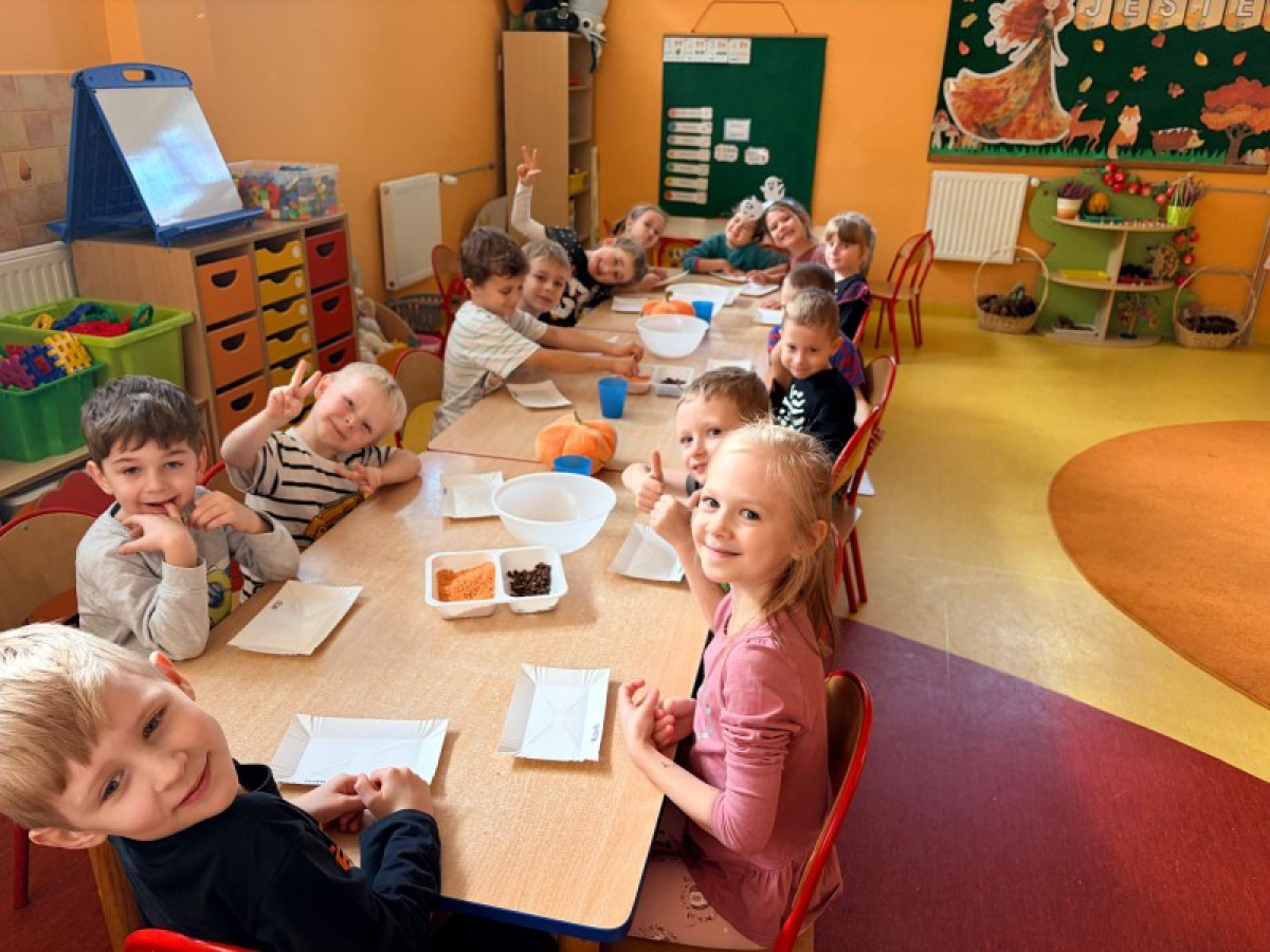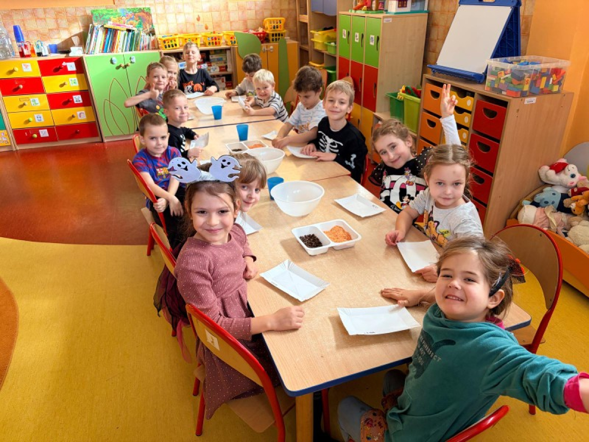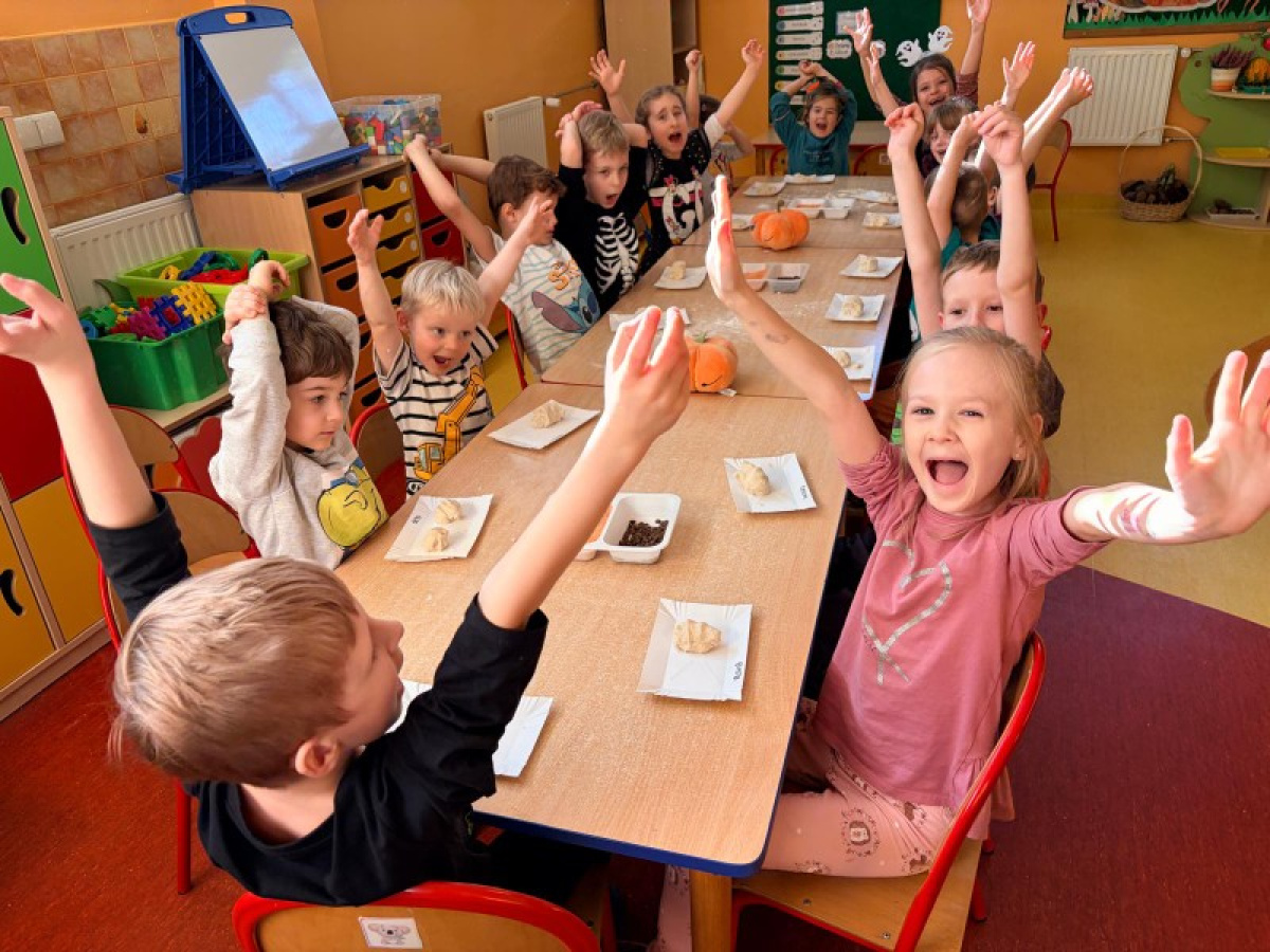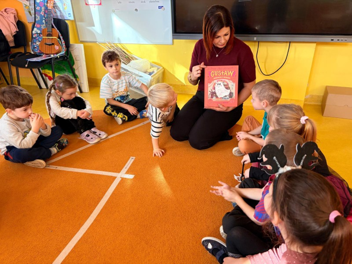 W Hallowen'owy piątek Kreciki nie próżnowały. Gimnastykę z dynią uprawiały, sensorycznie rączki trenowały oraz historię duszka Gustawa poznały. Okazuje się, że nie każdy duch straszy. Gustaw to bardzo nieśmiały duszek o wspaniałym talencie. Dziękujemy Kubusiowi, że umilił nam dzień tak wartościową lekturą.