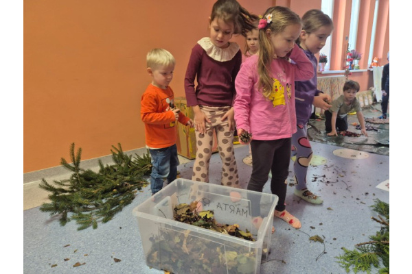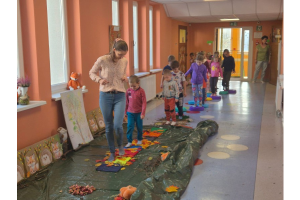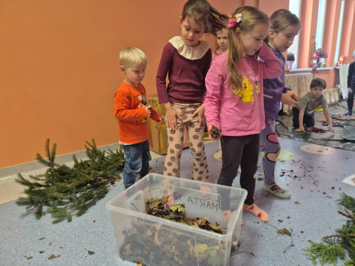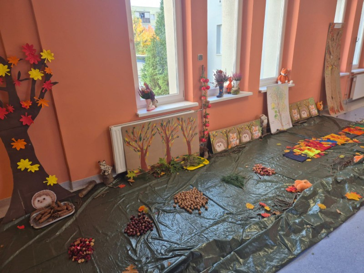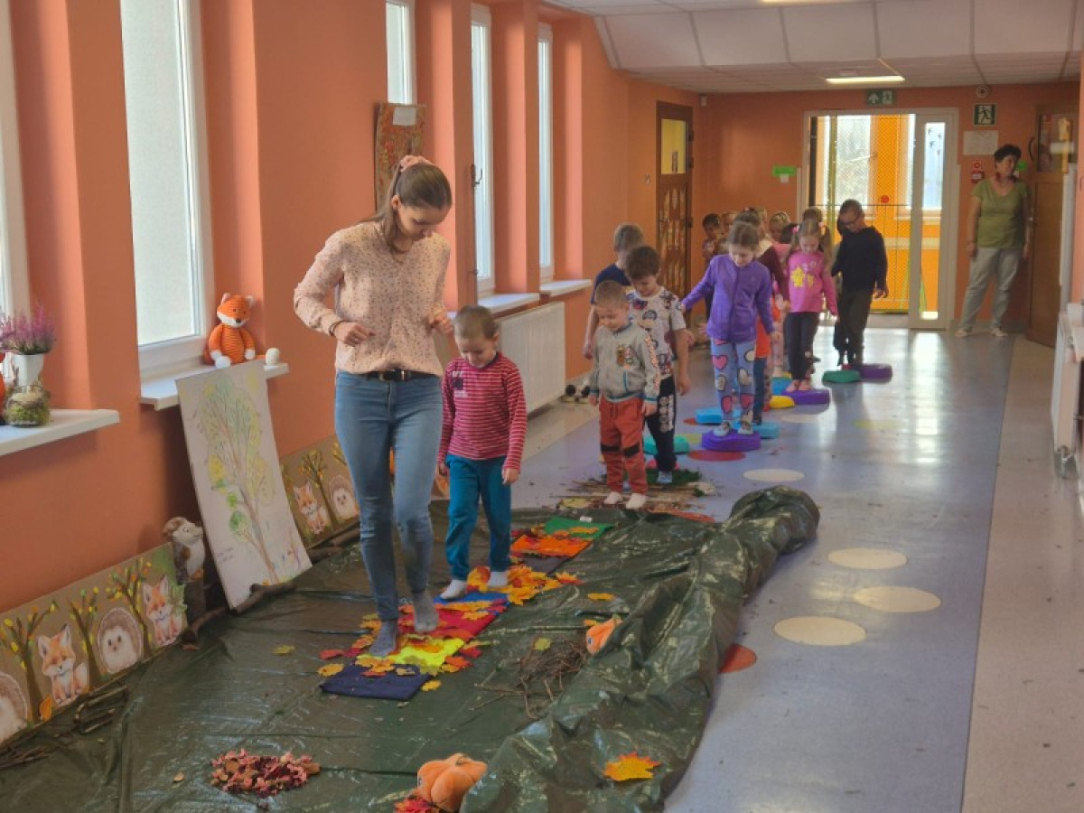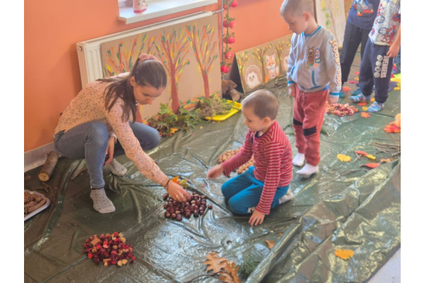 Kreciki codziennie przyglądają się zmianom zachodzącym w przyrodzie. Jesień to pora roku, która maluje świat wspaniałymi kolorami, jak również wiele może nam ofiarować. Od kilku dni zbieraliśmy wszelkie dary jesieni. Kasztany, orzechy, szyszki, liście... Wszystko to okazało się drogocennymi skarbami, dzięki którym w pochmurny dzień mogliśmy stworzyć w przedszkolu własną jesienną ścieżkę sensoryczną.