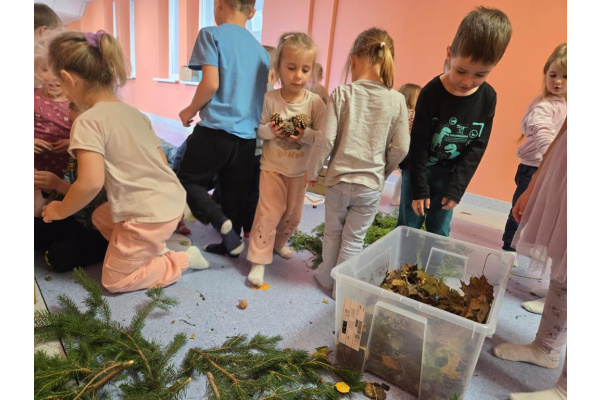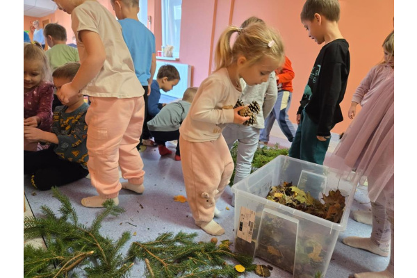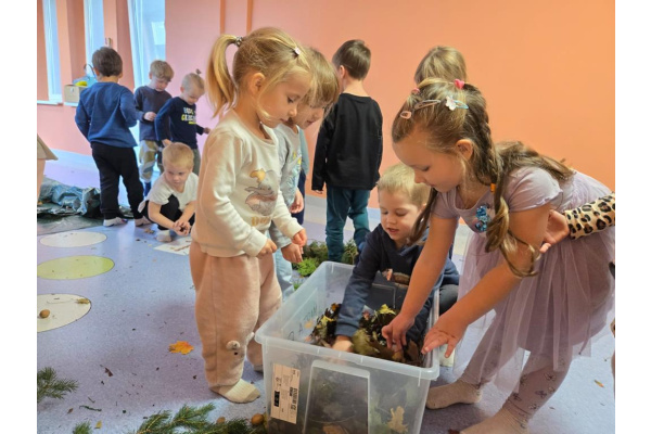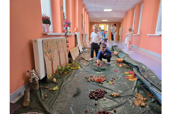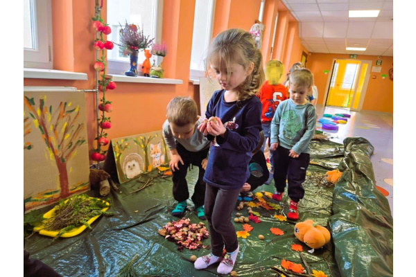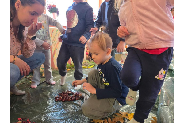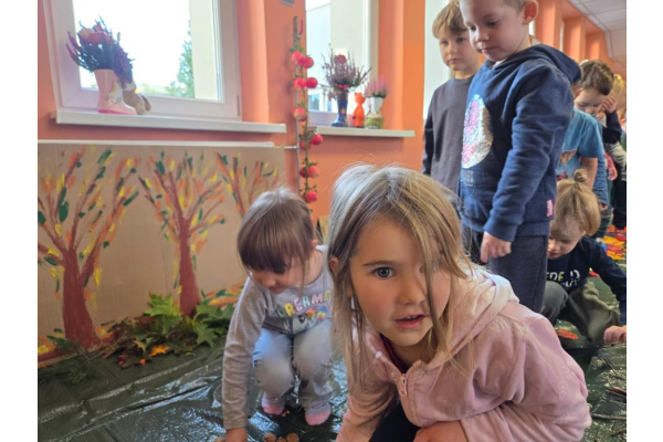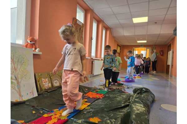 W drugiej połowie października Tygryski uczestniczyły w wyjątkowych zajęciach. Zorganizowana została "Jesienna ścieżka sensoryczna", dzięki której dzieci mogły poznawać dary jesieni różnymi zmysłami. Wędrując po dywanie z różnych faktur stworzonych z naturalnych jesiennych darów, dzieci rozwijały sensorykę, koordynację ruchową oraz wrażliwość na przyrodę. Tygryski były pełne pozytywnych emocji.