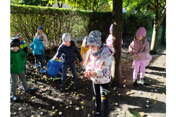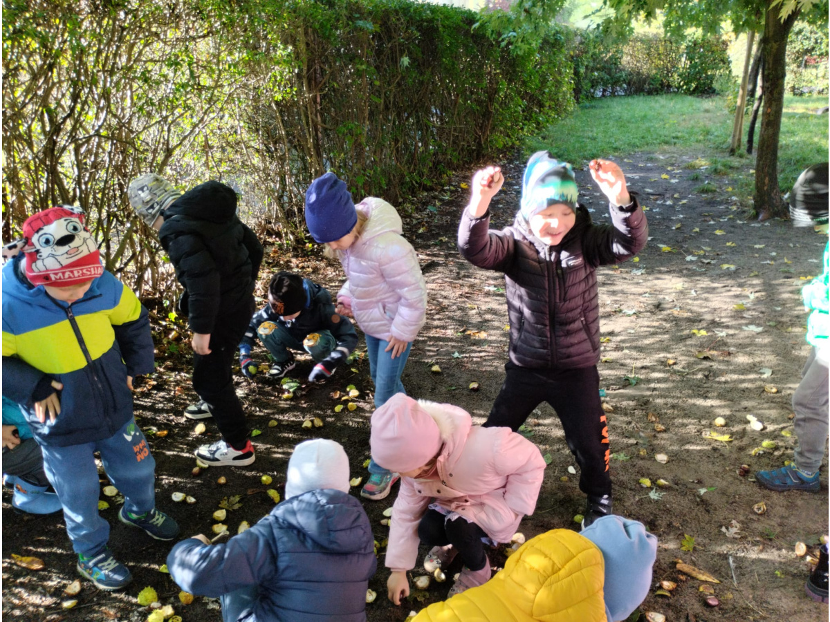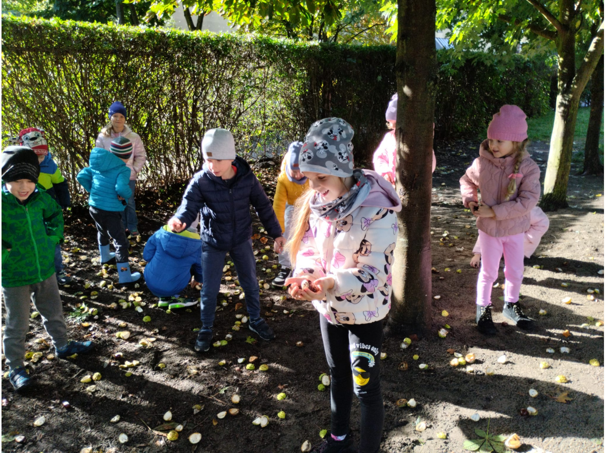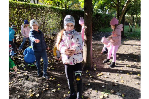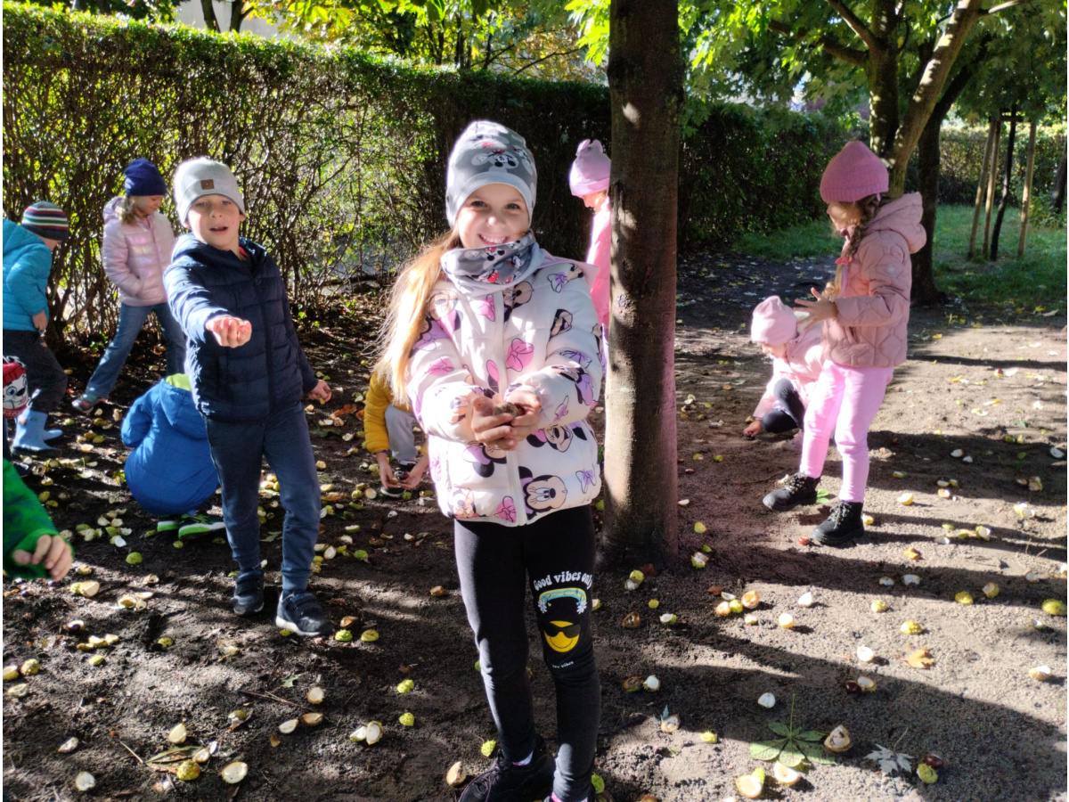 w przyrodzie związane ze zmieniającą się porą roku. Zabawy kolorowymi liśćmi, kasztanami i żołędziami, to jedne z ulubionych form spędzania czasu wolnego w przedszkolu. Cieszmy się jesienią, bo już niedługo nowa pora roku i przed dziećmi zimowe zabawy.