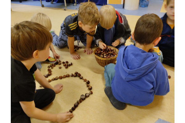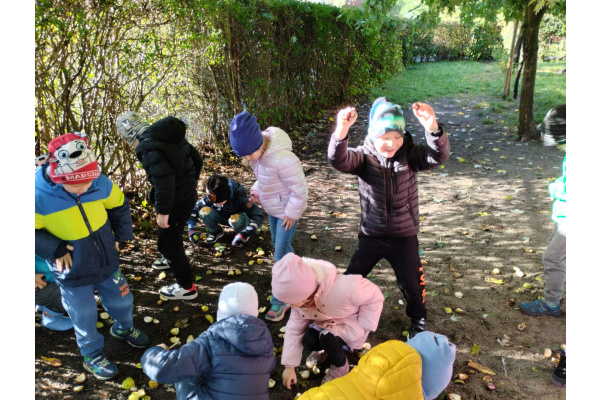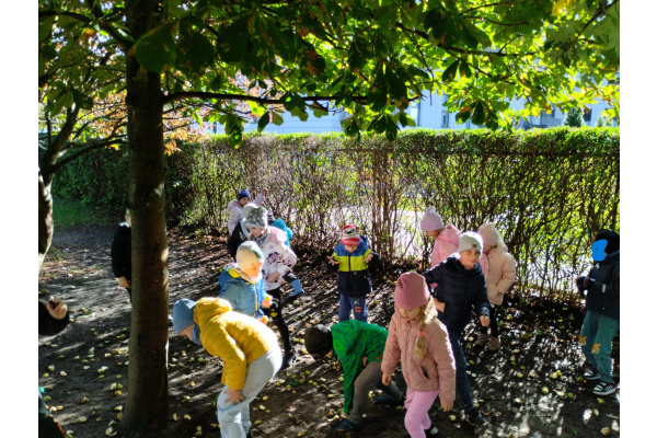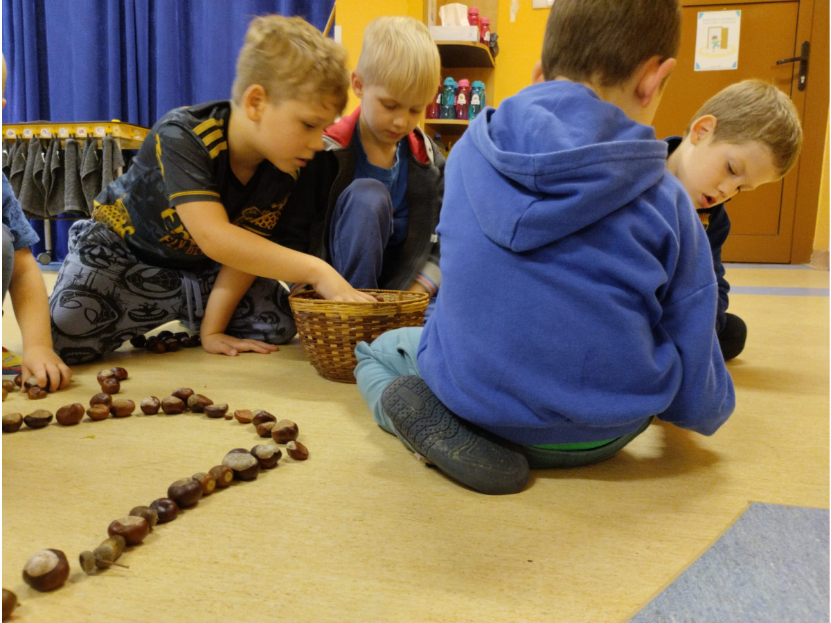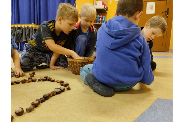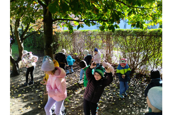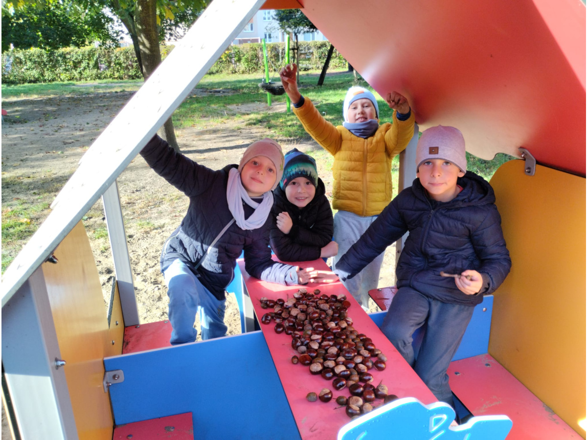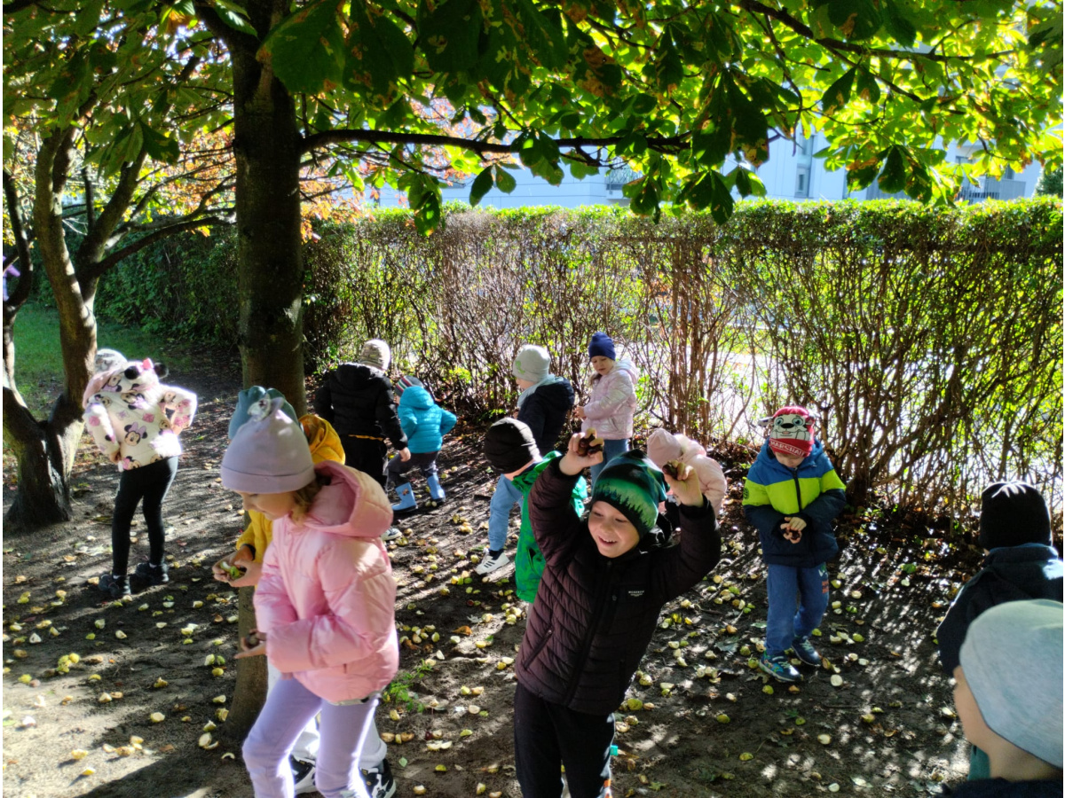 w przyrodzie związane ze zmieniającą się porą roku. Zabawy kolorowymi liśćmi, kasztanami i żołędziami, to jedne z ulubionych form spędzania czasu wolnego w przedszkolu. Cieszmy się jesienią, bo już niedługo nowa pora roku i przed dziećmi zimowe zabawy.