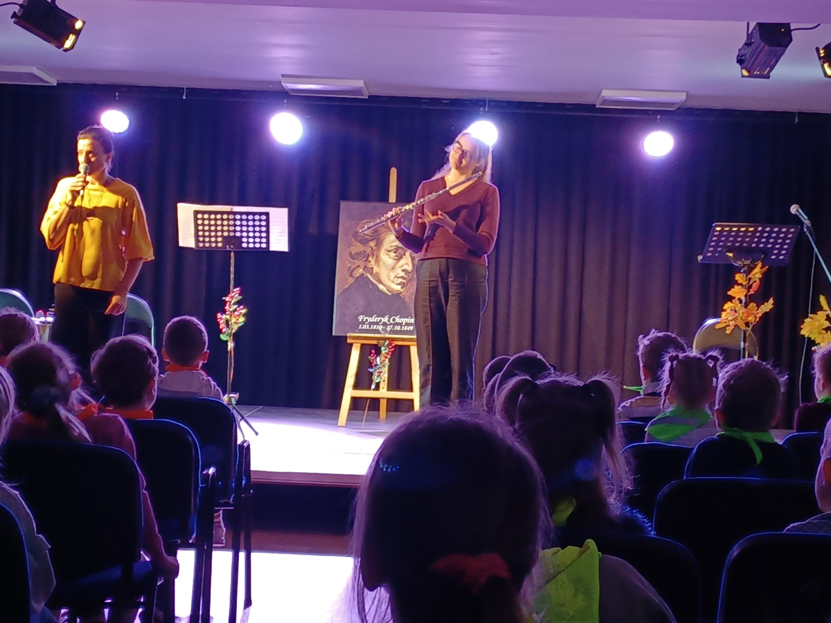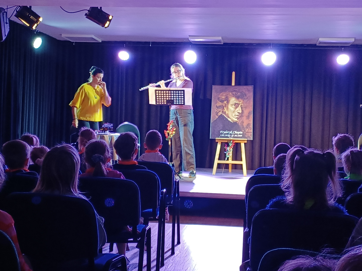 23. października udaliśmy się na koncert do MDK, który był poświecony Fryderykowi Chopinowi. Dzieci miały okazję dowiedzieć się kim był Chopin, jaką rolę w jego twórczości odegrała muzyka ludowa. Żabki z ogromnym zainteresowaniem wsłuchiwały się w dźwięki pianina czy fletu poprzecznego.