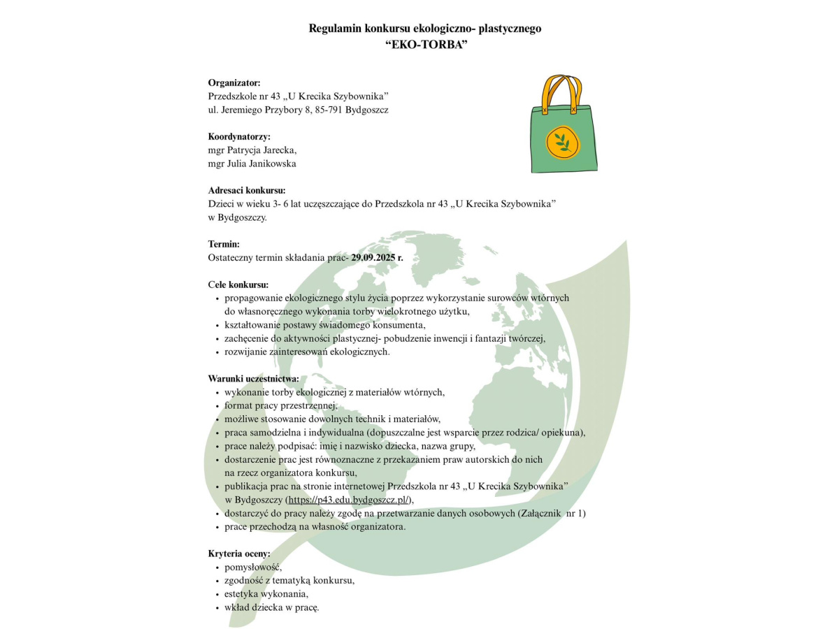 Zapraszamy także do udziału w konkursie ekologiczno-plastycznym pt." Eko- Torba"