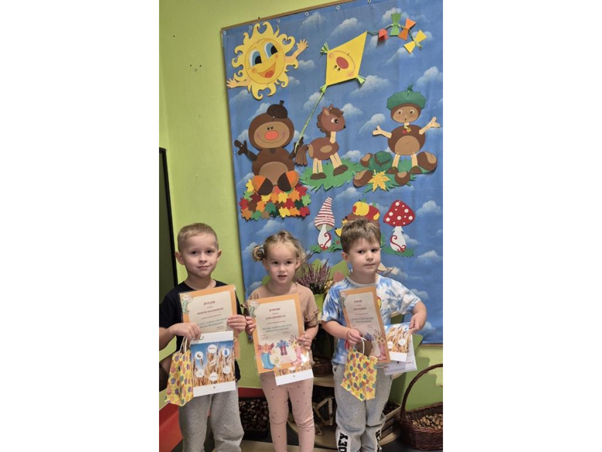 Serdecznie gratulujemy Zuzi, Lence, Adasiowi i Wiktorowi za udział w konkursie pt. 'Kalosze, których nie noszę'. Przepiękne ozdobne kalosze i zaangażowanie Rodziców mogliśmy podziwiać przed przedszkolem, gdzie wyeksponowane zostały wszyskie wykonane prace. Gratulujemy również Amelce, za udział w konkursie 'Eko torebka' i zdobycie I miejsca.