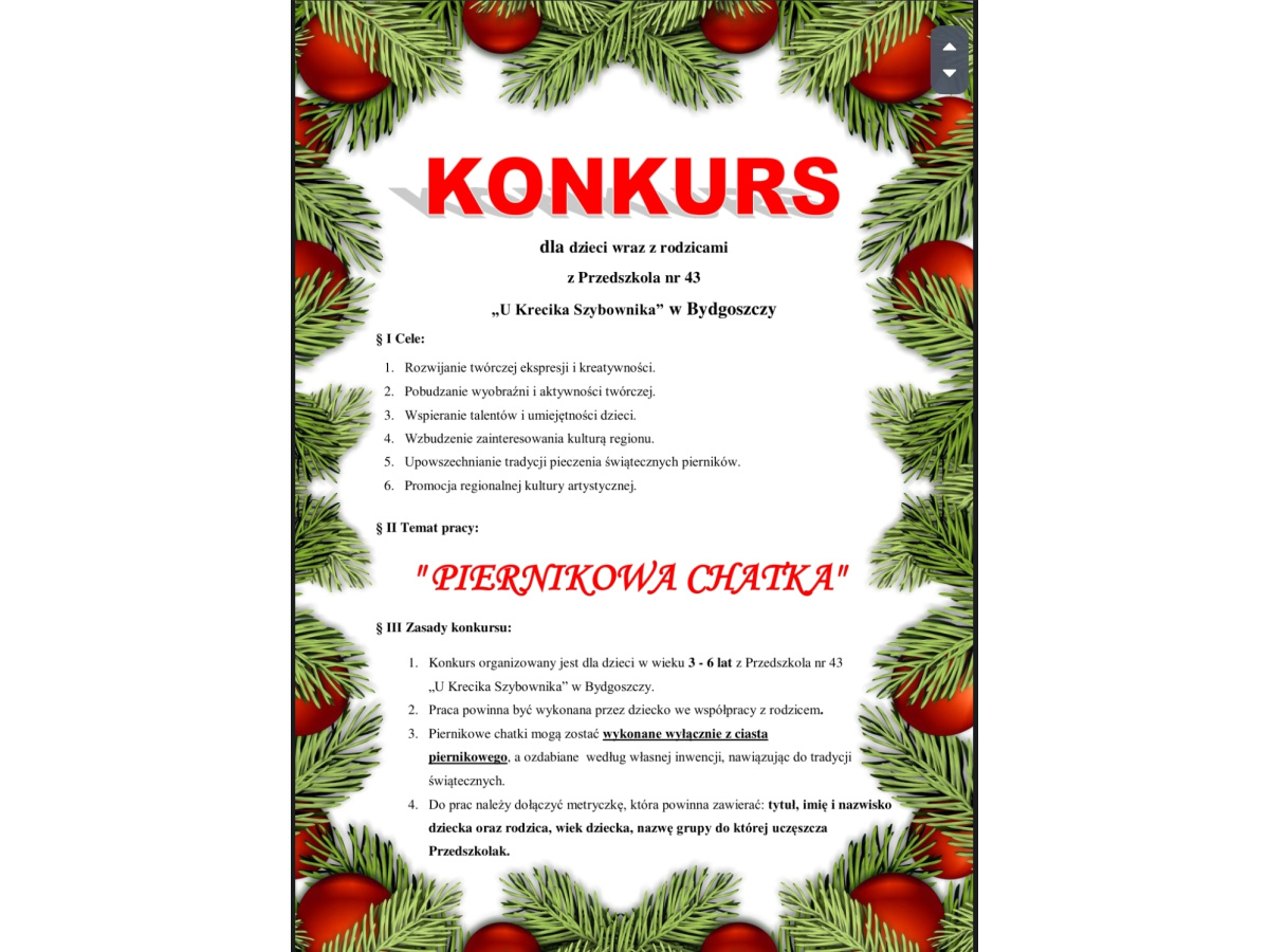 Serdecznie zapraszamy do udziału w konkursie rodzinnym pt. "Piernikowa Chatka"