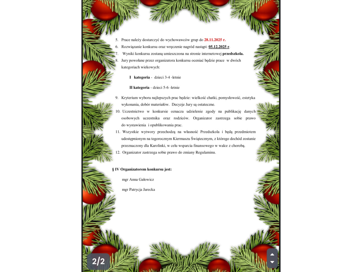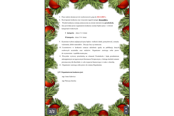 Szczegółowy regulamin znajduje się w załączniku i na plakacie w Przedszkolu.