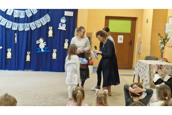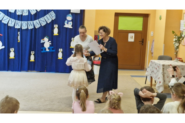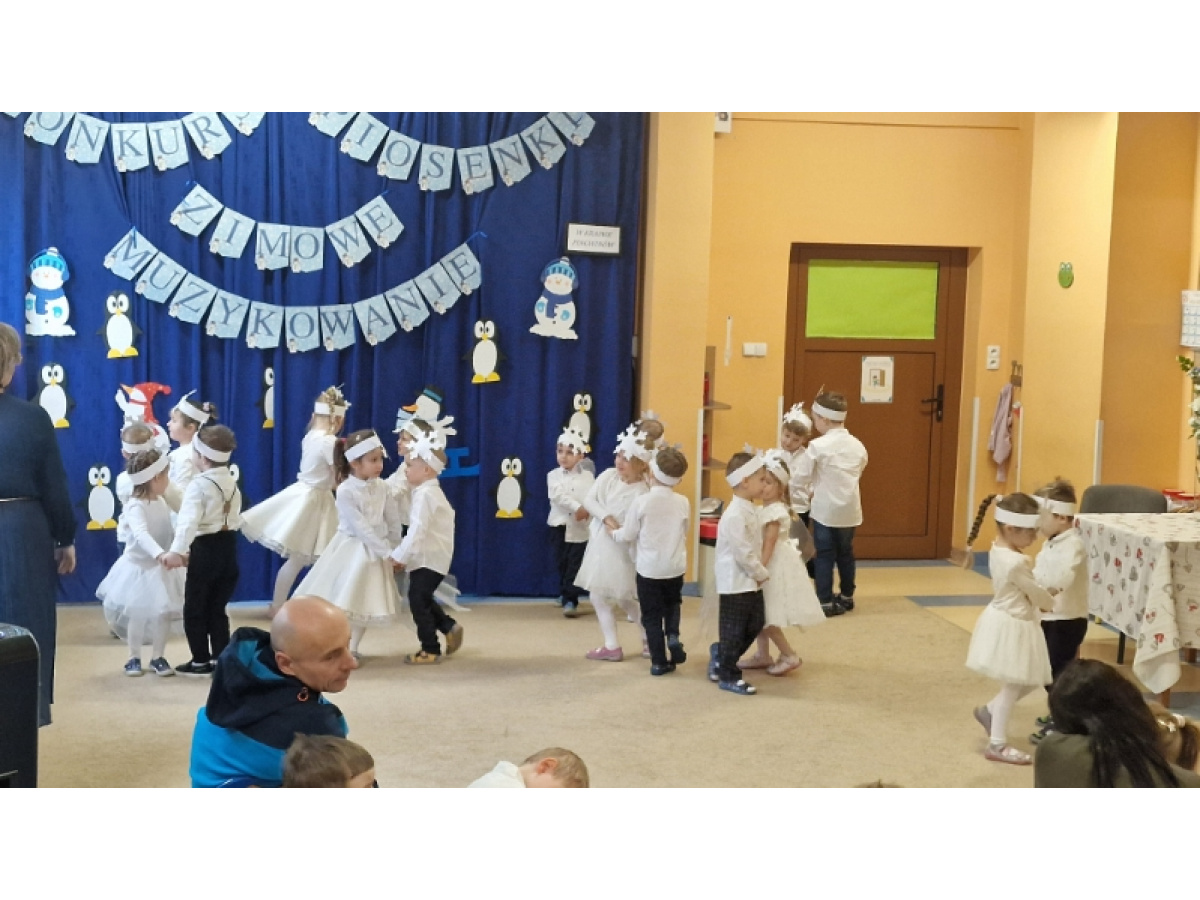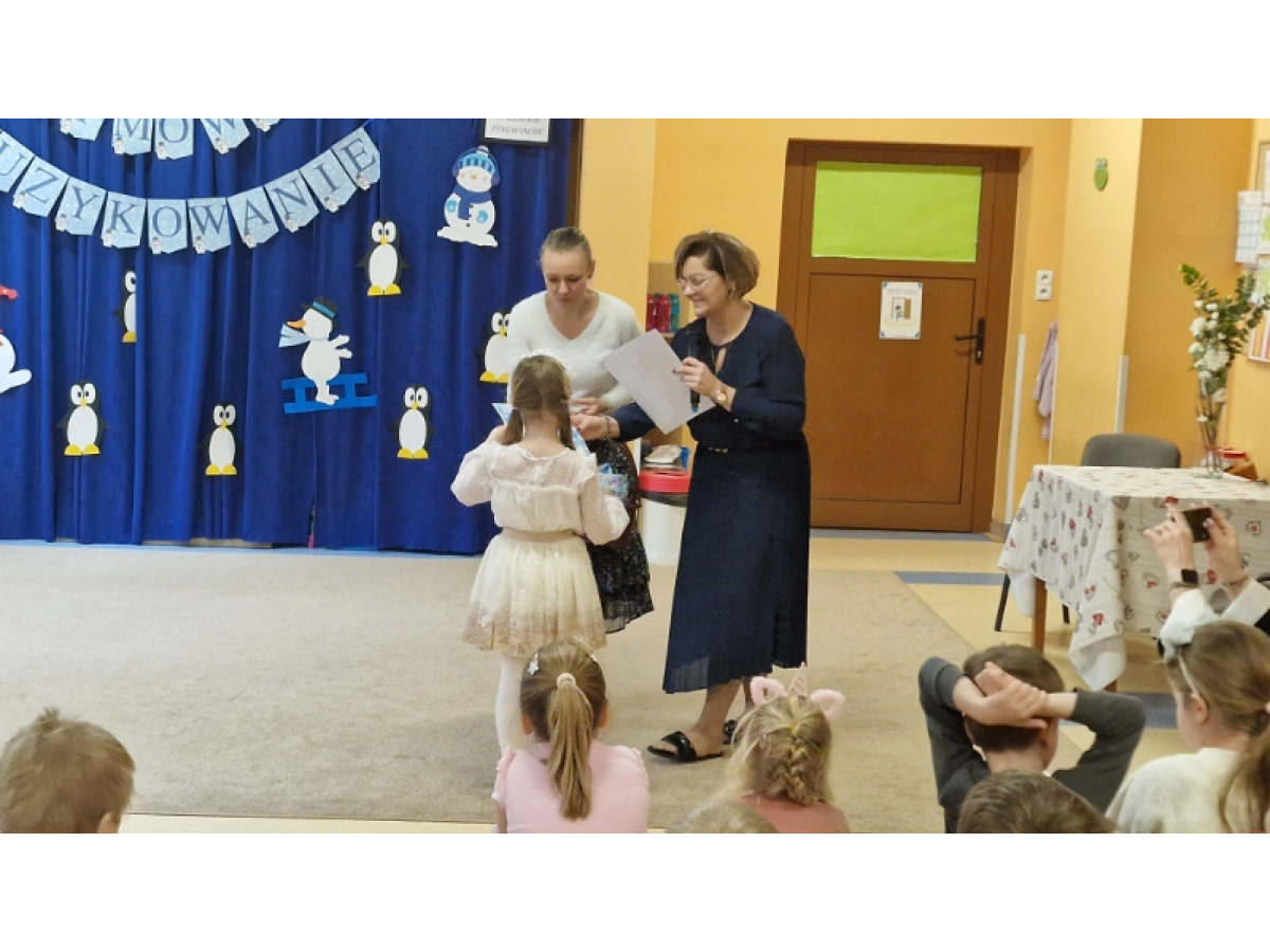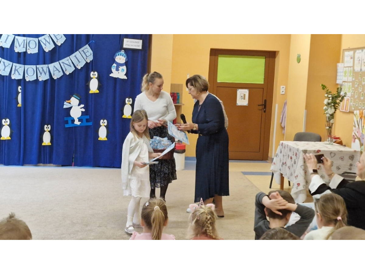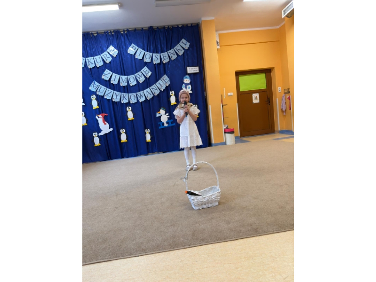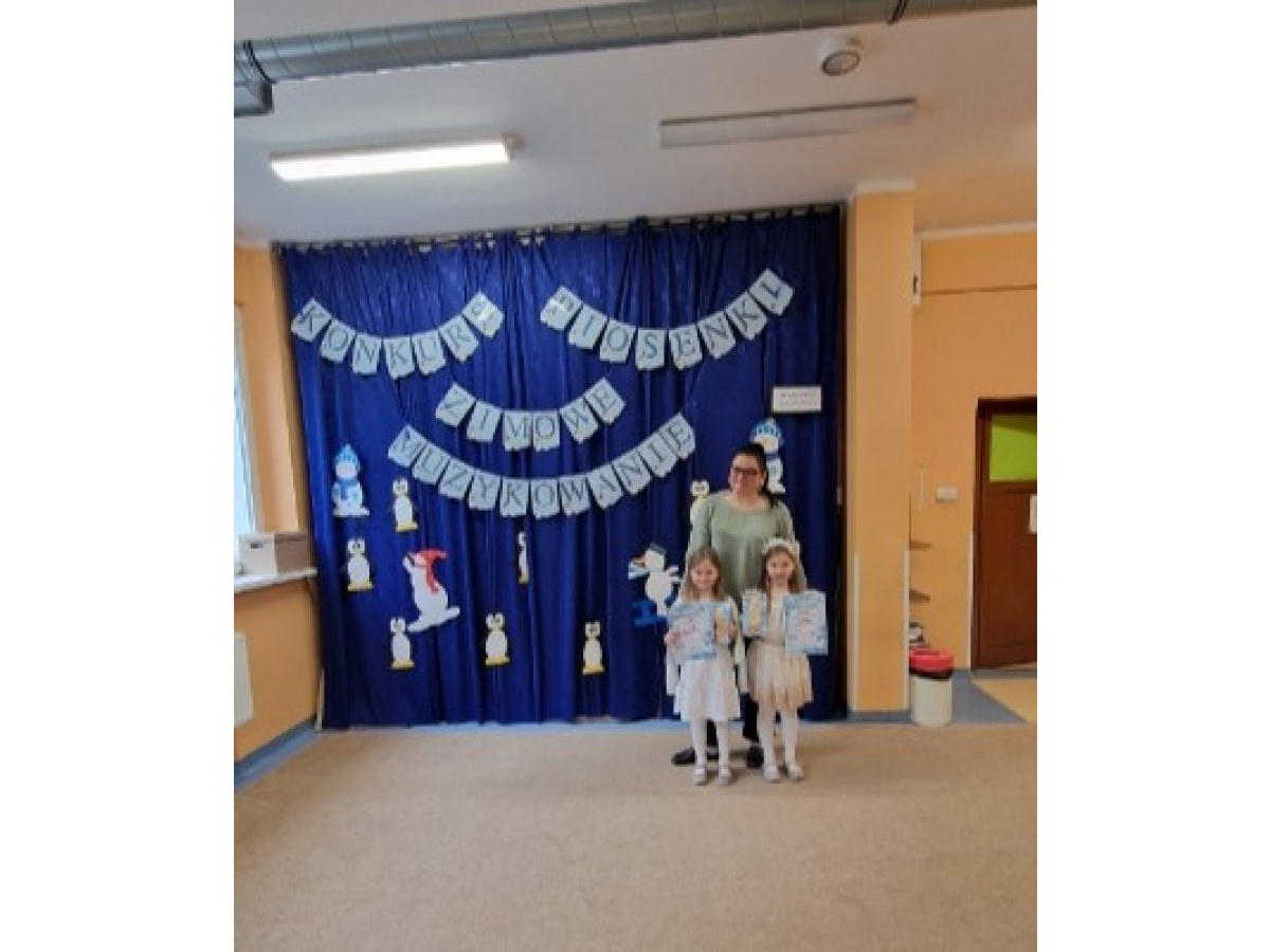 W czwartek 19 lutego w naszym przedszkolu odbył się Konkurs Piosenki "Zimowe Muzykowanie". W konkursie wzięli udział przedstawiciele każdej z grup. Wszystkie dzieci były pięknie przygotowane, wspaniale śpiewały, a w przedszkolu zapanował iście zimowy klimat. Nasze reprezentantki- Marcelina i Ania otrzymały dyplomy i upominki. Gratulujemy wspaniałych występów oraz niemałej odwagi podczas popisów przed tak dużą publicznością!