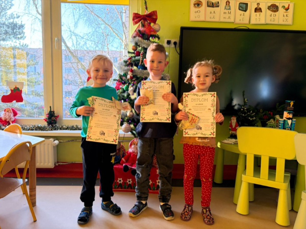 W piątek, 19 grudnia nastąpiło wręczenie wyróżnień oraz dyplomów za udział w Międzyprzedszkolnym Konkursie plastycznym "Świąteczny Anioł". Wszystkim dzieciom oraz ich opiekunom serdecznie dziękujemy za zaangażowanie i trud włożony w wykonanie pięknych prac.