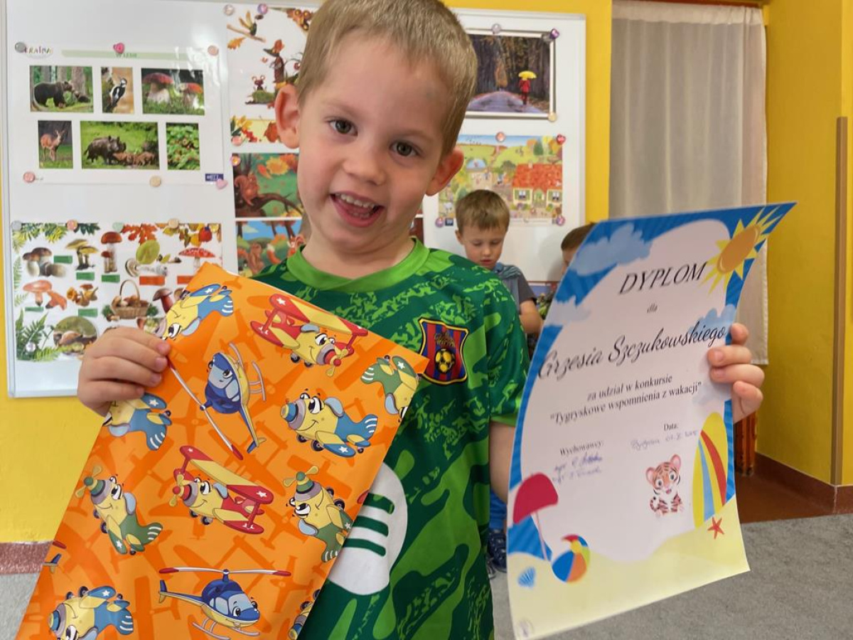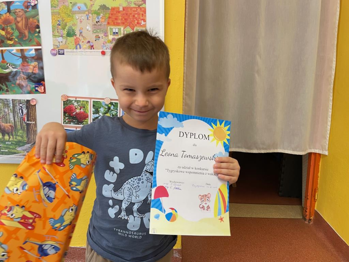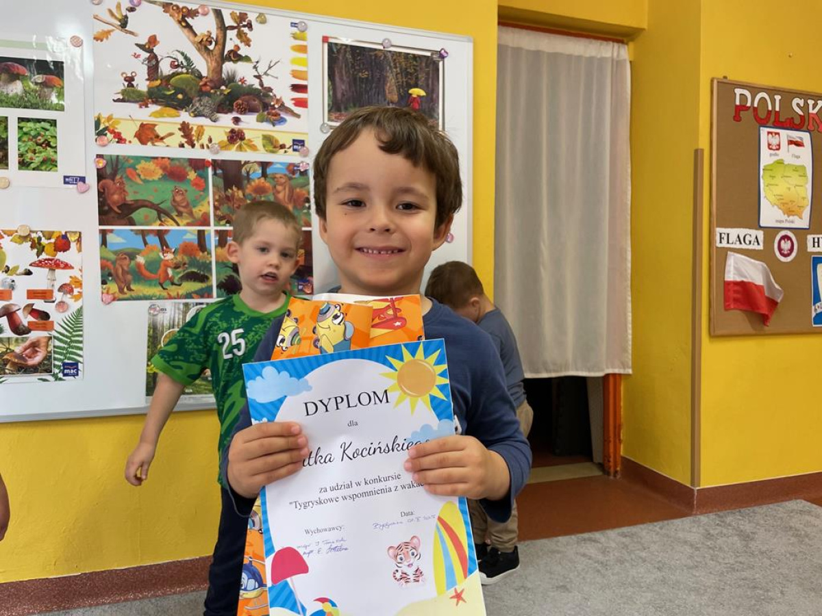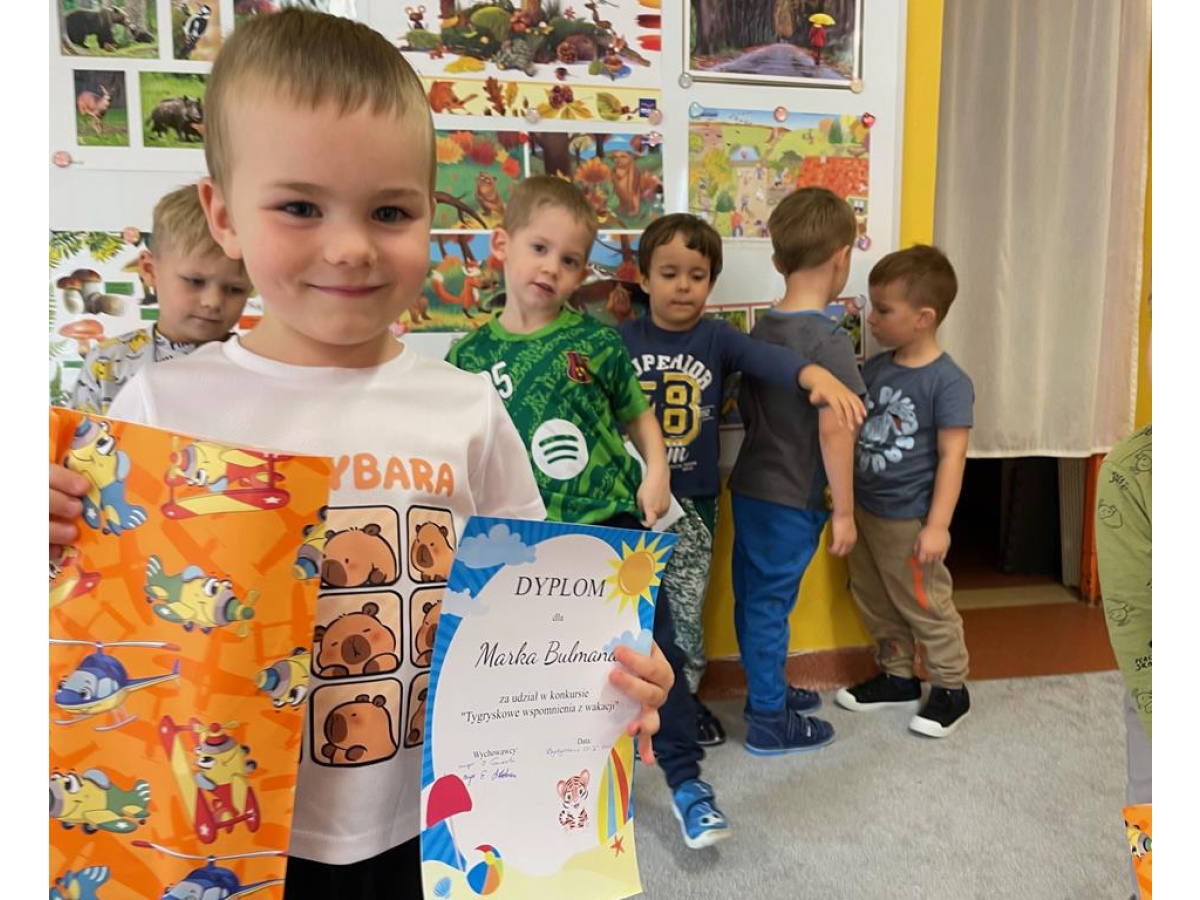 Na początku października rozstrzygnięty został grupowy konkurs plastyczny pod tytułem "Tygryskowe wspomnienia z wakacji". Dzieci wykonały piękne, pomysłowe prace pod opieką rodziców. Tygryski wykazały się kreatywnością i pomysłowością, stosując różne techniki. Każda praca została doceniona i wszystkie przedszkolaki biorące udział w konkursie otrzymały dyplomy oraz upominki. Gratulujemy naszym Tygryskom!