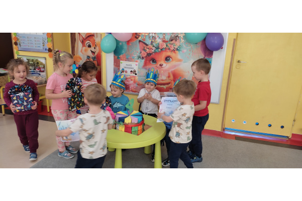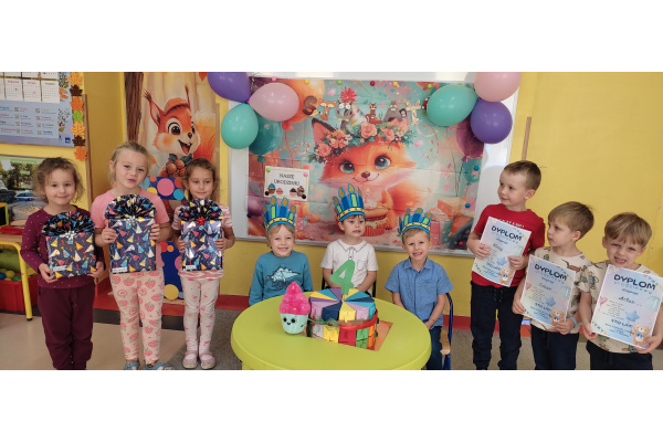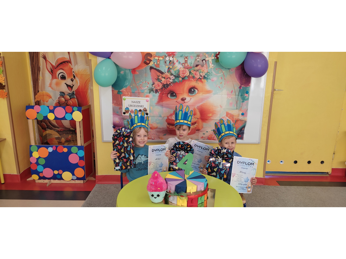 We wrześniu w naszej grupie świętowaliśmy wyjątkowe chwile – swoje 4 urodziny obchodzili Oskar, Artur i Błażej. Z tej okazji życzymy naszym jubilatom dużo zdrowia, radości i uśmiechu każdego dnia, spełnienia marzeń oraz wielu cudownych, słonecznych przygód w gronie przyjaciół. ????