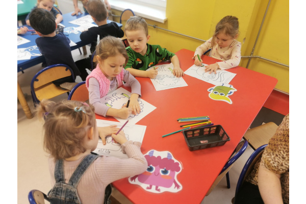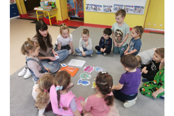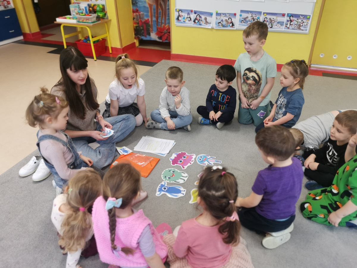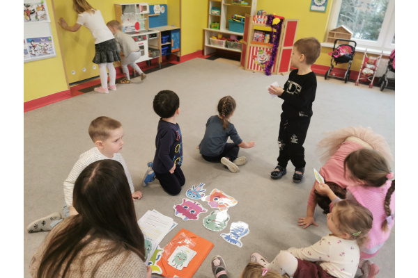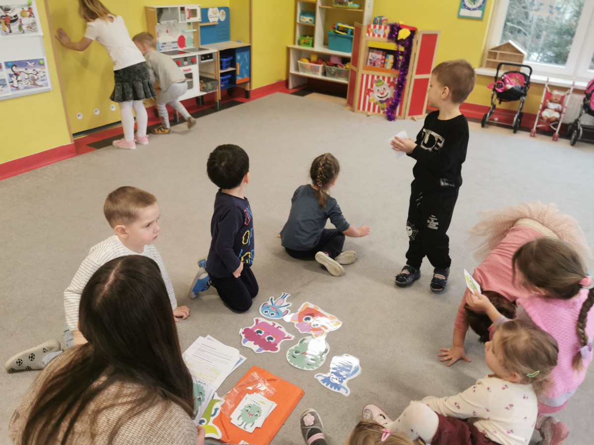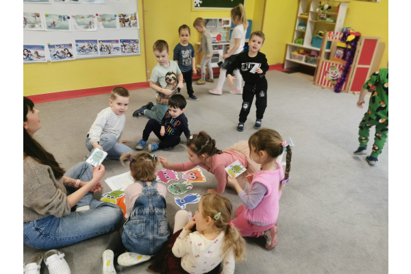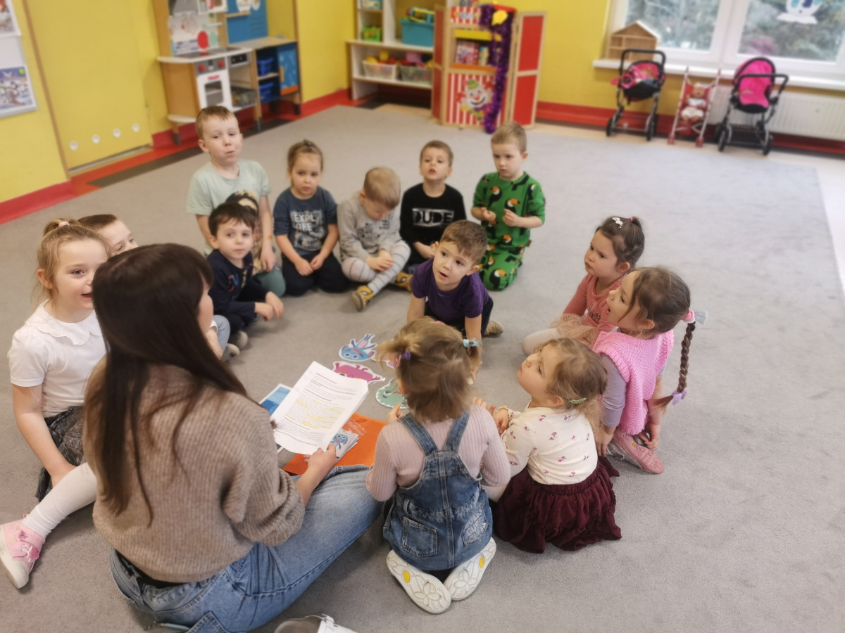 29.01 pani Ola, logopeda, poprowadziła zajęcia „Logoprymki w świecie mowy” – autorski program profilaktyczny. Dzieci w radosnej atmosferze ćwiczyły wymowę, słuch fonemowy i sprawność językową poprzez zabawy, wierszyki i gry dźwiękonaśladowcze, ucząc się przez ruch i wspólną zabawę.