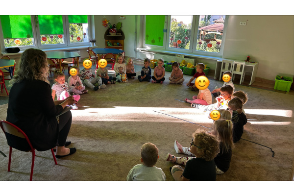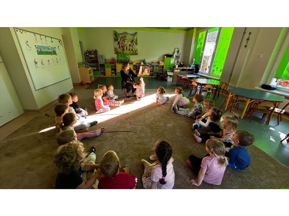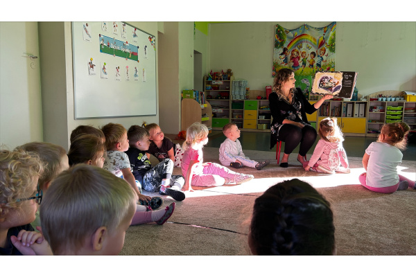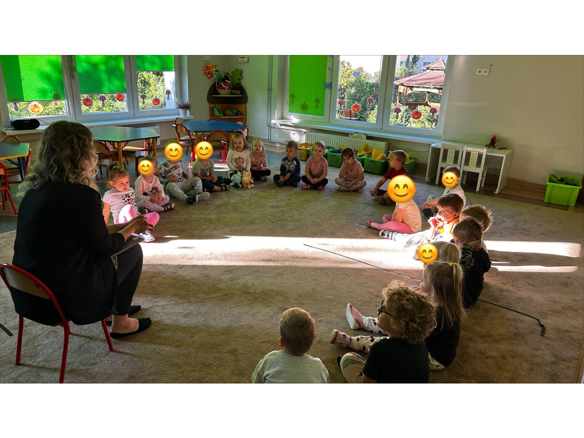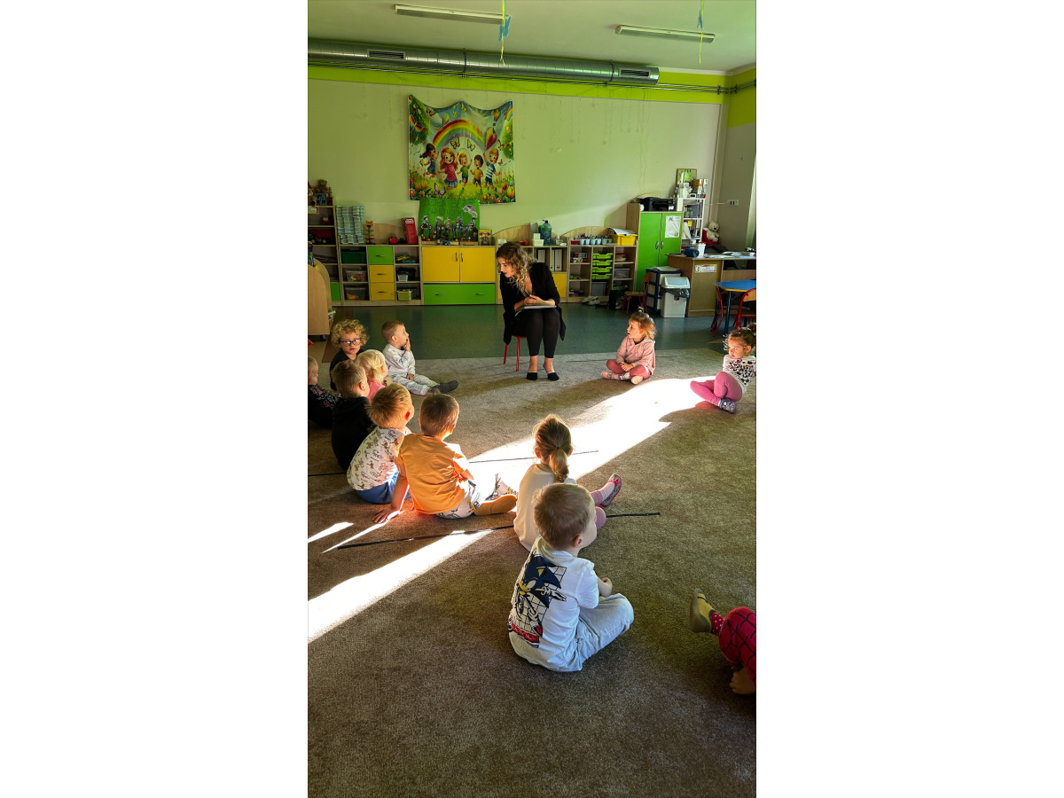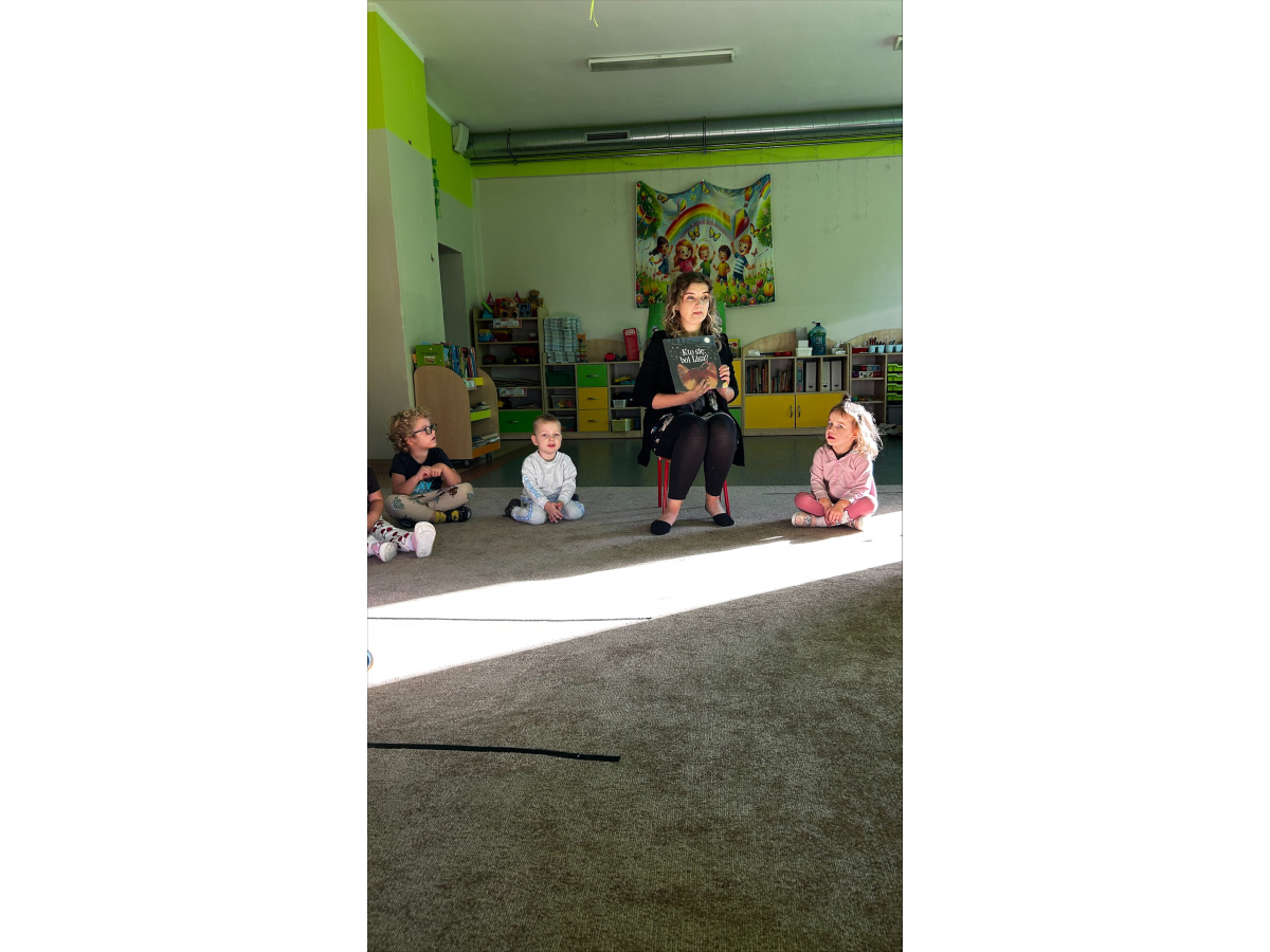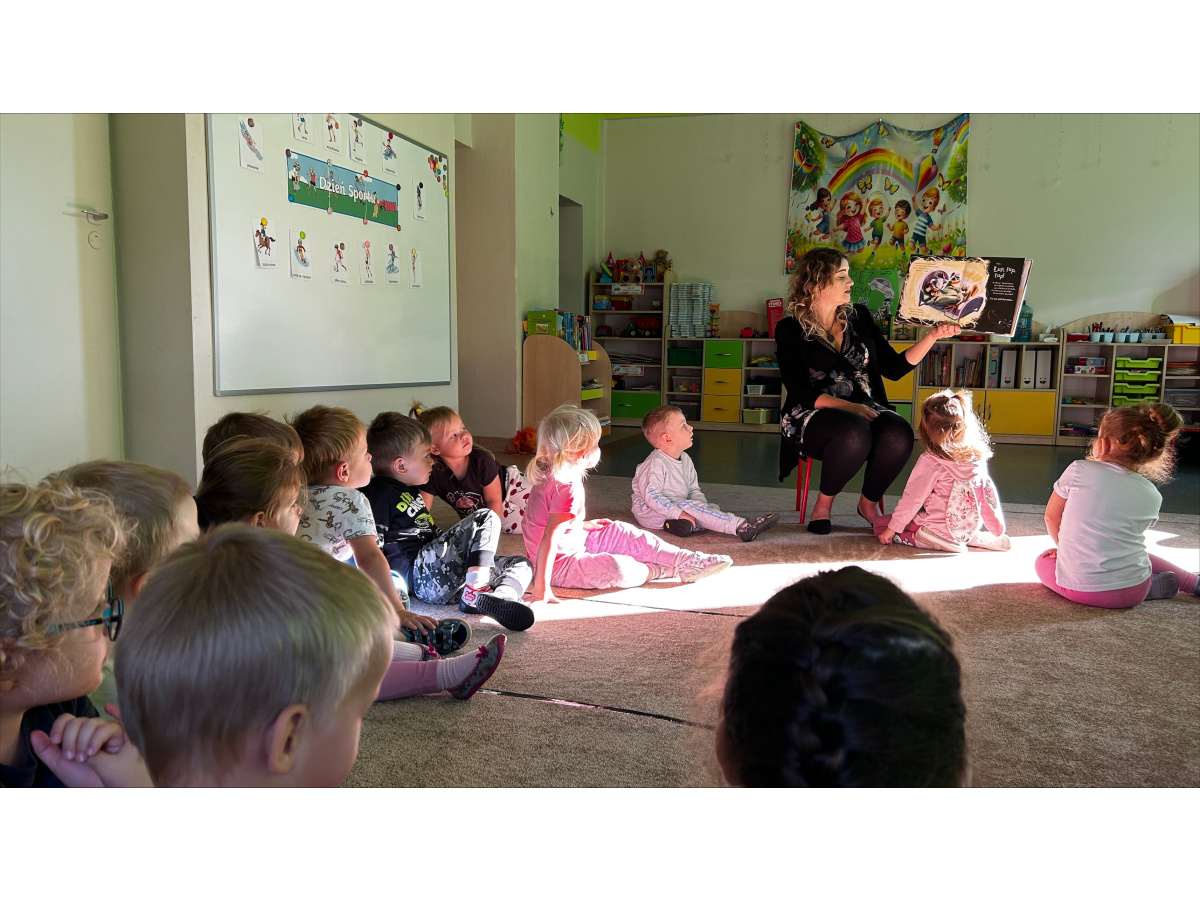 Grupę „Motylki” odwiedziła mama Anieli, która przeczytała dzieciom książkę pt. „Kto się boi lisa?” oraz poprowadziła ciekawe zajęcia ruchowe. Przedszkolaki z ogromnym zainteresowaniem słuchały opowieści i chętnie uczestniczyły w zabawach. Aniela była bardzo szczęśliwa i dumna, że mogła zaprezentować kolegom i koleżankom swoją mamę.