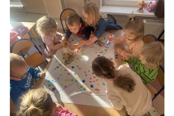 Nasze trzylatki z ogromnym zaangażowaniem gimnastykowały się, pokonywały tory przeszkód, uczestniczyły w zabawach ruchowych oraz aktywnościach sensorycznych. Wykonały także piękną pracę plastyczną - kolorowego motyla. W ten sposób okazały solidarność i wsparcie osobom w spektrum autyzmu oraz innym dzieciom z niepełnosprawnościami.