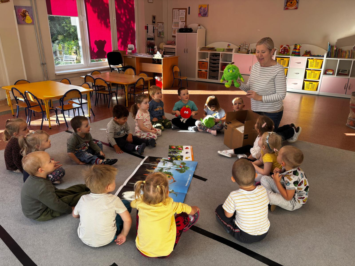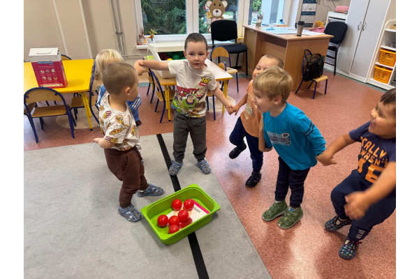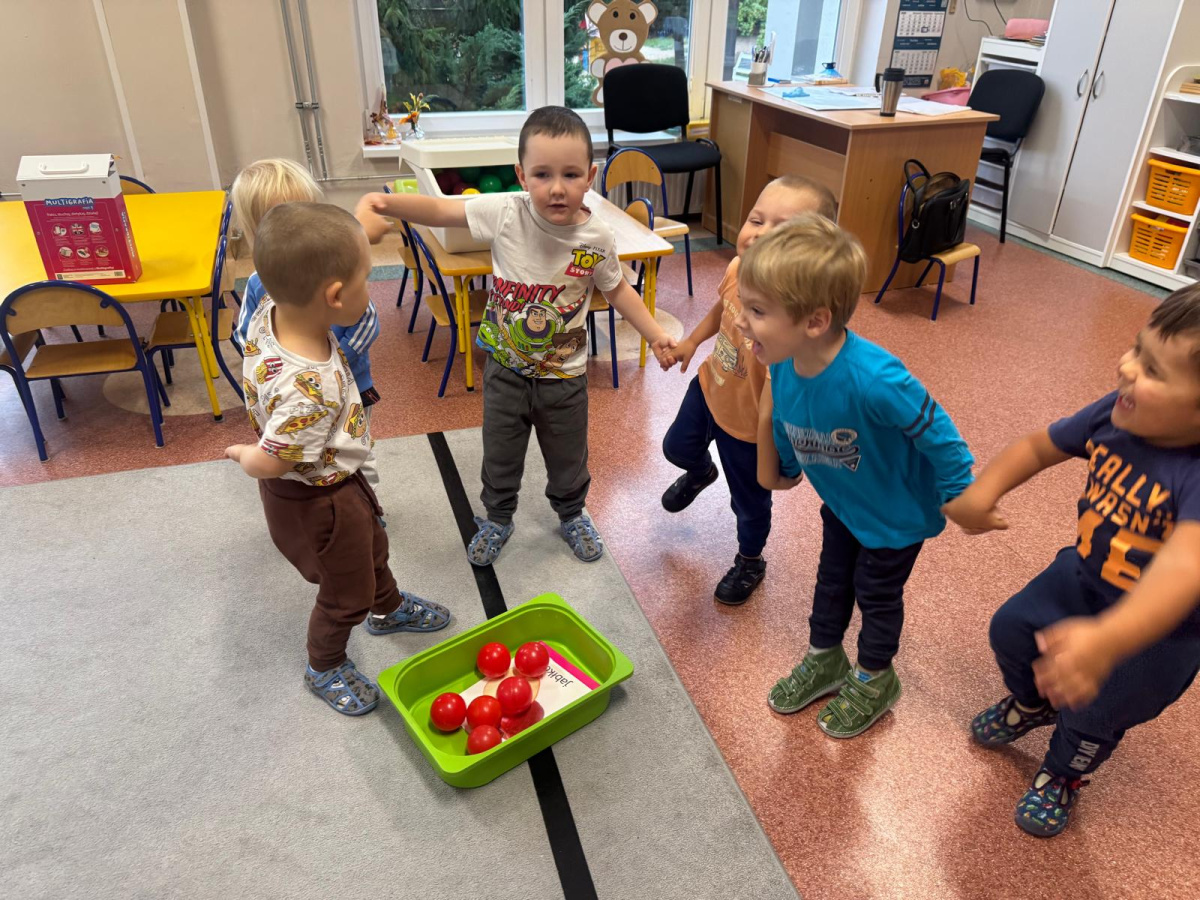Malujemy, śpiewamy, bawimy się i zapamiętujemy nazwy wybranych owoców i warzyw.