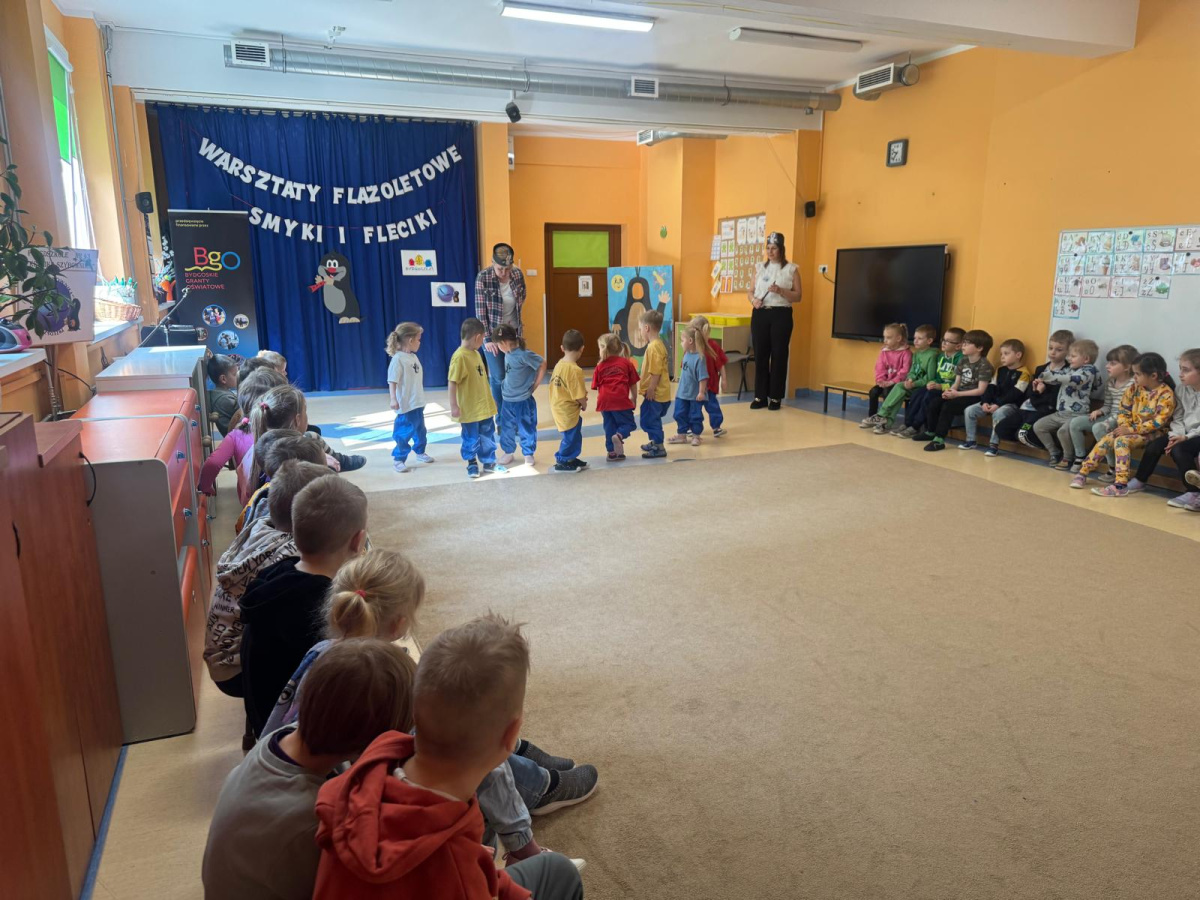 Z kolei 15 kwietnia dzieci ponownie wystąpiły podczas warsztatów flażoletowych, prezentując ten sam repertuar. Również tym razem poradziły sobie znakomicie, wzbudzając duże uznanie publiczności.Jesteśmy bardzo dumni z naszych przedszkolaków!