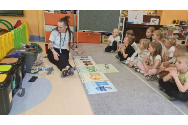 Nasze Przedszkole odwiedziła Mobilna Szkoła Recyklingu. Dzieci utrwalały sobie jak prawidłowo segregować śmieci. Miały okazję poznać też maskotkę, która przypomniała im co jest ważne w recyklingu.
