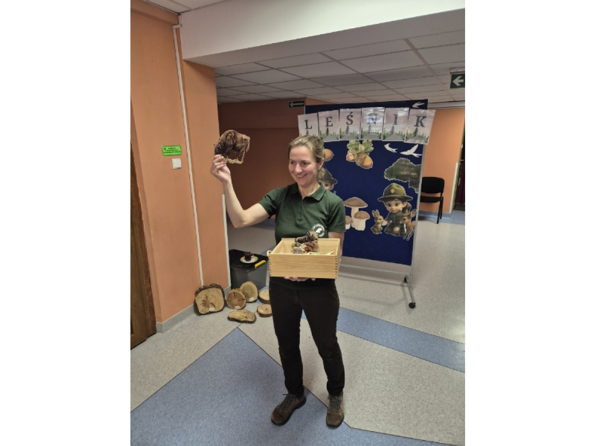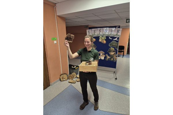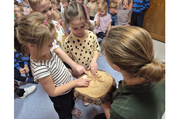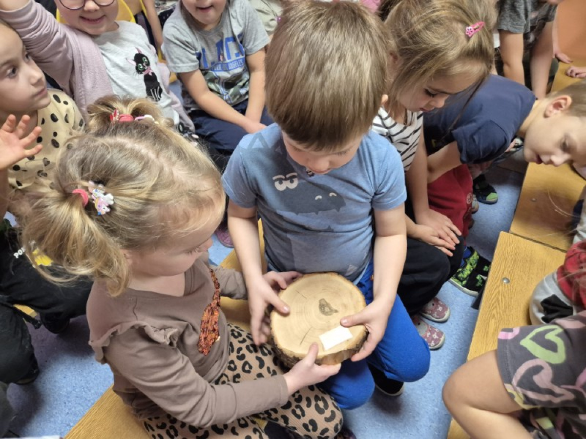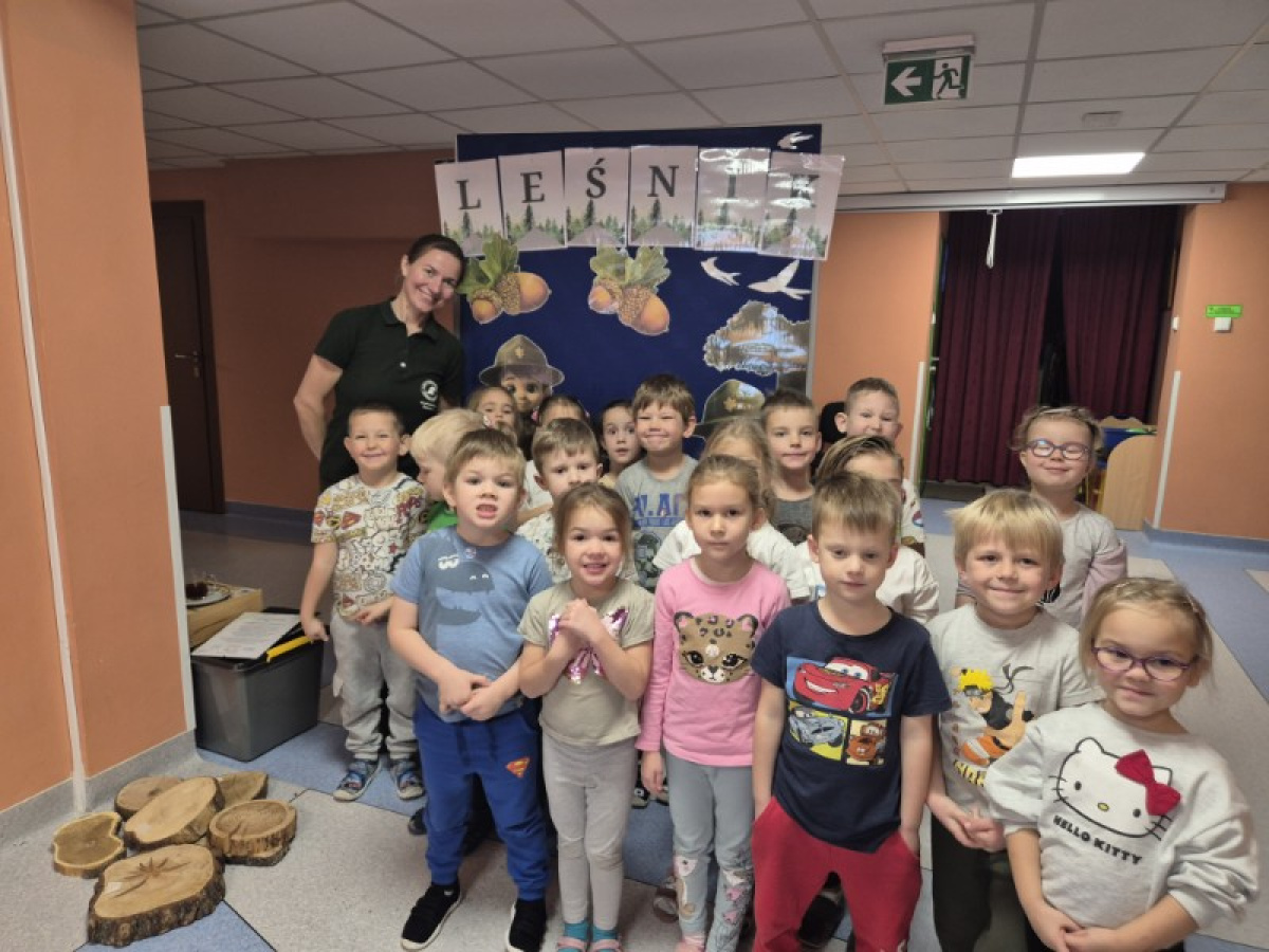 W minionym tygodniu mieliśmy specjanego gościa z Nadleśnictwa Żołędowo. Pani Beata odwiedziła nasze przedszkole, aby opowiedzieć dzieciom o swojej pracy. Pokazała różne zdjęcia i eksponaty z lasu. Dzieci dowiedziały się, jak należy zachowywać się w lesie i jak dbać o przyrodę. Leśnik opowiadał także o zwierzętach żyjących w lesie i o tym, jak przygotowują się do zimy. Spotkanie było bardzo ciekawe i pouczające. Dziękujemy serdecznie za odwiedziny.