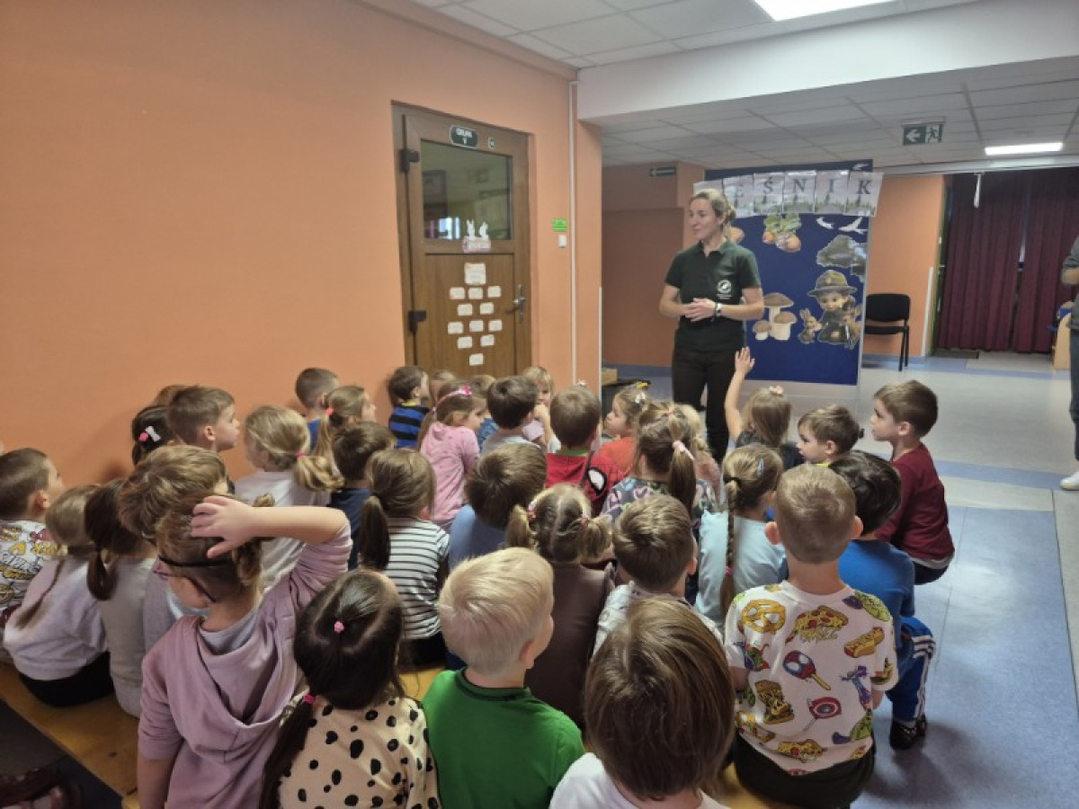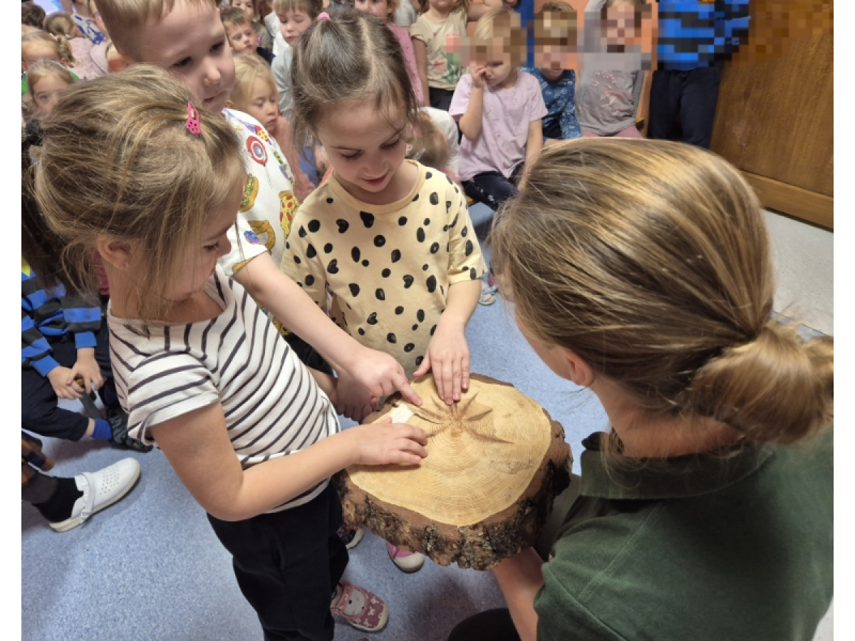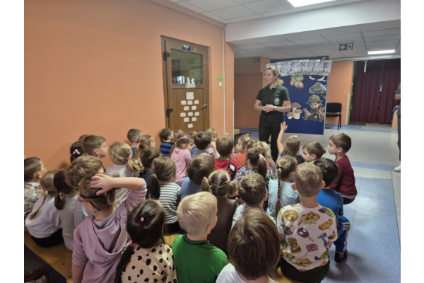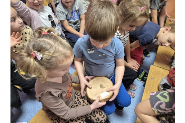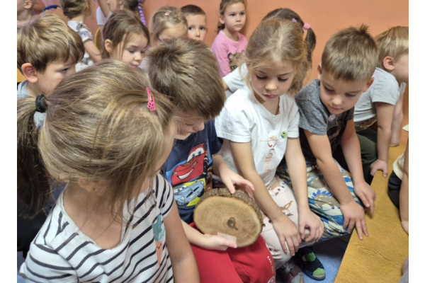 W minionym tygodniu mieliśmy specjanego gościa z Nadleśnictwa Żołędowo. Pani Beata odwiedziła nasze przedszkole, aby opowiedzieć dzieciom o swojej pracy. Pokazała różne zdjęcia i eksponaty z lasu. Dzieci dowiedziały się, jak należy zachowywać się w lesie i jak dbać o przyrodę. Leśnik opowiadał także o zwierzętach żyjących w lesie i o tym, jak przygotowują się do zimy. Spotkanie było bardzo ciekawe i pouczające. Dziękujemy serdecznie za odwiedziny.
