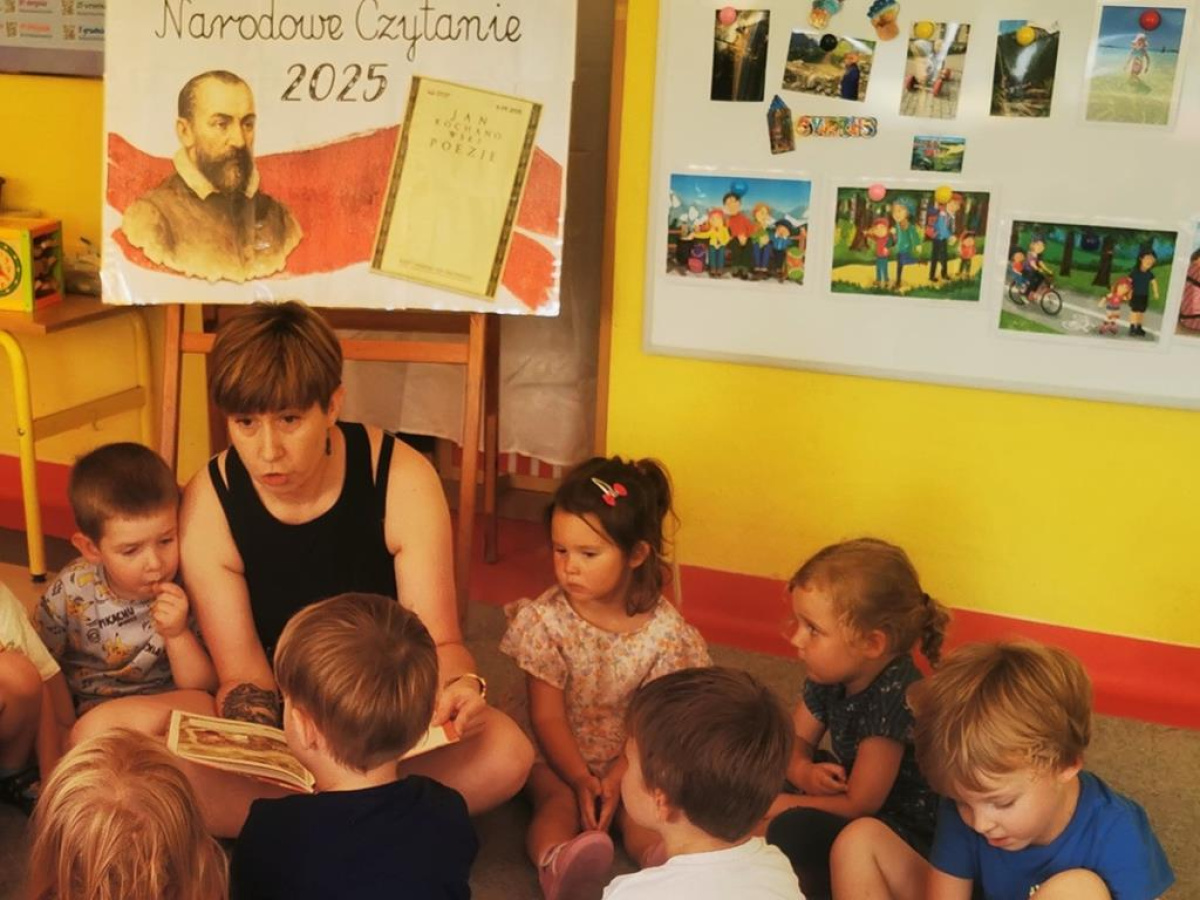 5 września w naszym przedszkolu odbyło się Narodowe Czytanie. Grupa „Liski” gościła mamy Witka i Liwii, które z zaangażowaniem czytały dzieciom piękne książki. Spotkanie przeniosło wszystkich w magiczny świat literatury, a radość i ciekawość „Lisków" najlepiej pokazały, jak wyjątkowy był to dzień. Dziękujemy za poświęcony czas i wspaniałe chwile spędzone z dziećmi!
