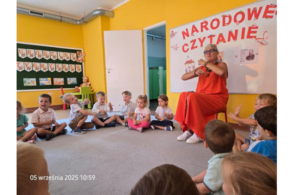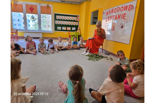 W ramach akcji Narodowego Czytania, Tygryski wysłuchały fragmentów fraszki Jana Kochanowskiego "Na lipę". Dzieci miały możliwość obejrzeć gałązki prawdziwej lipy, co pomogło im zrozumieć, że całe drzewo ma ogromne gałęzie i może dać cień strudzonym wędrowcom, którzy chcieliby odpocząć. Dzieci wysłuchały również naszego hymnu narodowego pamiętając o przyjęciu odpowiedniej postawy.