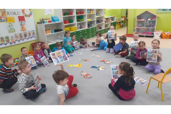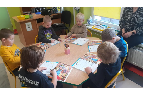 Dzieci poznają litery, cyfry, rozwijają wyobraźnię w zabawach plastycznych, konstrukcyjnych. Chętnie wzbogacają wiedzę związaną z zawodami wykonywanymi przez dorosłych a także porami roku. Nawiązują relacje rówieśnicze, tworzą zasady zabawy. Miło razem w przedszkolnej gromadce!