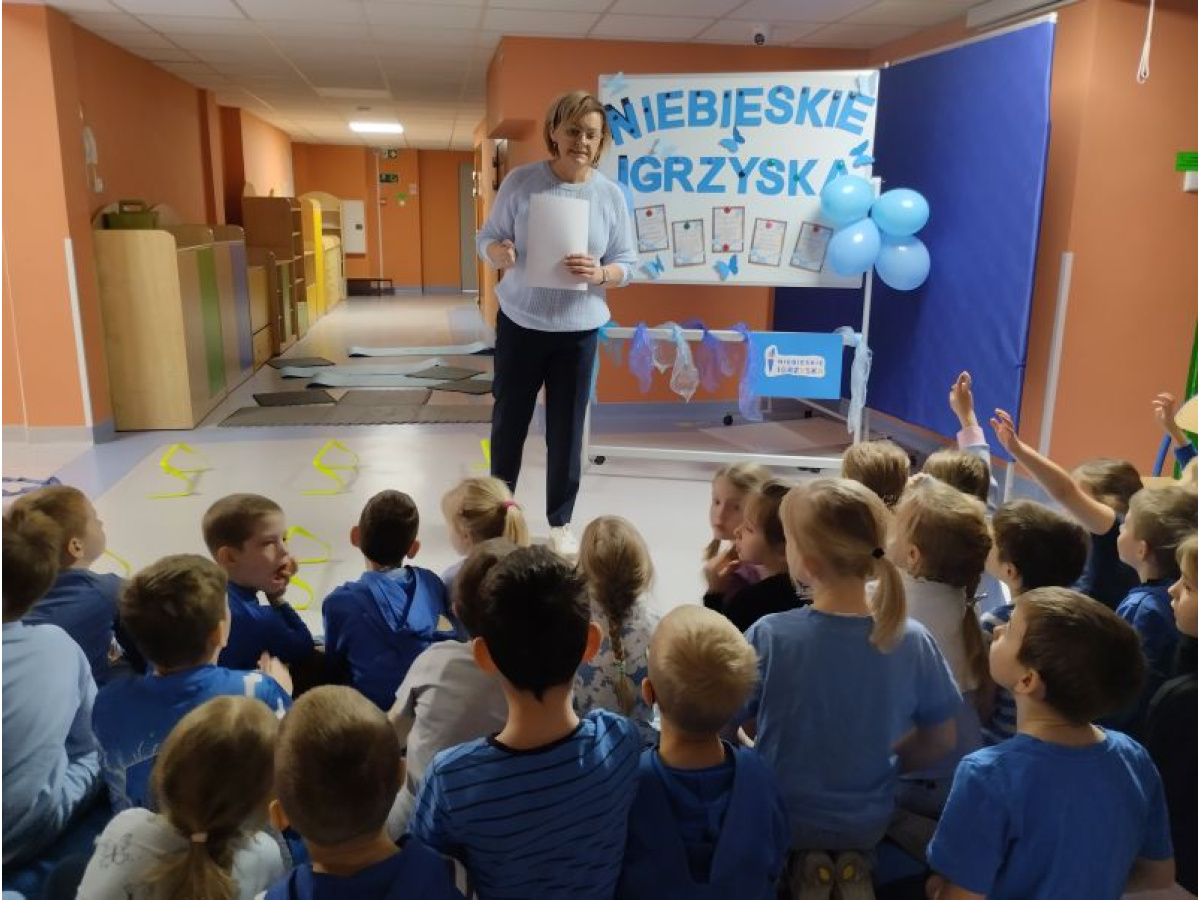 Dzieci z naszej grupy wzięły udział w zawodach sportowych organizowanych w ramach ogólnopolskiego wydarzenia edukacyjno-sportowego pt. "Niebieskie Igrzyska". Impreza ta jest organizowana w miesiącu kwietniu- Miesiącu Wiedzy na Temat Autyzmu. Żabki spisały się na medal i dzielnie pokonały wszystkie przygotowane dla nich sportowe wyzwania.