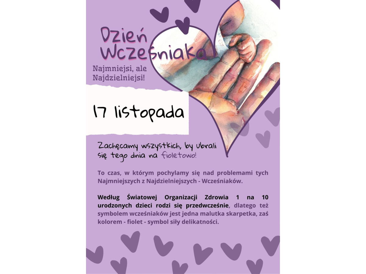 Według Światowej Organizacji Zdrowia 1 na 10 urodzonych dzieci rodzi się przedwcześnie, dlatego też symbolem wcześniaków jest malutka skarpetka. Kolorem przewodnim jest natomiast fiolet symbolizujący delikatność i siłę.