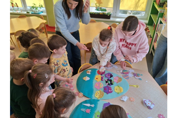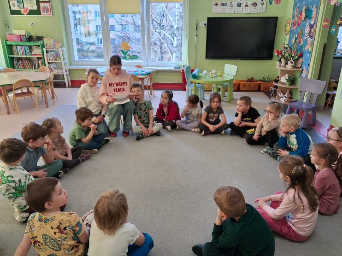 Przed Wielkanocą odwiedziła grupę 'Zajączków' mama Mikołaja i siostry naszego przedszkolaka. Dziewczyny są naszymi absolwentkami i z przyjemnością przyszły odwiedzić przedszkole oraz przeczytać świąteczne opowiadanie. Nie zabrakło rownież prac plastycznych, które można podziwiać na korytarzu w szatni. Serdecznie dziękujemy za poświęcony czas i odwiedziny!
