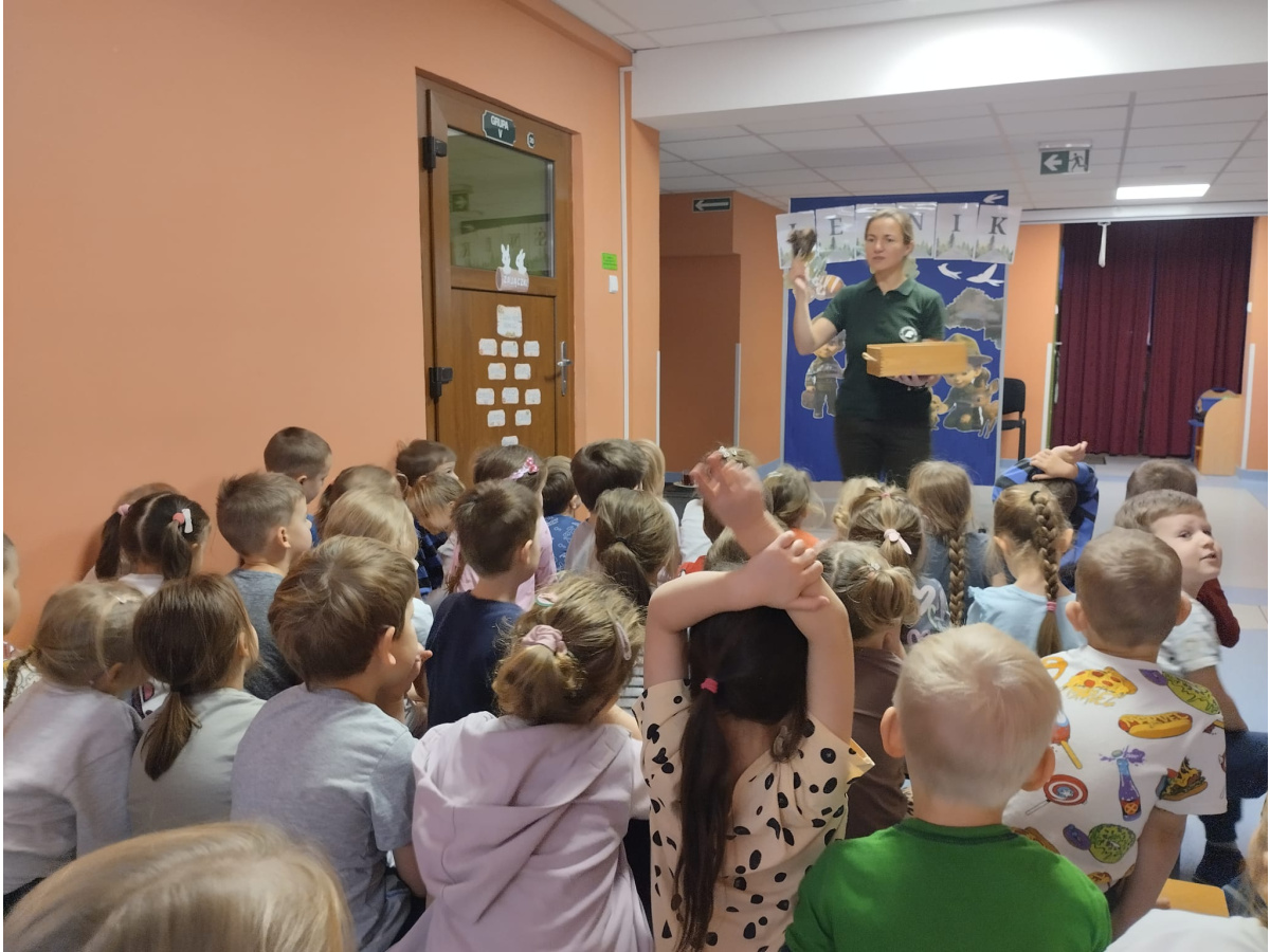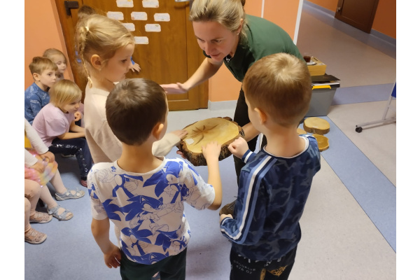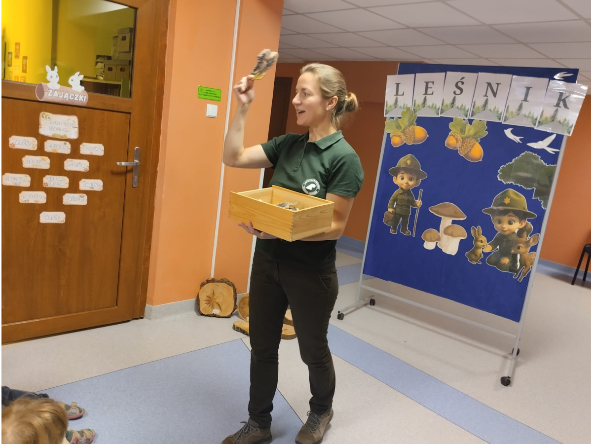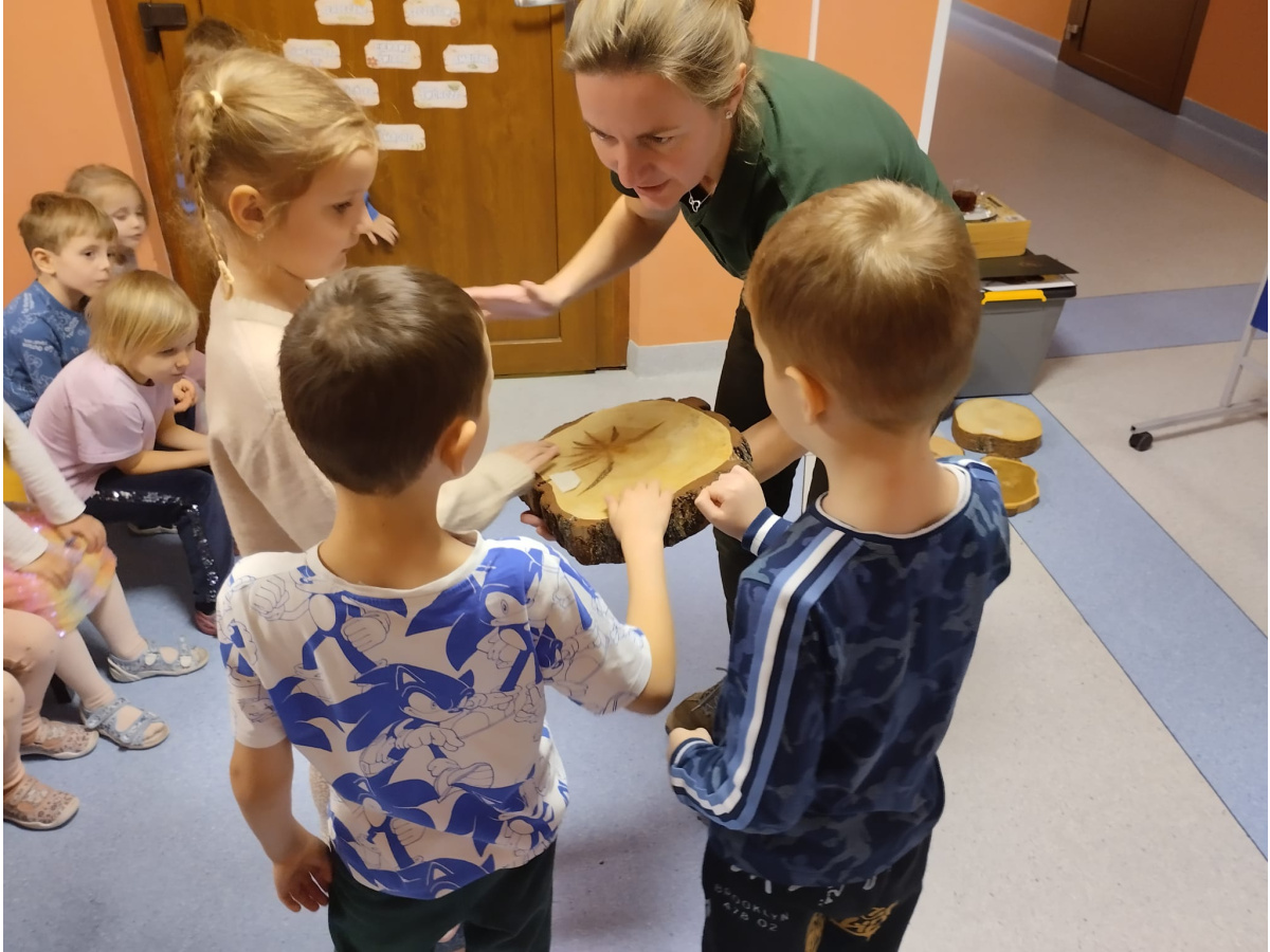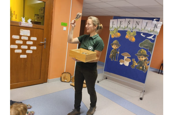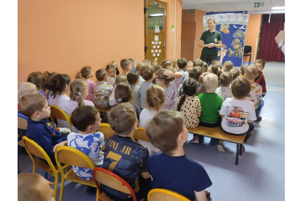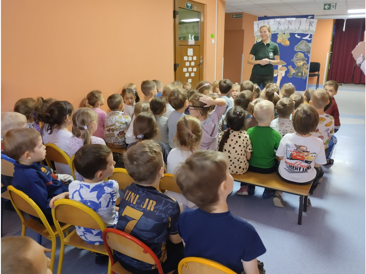 6. listopada nasze przedszkole odwiedziła Pani Leśnik. Dzieci poszerzały swoją wiedzę na temat zwierząt i roślin, które możemy spotkać w lesie. Dowiedziały się także na czym polega praca leśnika i w jaki sposób one same mogą pomagać zwierzętom przetrwać zimę.