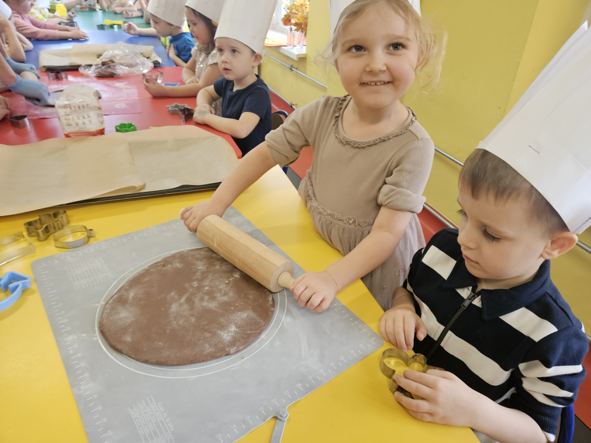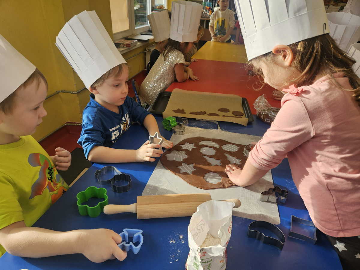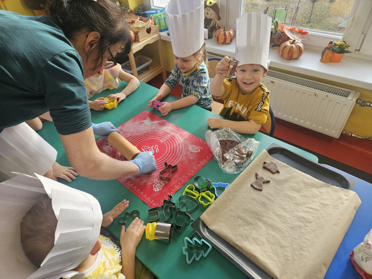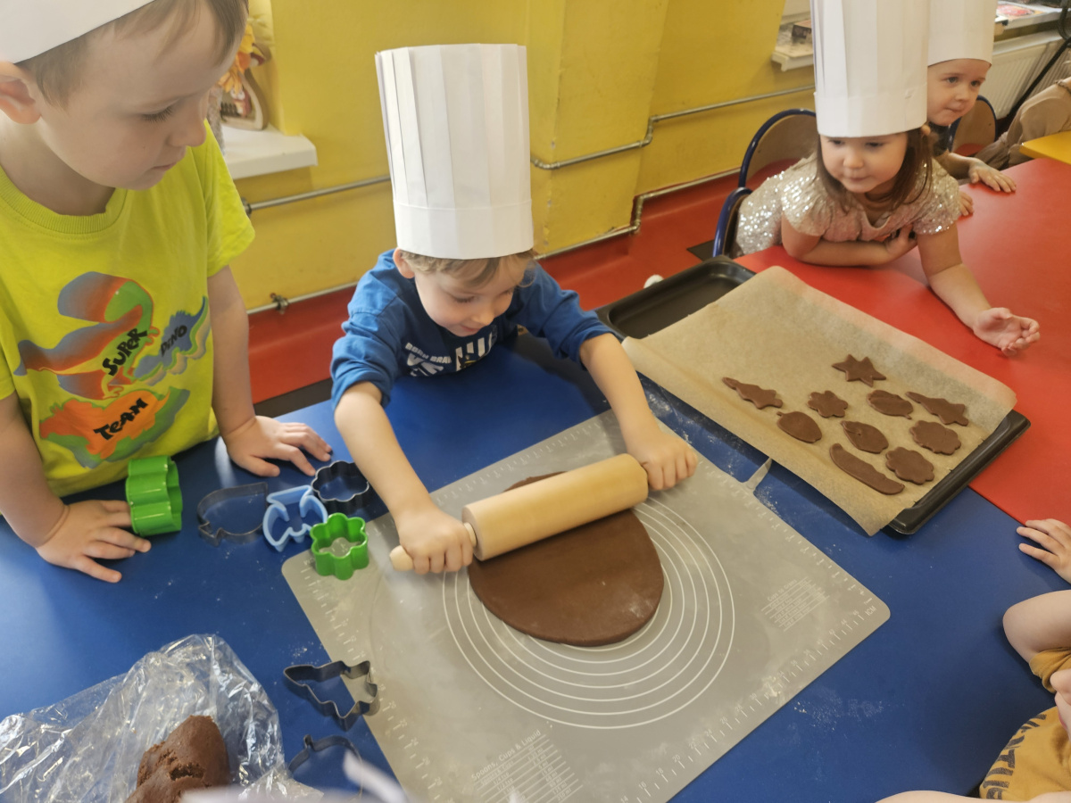 Do świąt został nam zaledwie miesiąc dlatego i w naszej sali nie mogło zabraknąć zapachu pięknego piernikowego ciasta. Każdy z nas ochoczo podszedł do zadania "robimy pierniczki". Umyliśmy ręce i wzięliśmy się do pracy. Wałkowaliśmy i wycinaliśmy, a następnie ciasteczka trafiały na blachę i do pieca. To była super kulinarna przygoda.