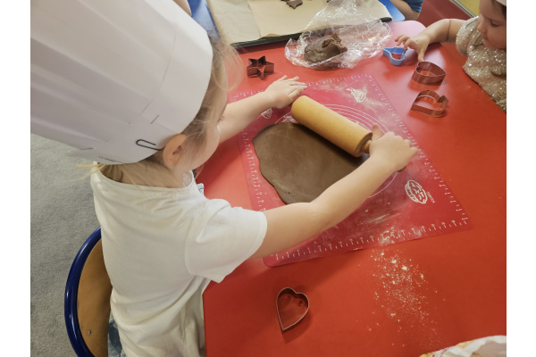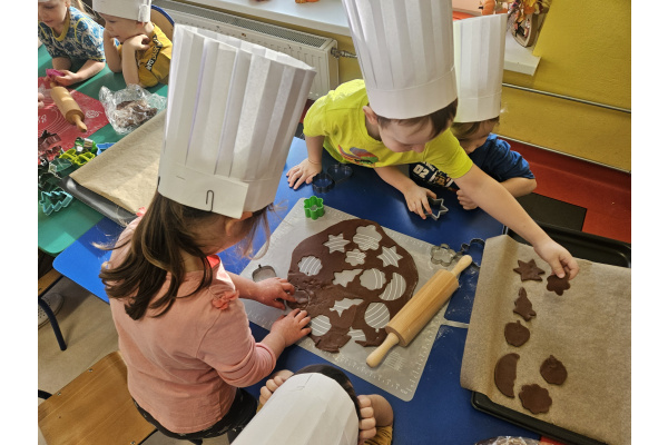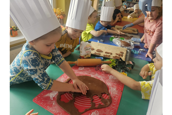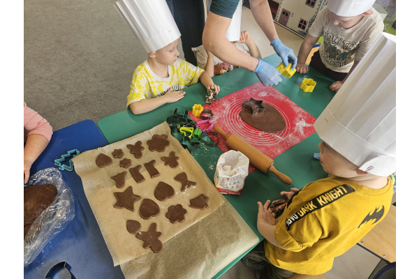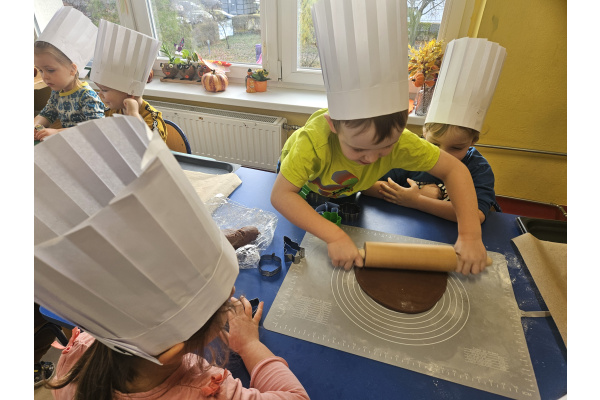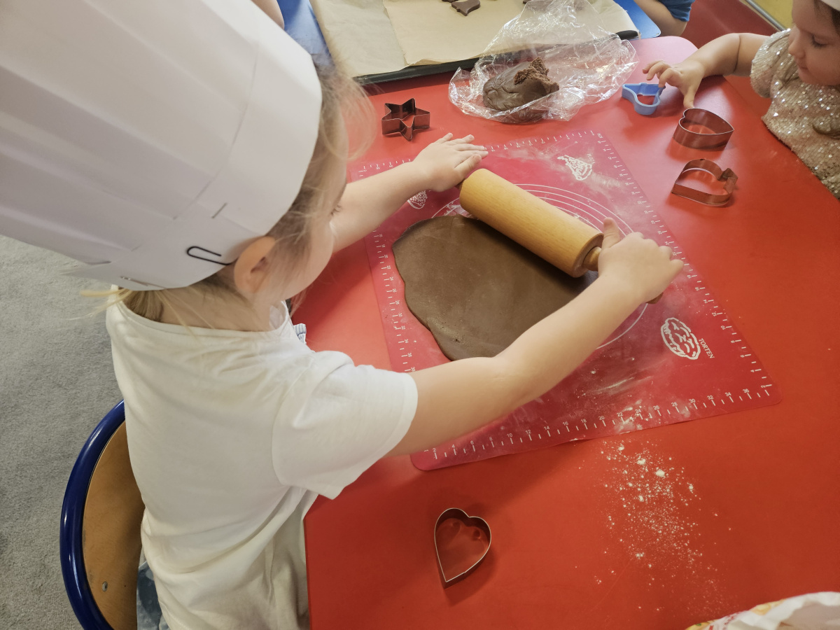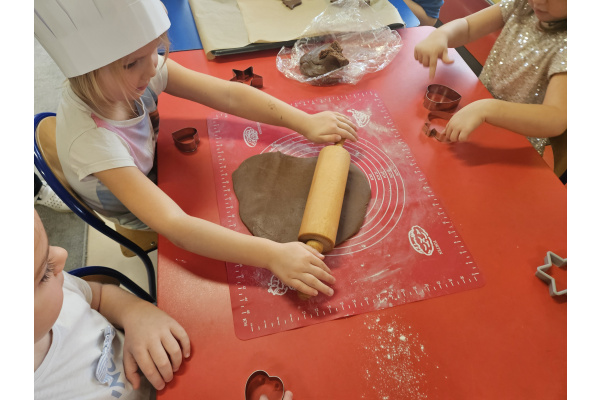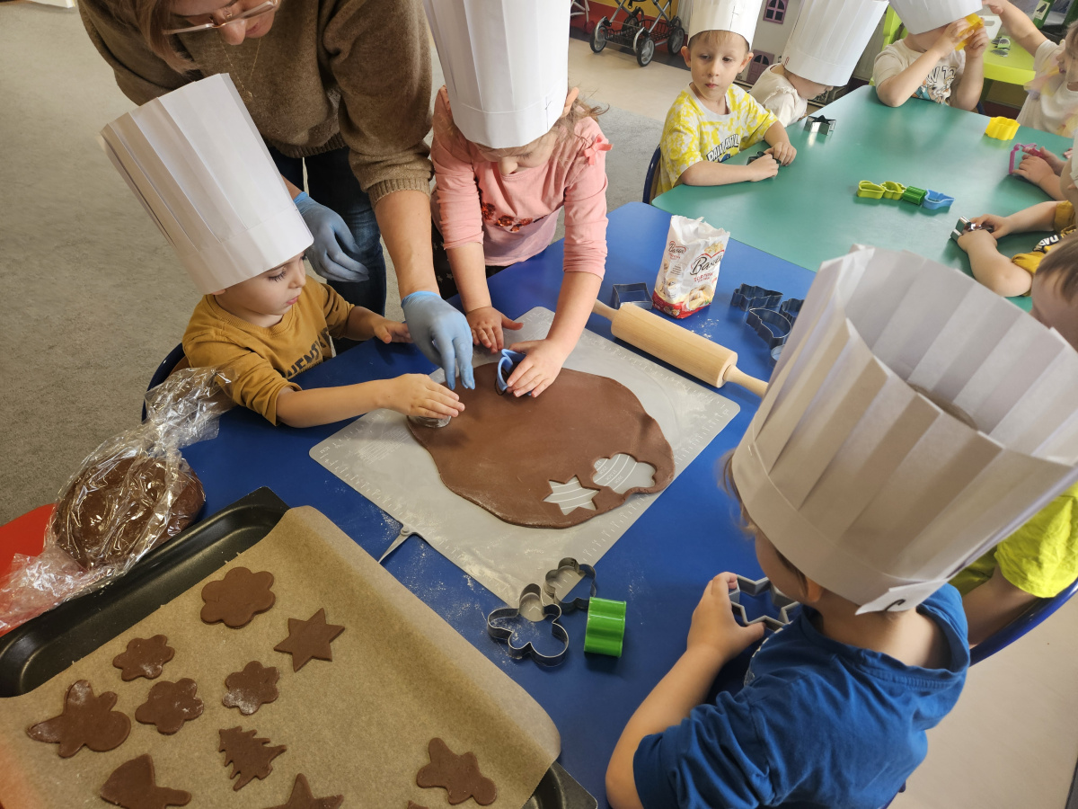 Do świąt został nam zaledwie miesiąc dlatego i w naszej sali nie mogło zabraknąć zapachu pięknego piernikowego ciasta. Każdy z nas ochoczo podszedł do zadania "robimy pierniczki". Umyliśmy ręce i wzięliśmy się do pracy. Wałkowaliśmy i wycinaliśmy, a następnie ciasteczka trafiały na blachę i do pieca. To była super kulinarna przygoda.