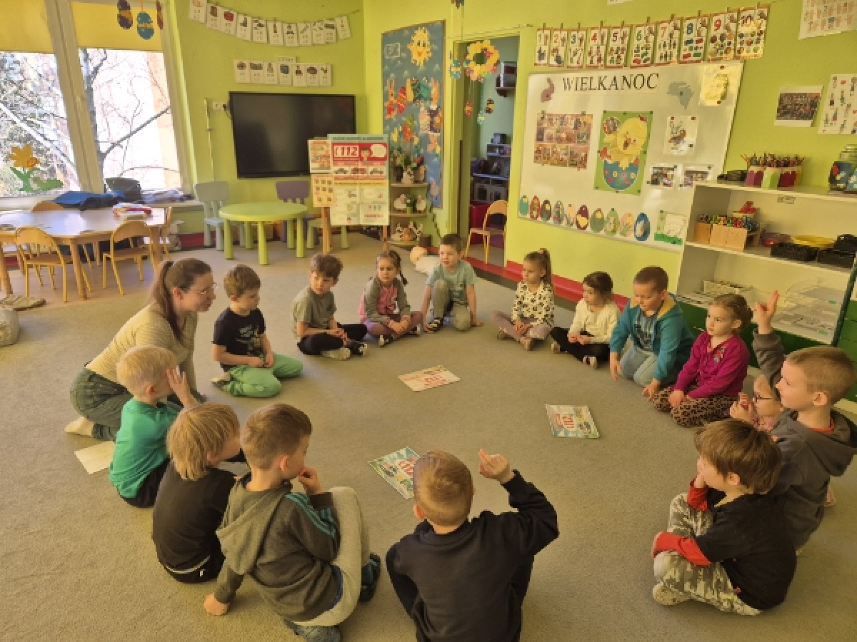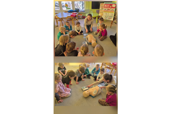 Pierwsza pomoc jest bardzo ważna, umiejętność ratowania i niesienia pierwszej pomocy drugiej osobie to obowiązek każdego z nas. Wiedzą o tym dzieci z grupy "Zajączków". 27 marca odwiedziła nas Pani Weronika ratownik medyczny, która przypomniała zasady udzielania pierwszej pomocy. Zajączki ćwiczyły układanie w bezpiecznej pozycji kolegów, a na fantomach ćwiczyły masaż serca. Na koniec wszyscy powtórzyli sobie numer alarmowy 112.