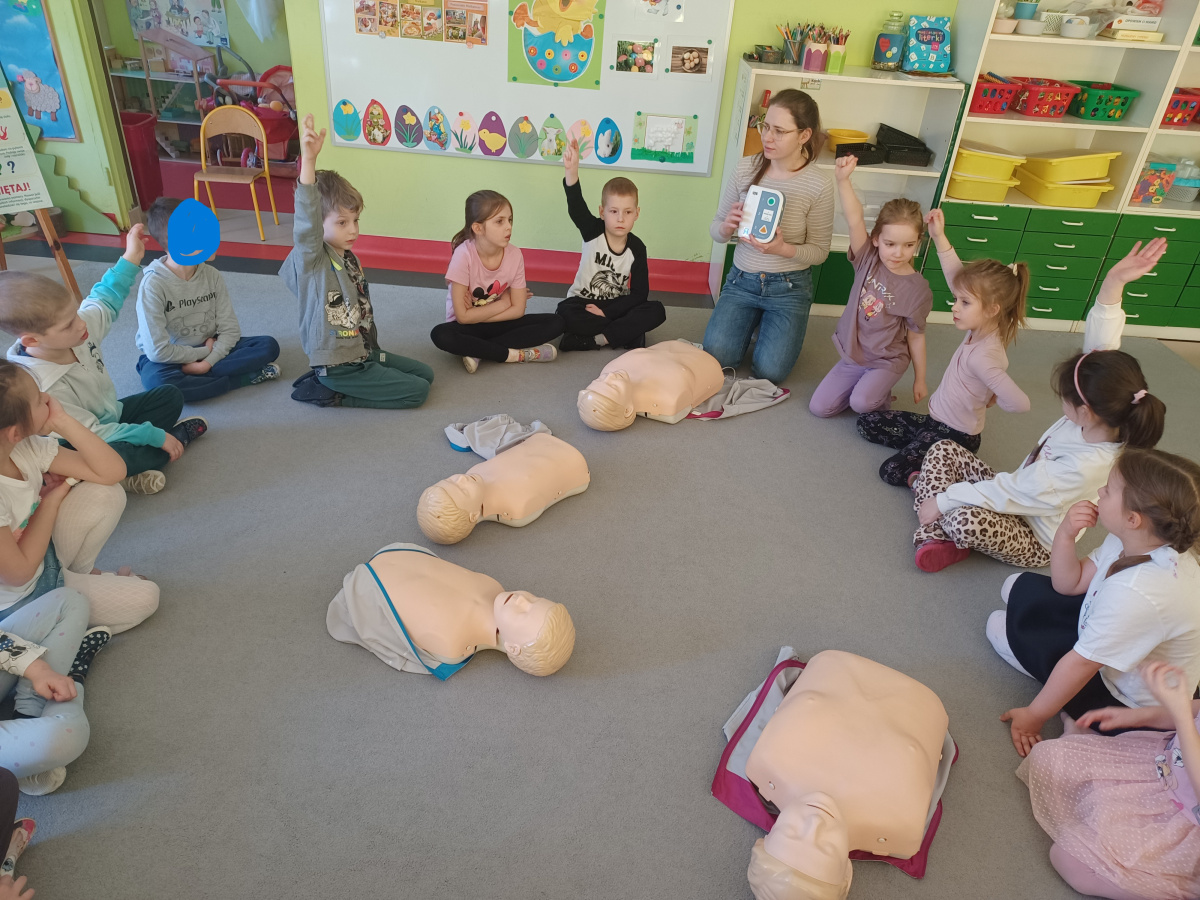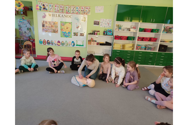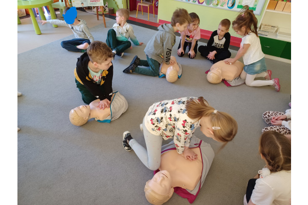 27. marca nasz przedszkole odwiedziła pani Weronika, która jest ratownikiem medycznym. Przekzała dzieciom wiedzę na temat pierwszej pomocy. Każdy miał okazję wykonać 30 uciśnieć na fantomie, dowiedzieliśmy się jak działa defibrylator, a także jak poprawnie zawiadomić służby ratunkowe w razie wypadku.