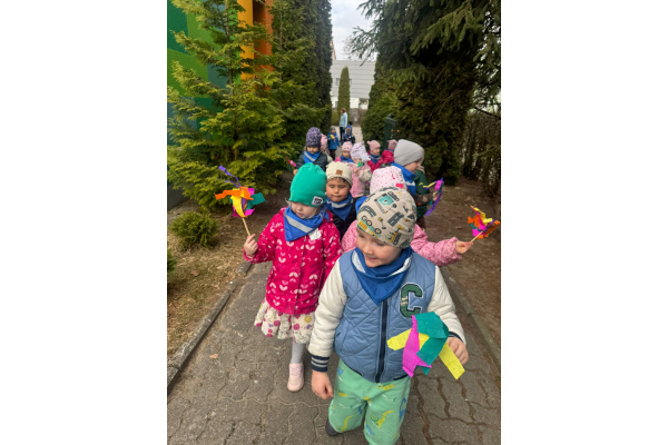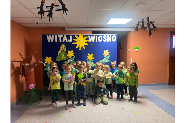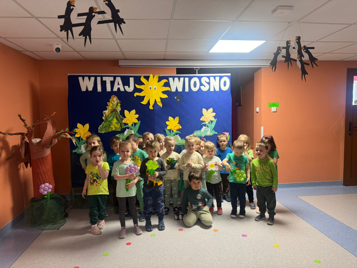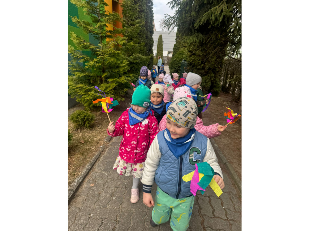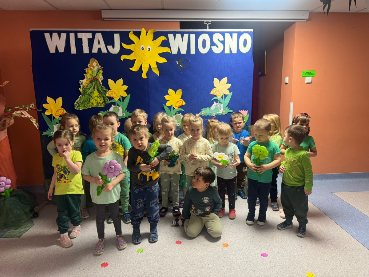 Na początku „Misie” obejrzały przedszkolne przedstawienie przygotowane przez starszą grupę „Zajączki”. Mali widzowie z dużym zainteresowaniem śledzili występ i nagrodzili artystów gromkimi brawami. Następnie dzieci wyruszyły na wiosenny przemarsz. Trzymając w rękach kolorowe wstążki, z radością maszerowały i głośno skandowały hasło: „Zimo, precz!”. Wspólna zabawa wprowadziła wszystkich w pogodny, wiosenny nastrój. To był wyjątkowy dzień pełen uśmiechu, integracji i radosnego oczekiwania na nadejście wiosny
