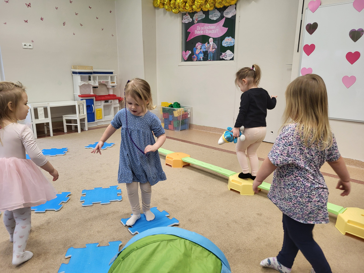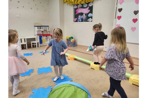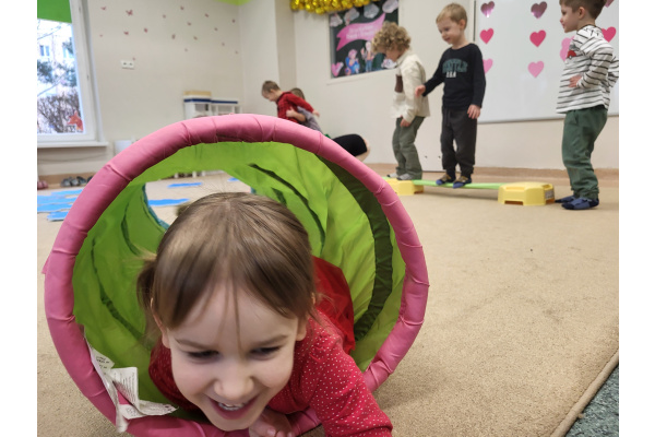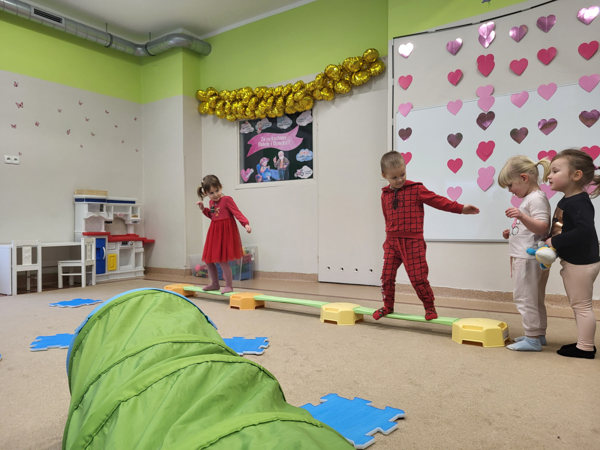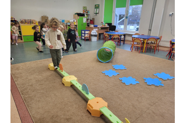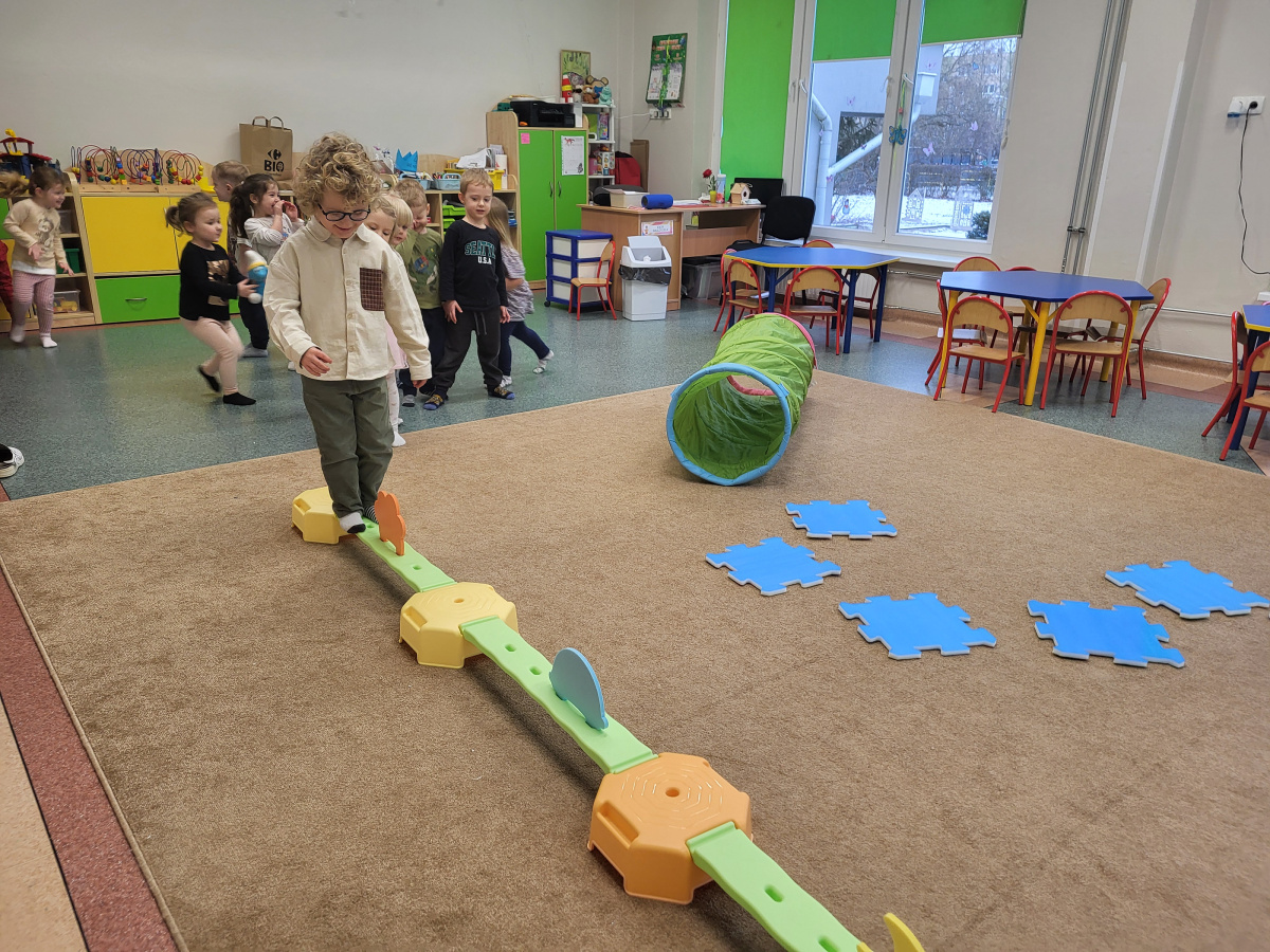 Nie tylko rano świetnie się bawimy- także jedno ze styczniowych popołudni spędziliśmy bardzo aktywnie. Dzieci z grupy „Motylki” pokonywały tor przeszkód oraz ćwiczyły utrzymywanie równowagi. Był to czas pełen ruchu, radości i doskonalenia sprawności fizycznej.
