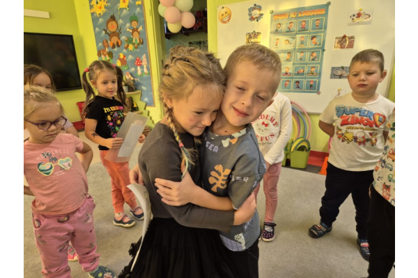 W piątek 29 września grupa 'Zajączki' żegnała koleżankę z grupy. Uściski, serdeczności oraz miłe słowa wypowiedziały dzieci do Oliwki. Kochana Oliwko raz jeszcze życzymy Ci wszystkiego najlepszego w nowym miejscu, bądź uśmiechnięta, radosna, rozwijaj zainteresowania i zdobywaj nowe doświadczenia ????