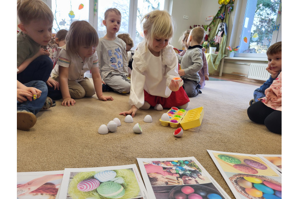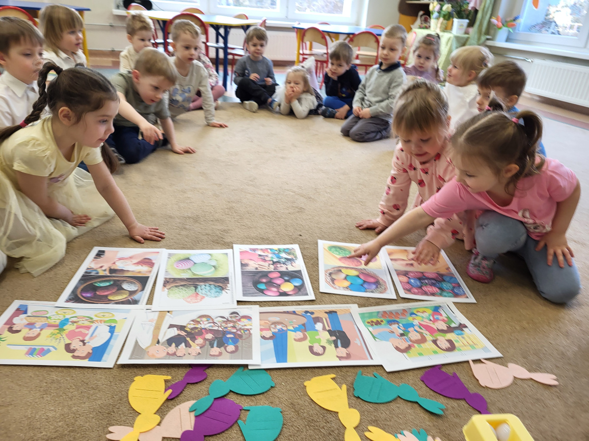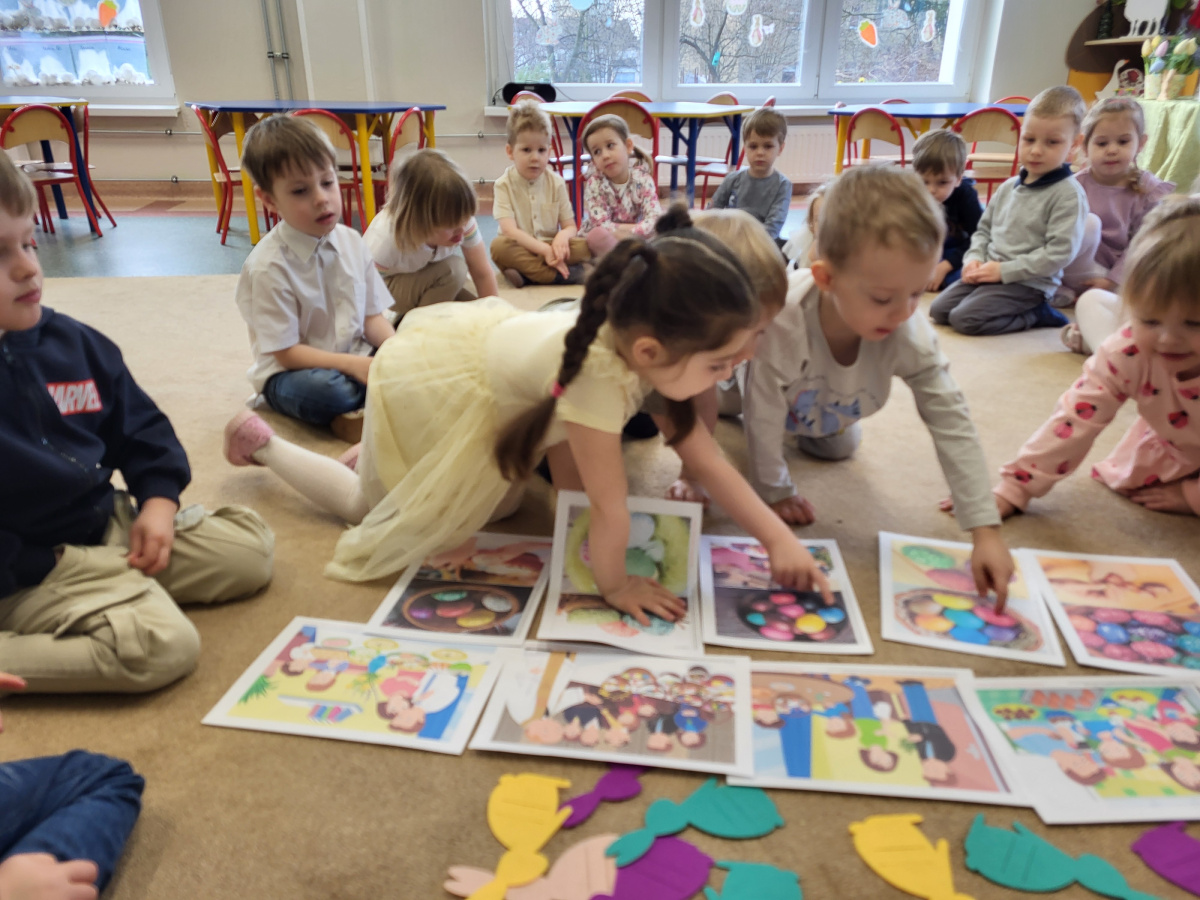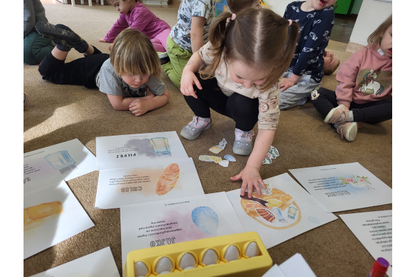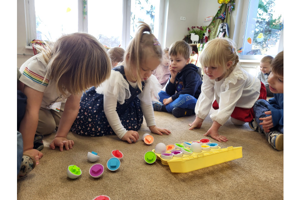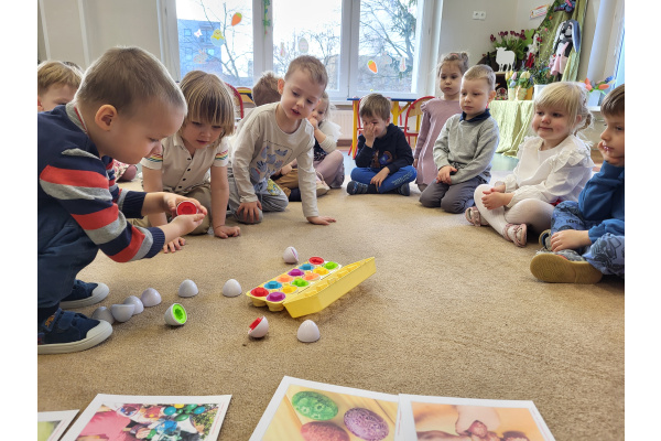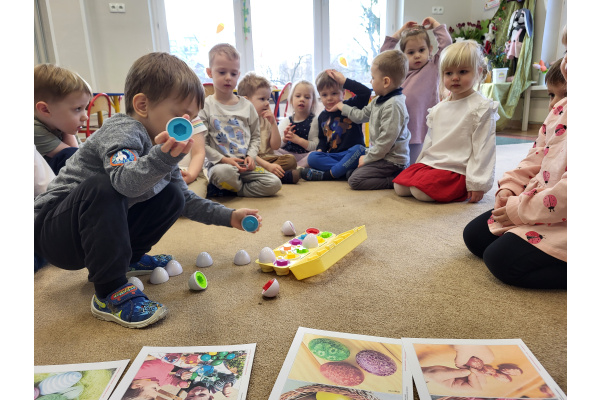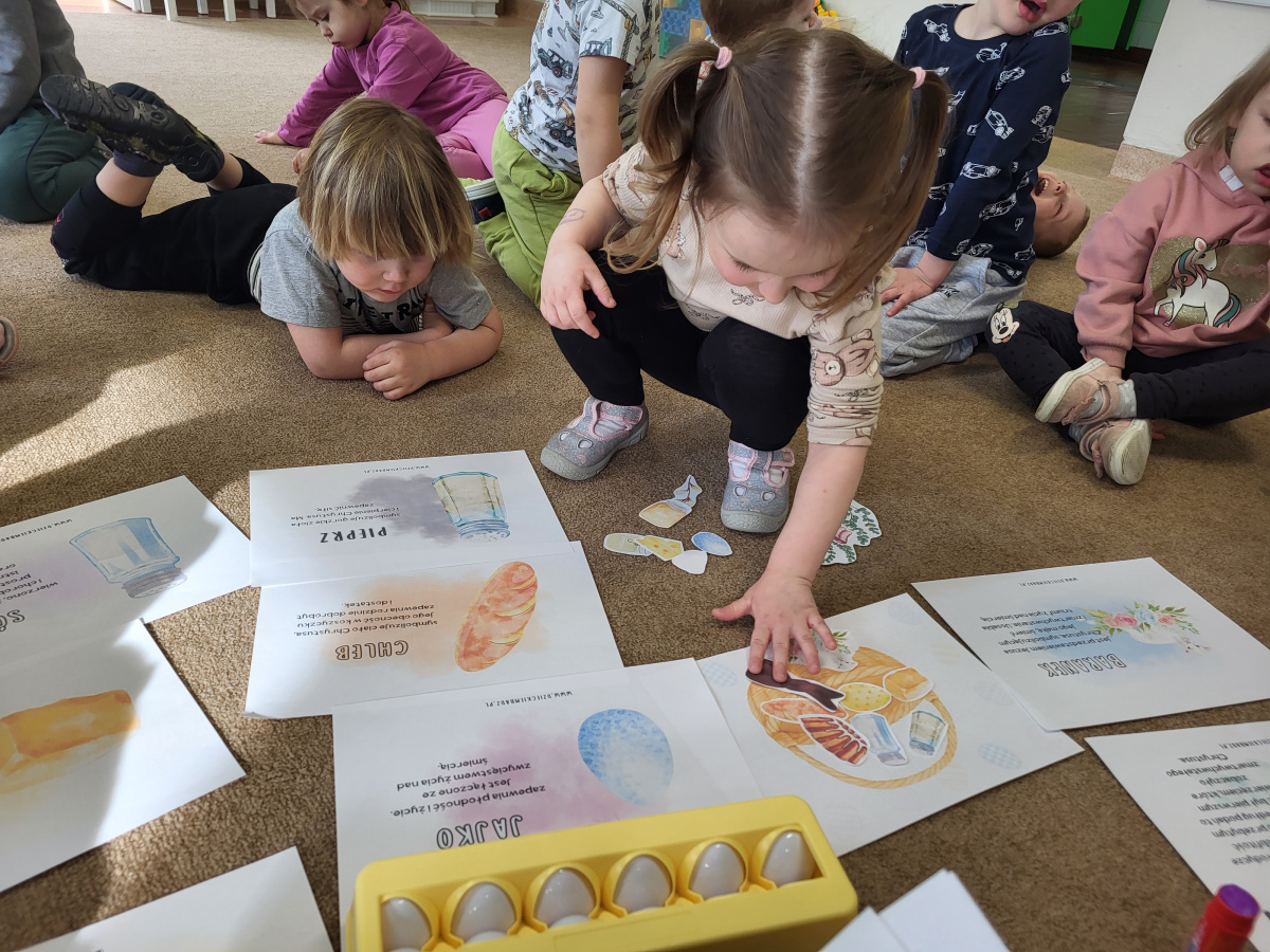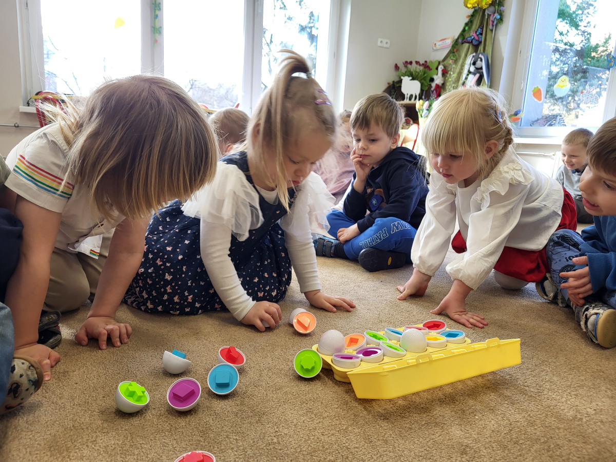 Dzieci z grupy „Motylki” poznawały tradycje wielkanocne. Przedszkolaki dowiedziały się, co wkładamy do świątecznego koszyczka oraz jakie zwyczaje i potrawy towarzyszą Wielkanocy. Podczas zajęć dzieci odkrywały także kolory i kształty, korzystając z edukacyjnych, kolorowych jajek. Był to czas pełen ciekawych odkryć, który wprowadził wszystkich w świąteczny nastrój.