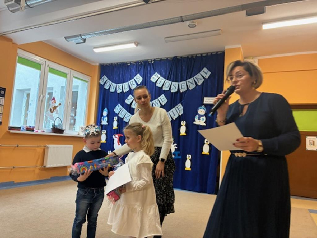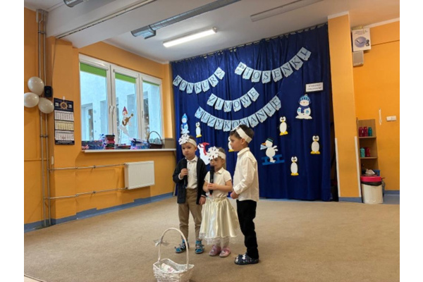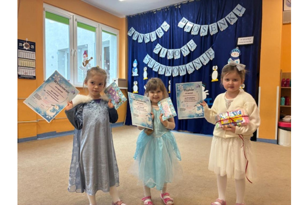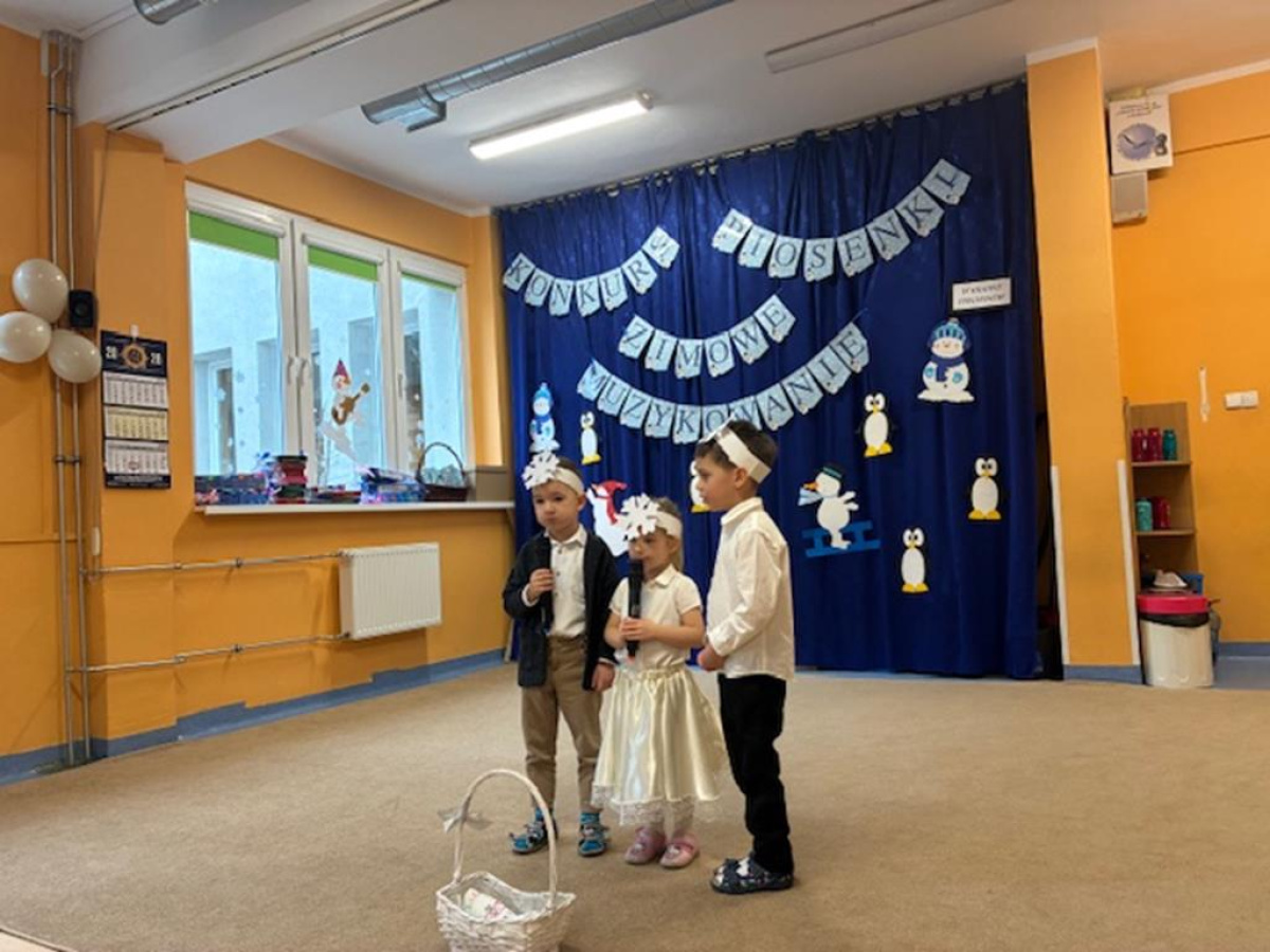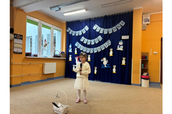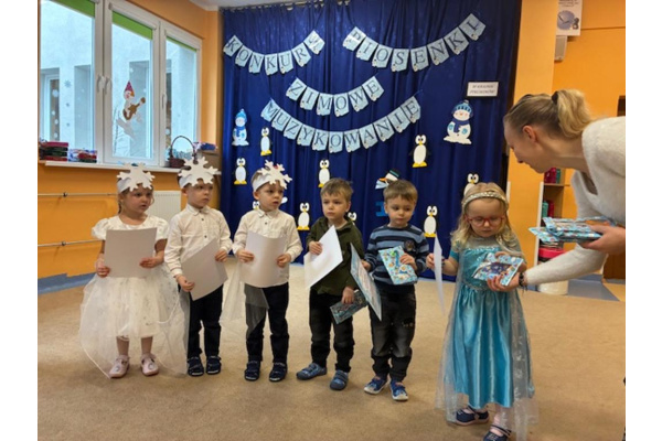 W czwartek 19. lutego w naszym przedszkolu odbył się Konkurs Piosenki "Zimowe Muzykowanie". W konkursie wzięli udział przedstawiciele każdej z grup. Wszystkie dzieci były pięknie przygotowane, wspaniale śpiewały, a w przedszkolu zapanował iście zimowy klimat. Jury długo obradowało nad przyznaniem nagród, ponieważ miało niełatwy orzech do zgryzienia. Imprezę umiliły nam dodatkowo występy dzieci z grupy "Liski" oraz "Kreciki". Ostatecznie wyłoniono I,II i III miejsce w kategoriach wiekowych 3-4latków oraz 5-6latków. Pozostałe dzieci biorące udział w konkursie otrzymały wyróżnienia. Wszystkim przedszkolakom biorącym udział w "Zimowym muzykowaniu" gratulujemy wspaniałych występów oraz niemałej odwagi podczas popisów przed tak dużą publicznością!