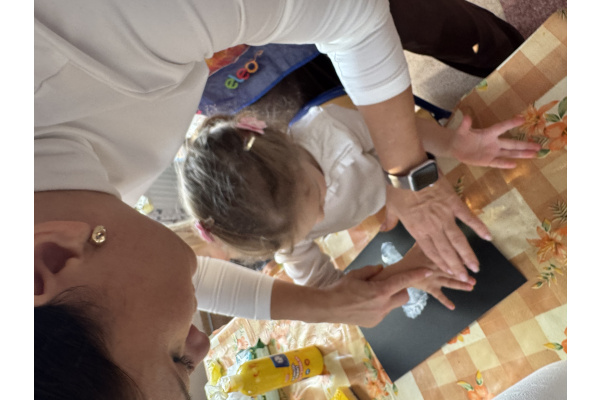 Czas świąt zbliża się coraz większymi krokami. Misie, aby zdążyć na czas z upominkami i życzeniami postanowiły uwiecznić swój krok na kartce a dokładnie ślad - bardzo wyjątkowy, ponieważ jest to odcisk stópki i dłoni. Z tych cudnych pieczęci powstanie Świąteczny Aniołek.