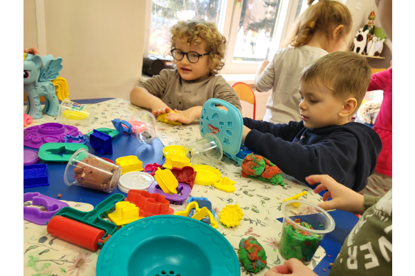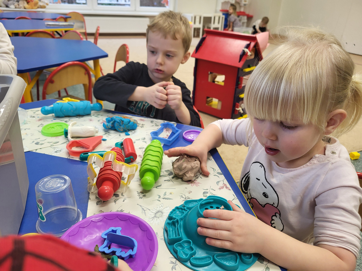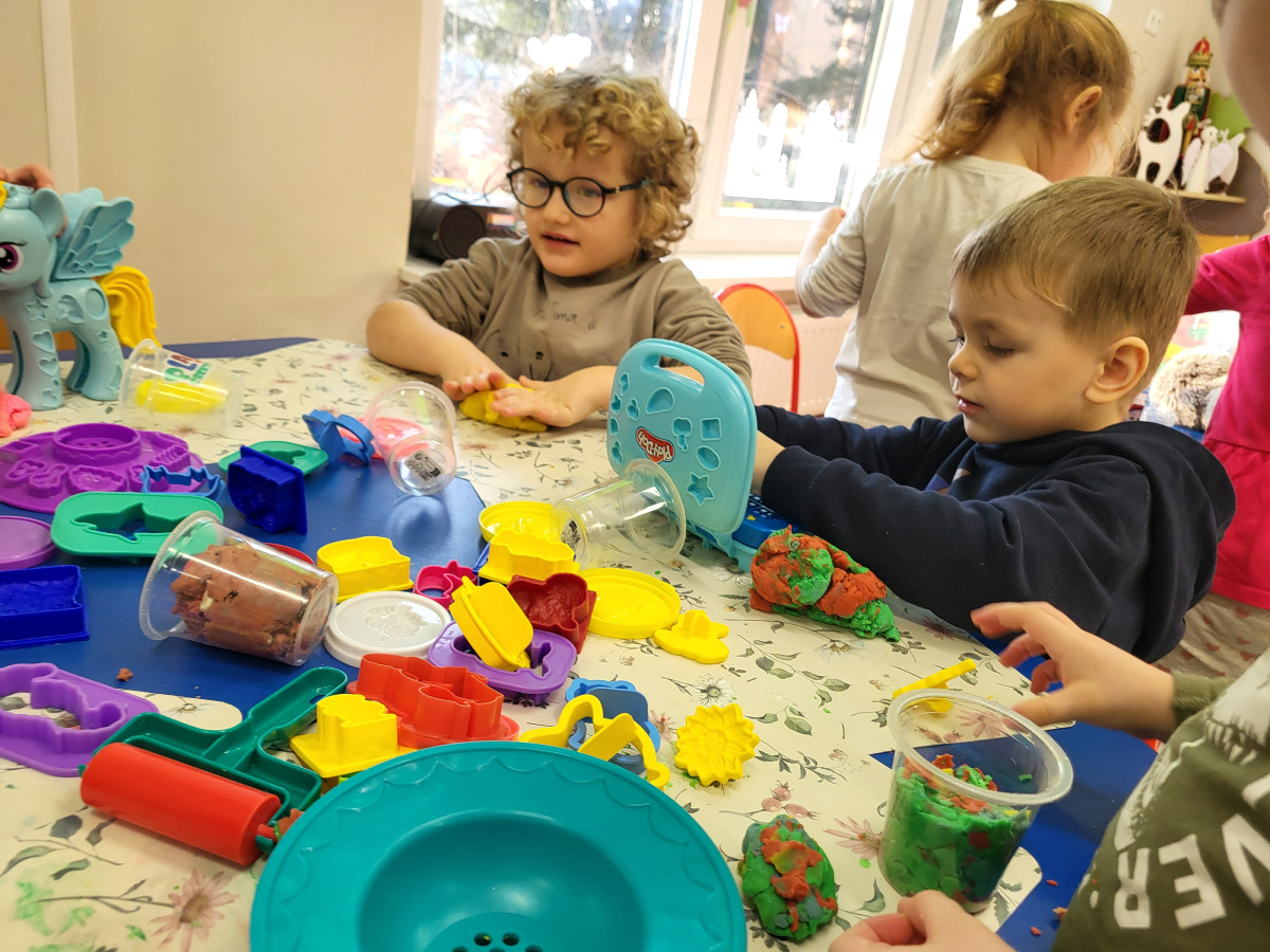 Dzięki zaangażowaniu rodziców otrzymaliśmy większą ilość ciastoliny, która pozwala dzieciom jeszcze częściej rozwijać motorykę małą podczas zajęć i zabaw. Przedszkolaki uwielbiają tworzyć z ciastoliny- bawią się z ogromnym zaangażowaniem i często nie chcą kończyć zabawy. Serdecznie dziękujemy rodzicom za wsparcie i pomoc.