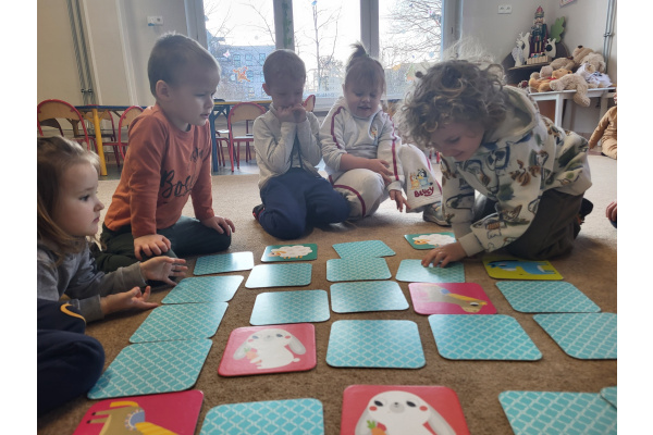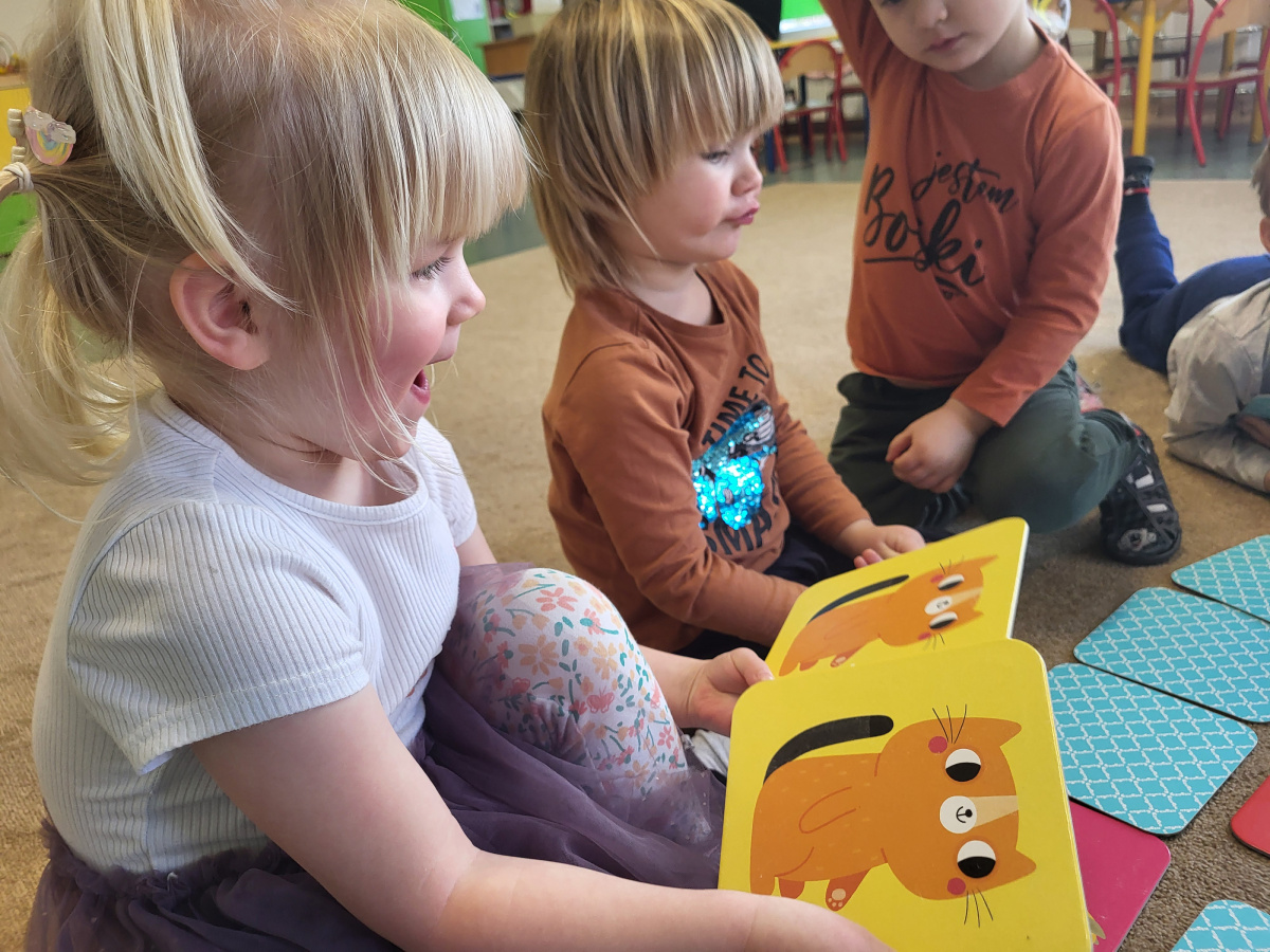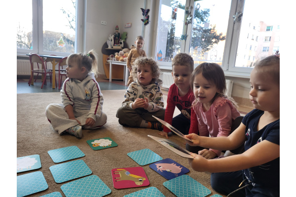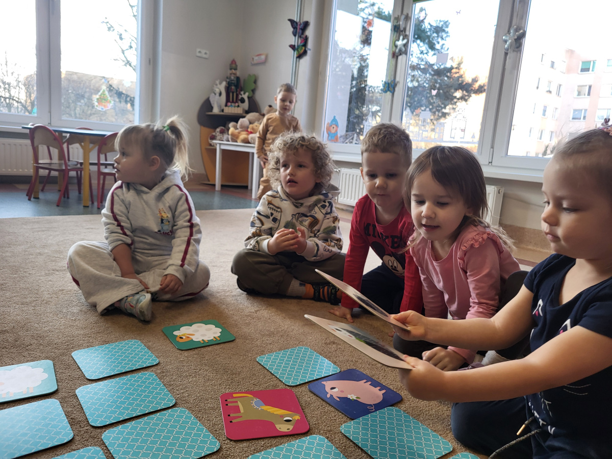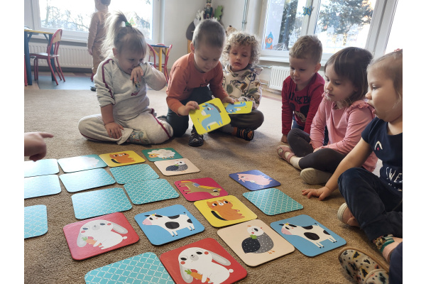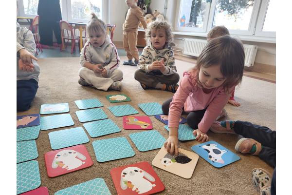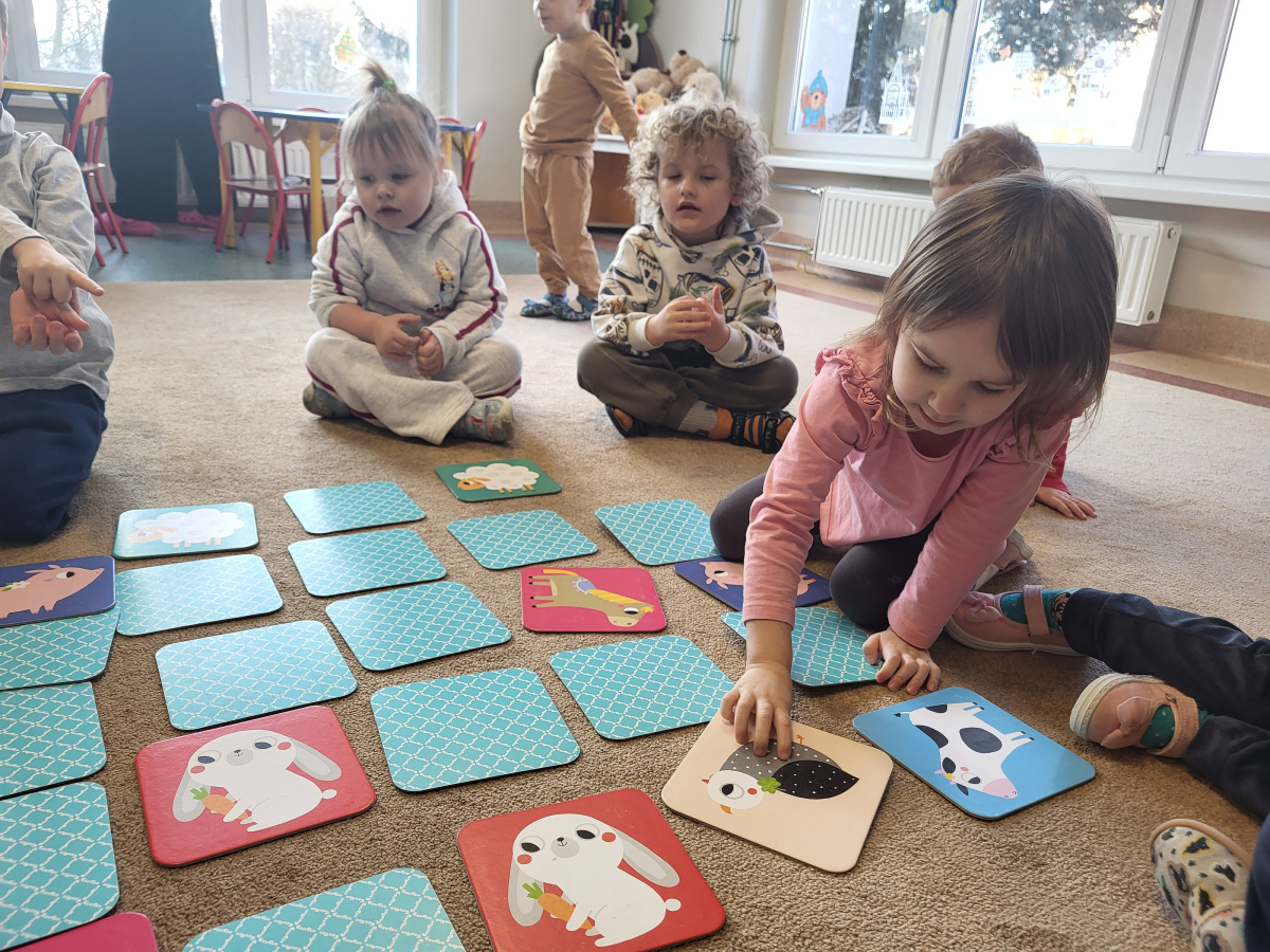 Dzieci z grupy „Motylki” uczyły się grać w grę „Memory”, podczas której wyszukiwały różne zwierzątka. Zabawa sprawiła im wiele radości, a dzieci bardzo dobrze radziły sobie z wykonywaniem zadania. Zajęcia rozwijały spostrzegawczość i koncentrację.