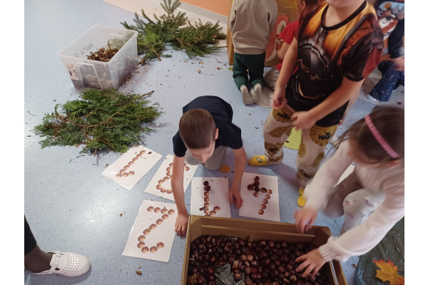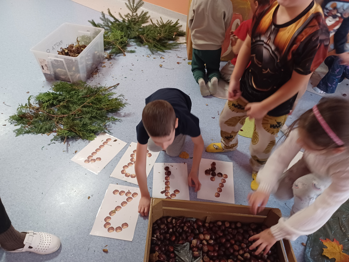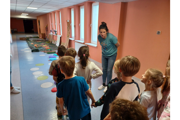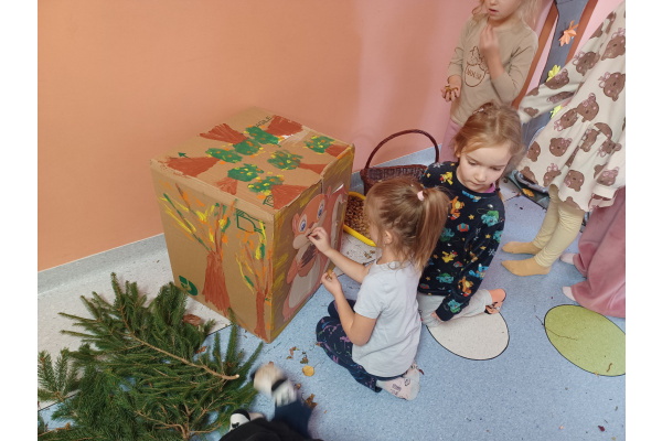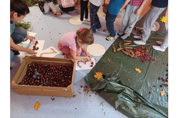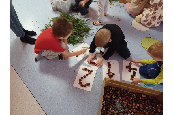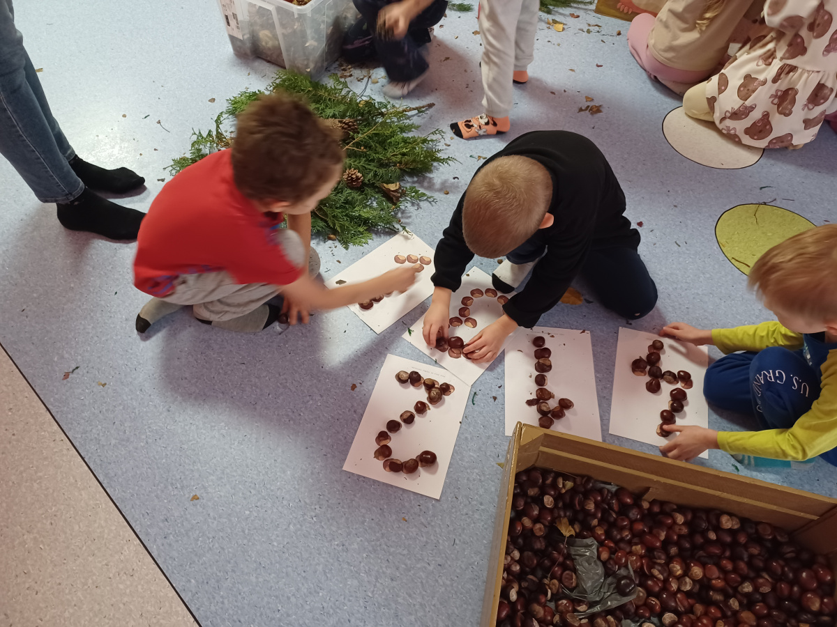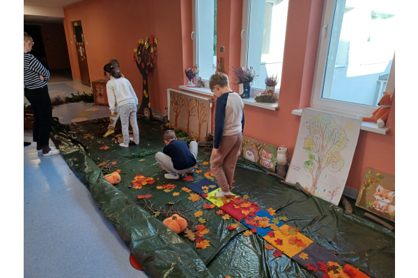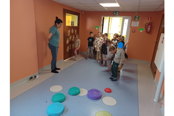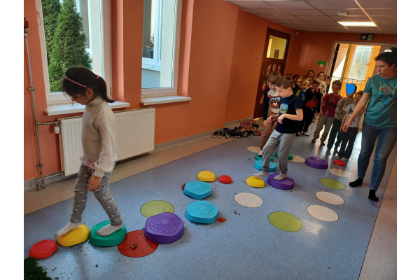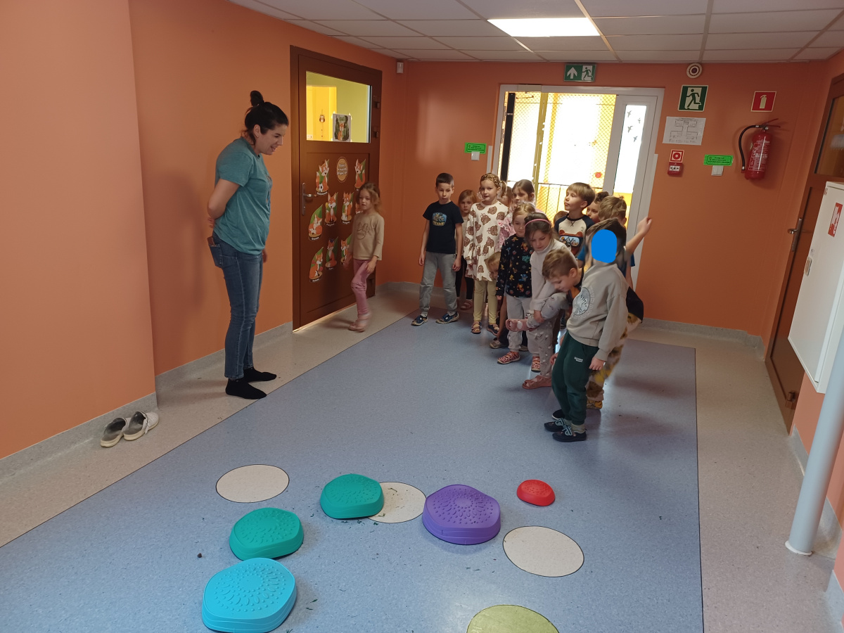 W przedszkolu zorganizowano Jesienną Ścieżkę Sensoryczną, która była wykonana z darów jesieni. Była to doskonała okazja do stymulacji zmysłówz rozwoju koordynacji wzrokowo-ruchowej, równowagi, a także wspieranie intergracji sensorycznej. Dzieci bawiły się doskonale, miały przy ty wiele radości.