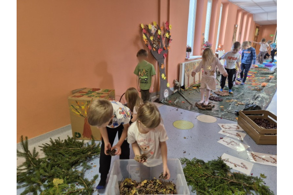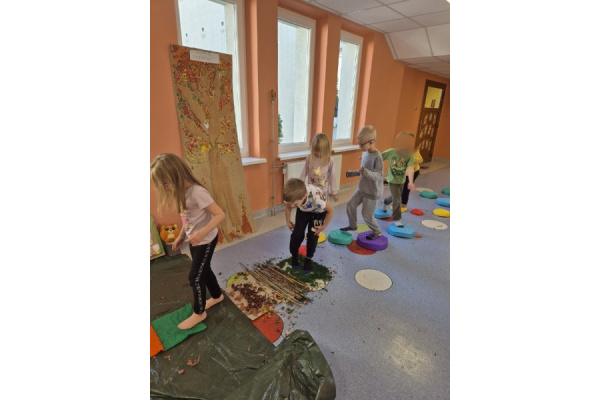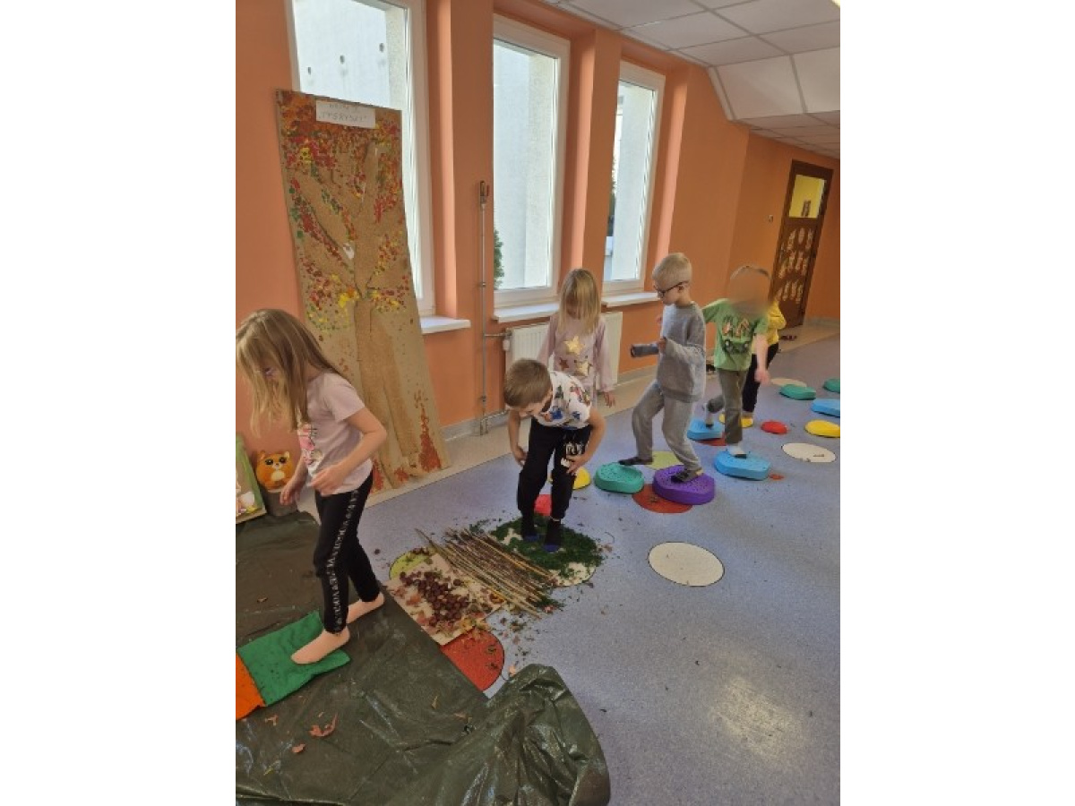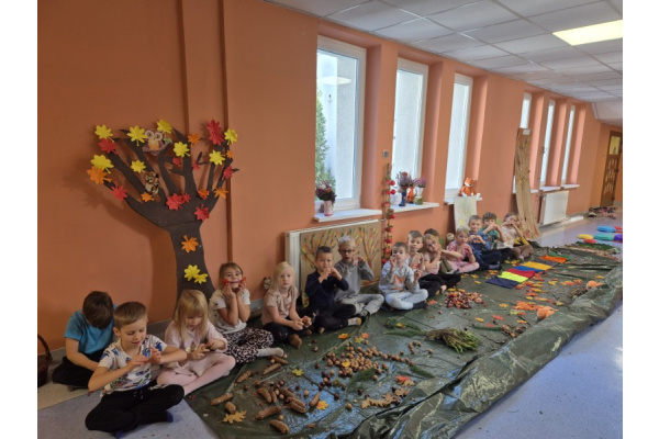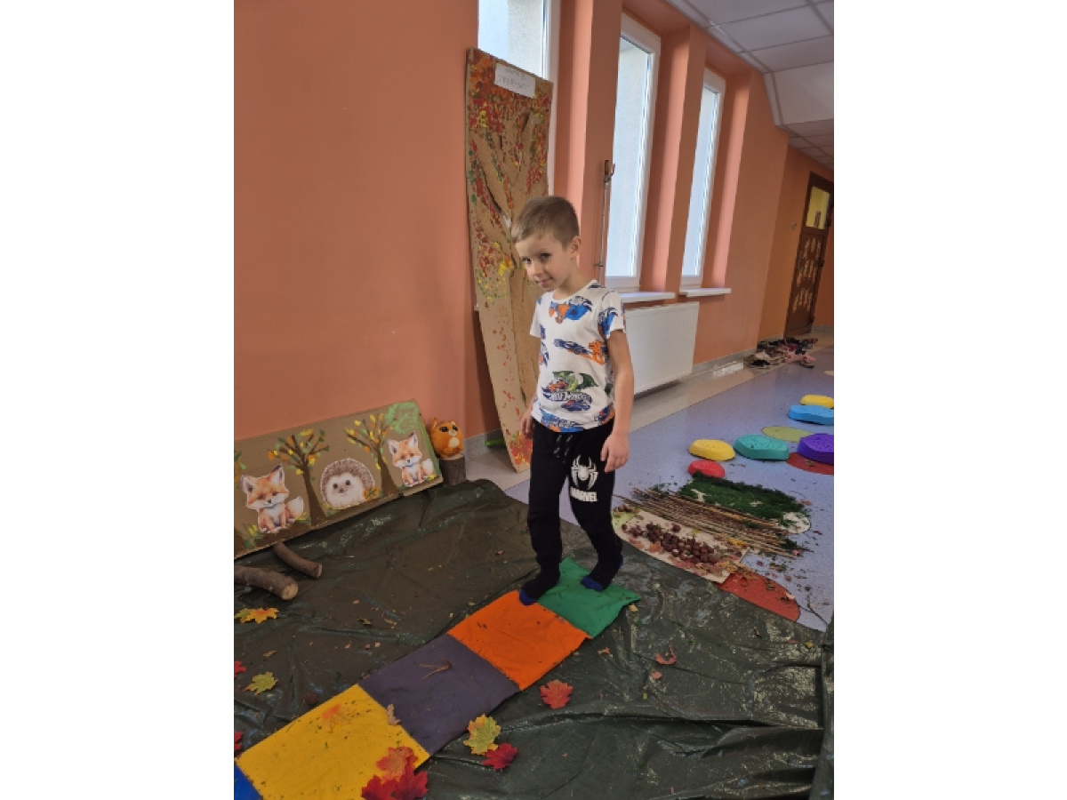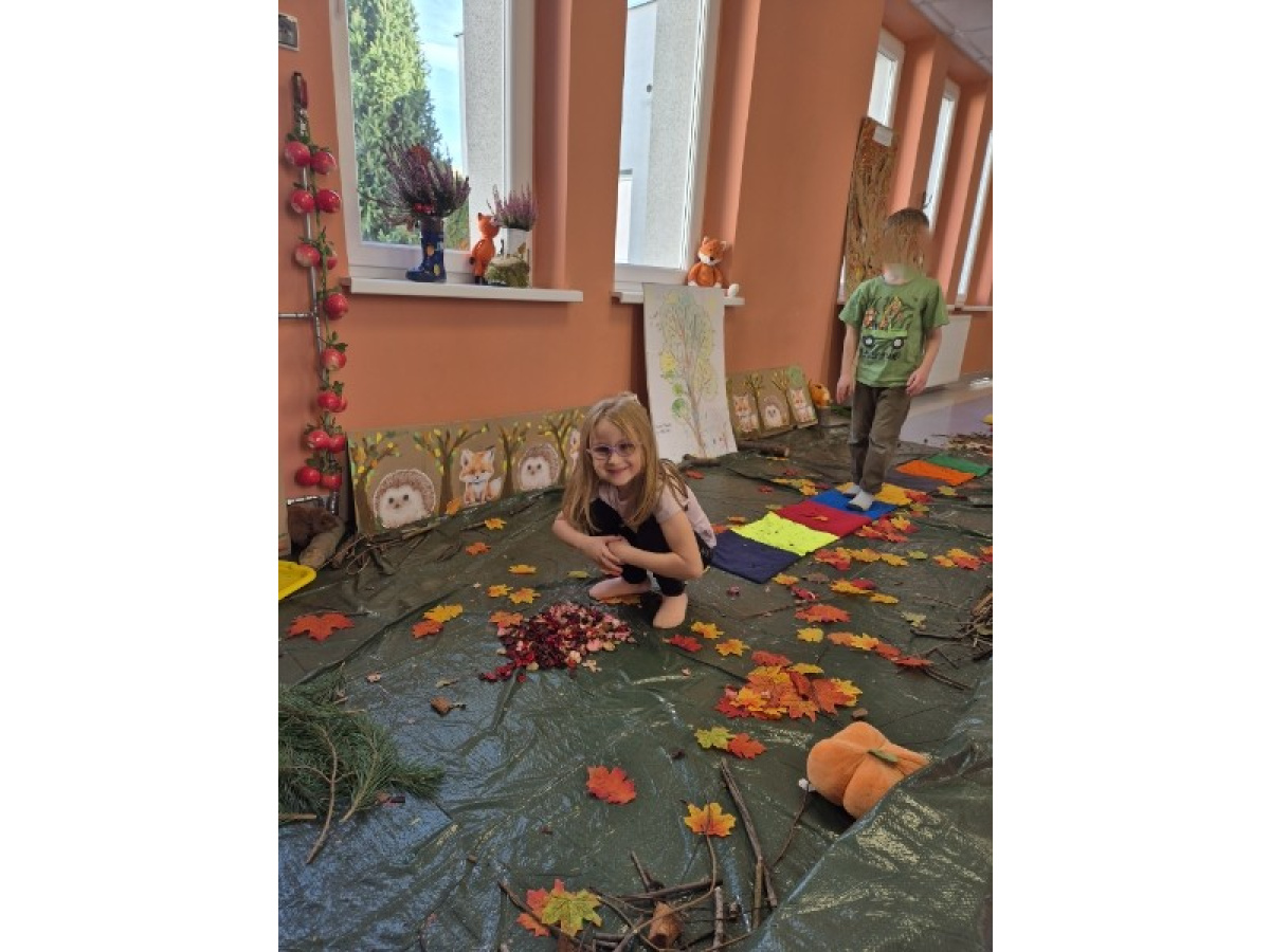 Świetliki codziennie przyglądają się zmianom zachodzącym w przyrodzie. Jesień to pora roku, która maluje świat wspaniałymi kolorami, jak również wiele może nam ofiarować. Od kilku dni zbieraliśmy wszelkie dary jesieni. Kasztany, orzechy, szyszki, liście... Wszystko to okazało się drogocennymi skarbami, dzięki którym w pochmurny dzień mogliśmy stworzyć w przedszkolu własną jesienną ścieżkę sensoryczną.