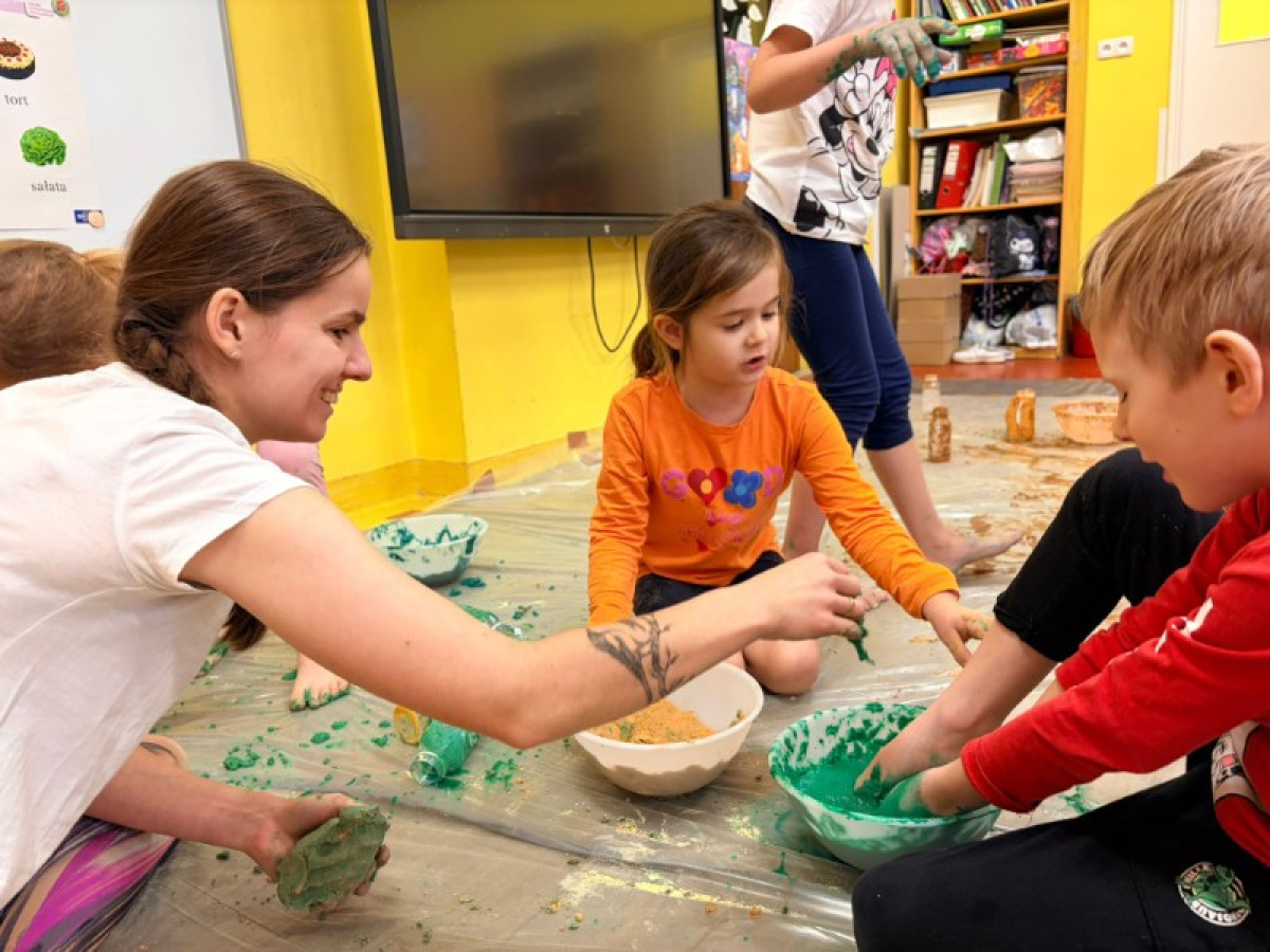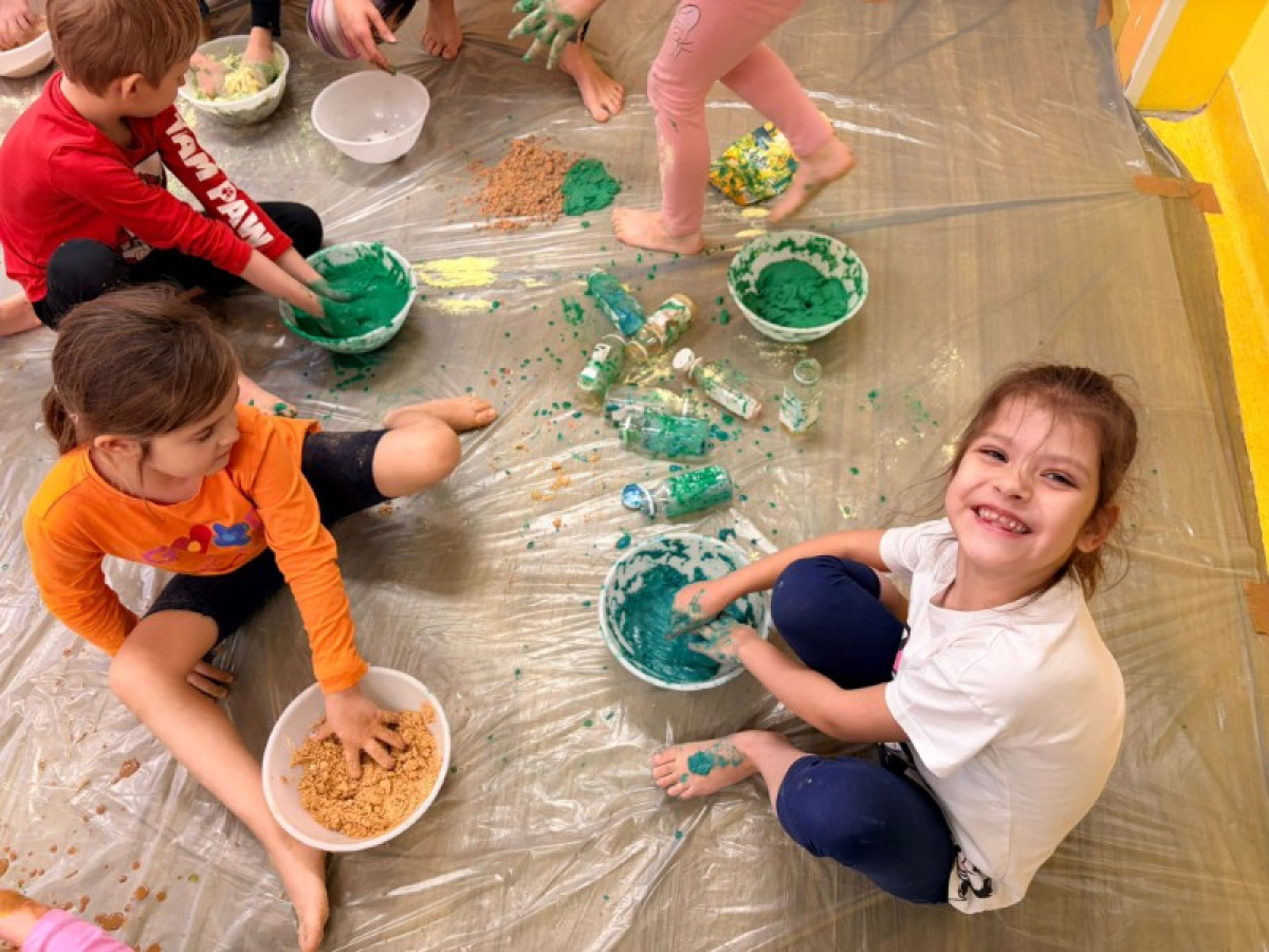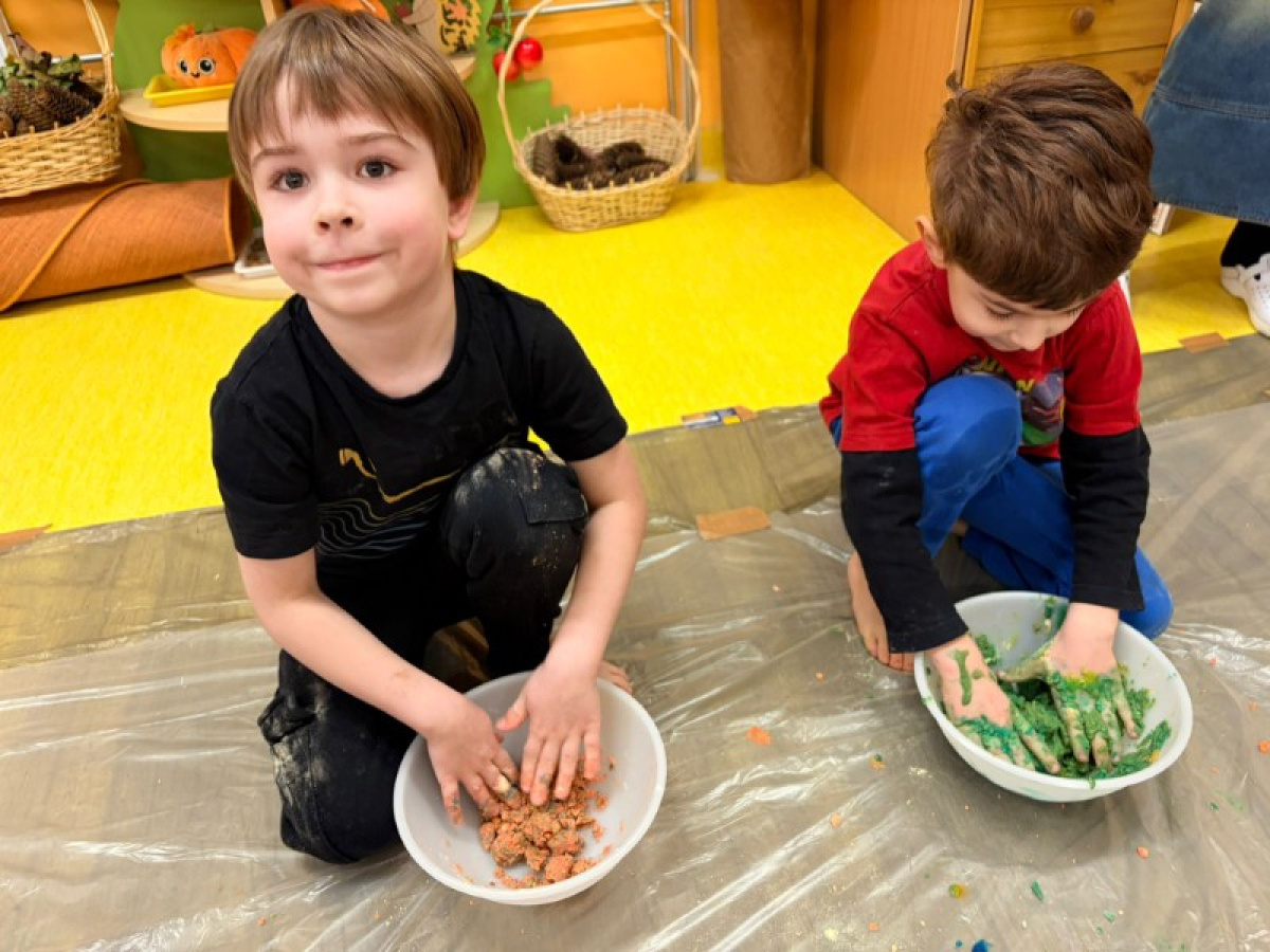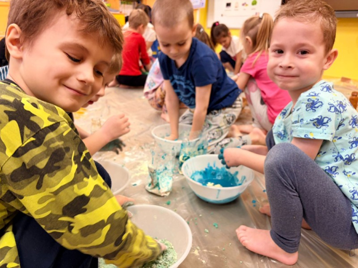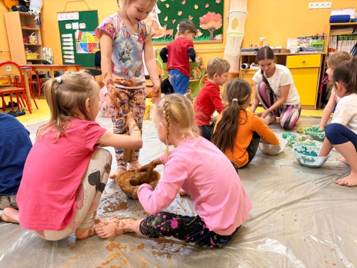 Kreciki tydzień rozpoczęły kolorowo. Przygotowane w zestaw ubrań na zmianę oraz dobry humor rozpoczęły swoje działania. Odmierzanie, mieszanie, zagniatanie to najlepsza forma usprawniania małych rączek. Zajęcia marki SENSOPLASTYKA to przede wszystkim praca w zgodnie z indywidualnym profilem sensorycznym dziecka. Dzięki temu, że każdy w grupie jest inny i ma wyjątkowe potrzeby powstało wiele mas, o różnej konsystencji. Był śnieg, był piasek kinetyczny, plastelina a nawet błotko. To własne jeden z tych dni, kiedy dzieci mogą swobodnie i według własnego pomysłu mieszać róże kolory i oceniać, czy powstał taki, na którym każdemu zależało.