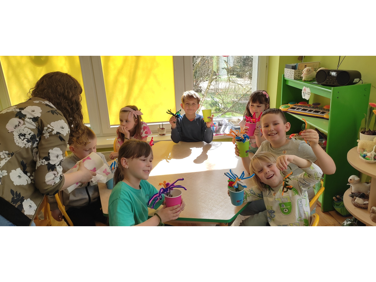 Każde spotkanie z rodzicami wnosi dużo dobrego. Dziś dzieci z grupy „Sówki” podczas spotkania z mamą Tosi wykonały piękne kwiatki z drucików kreatywnych. Ileż radości przyniosła dzieciom świadomość, że same potrafią wykonać takie cudeńka. Pani Ewelino, serdecznie dziękujemy :)