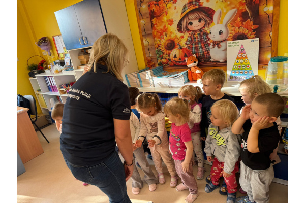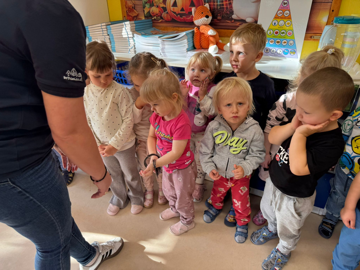 Misie uczestniczyły w spotkaniu z policjantkami. Poznały wygląd munduru, akcesoria do chwytania złoczyńców i dowiedziały sie jak bronić się przed zagrożeniami.