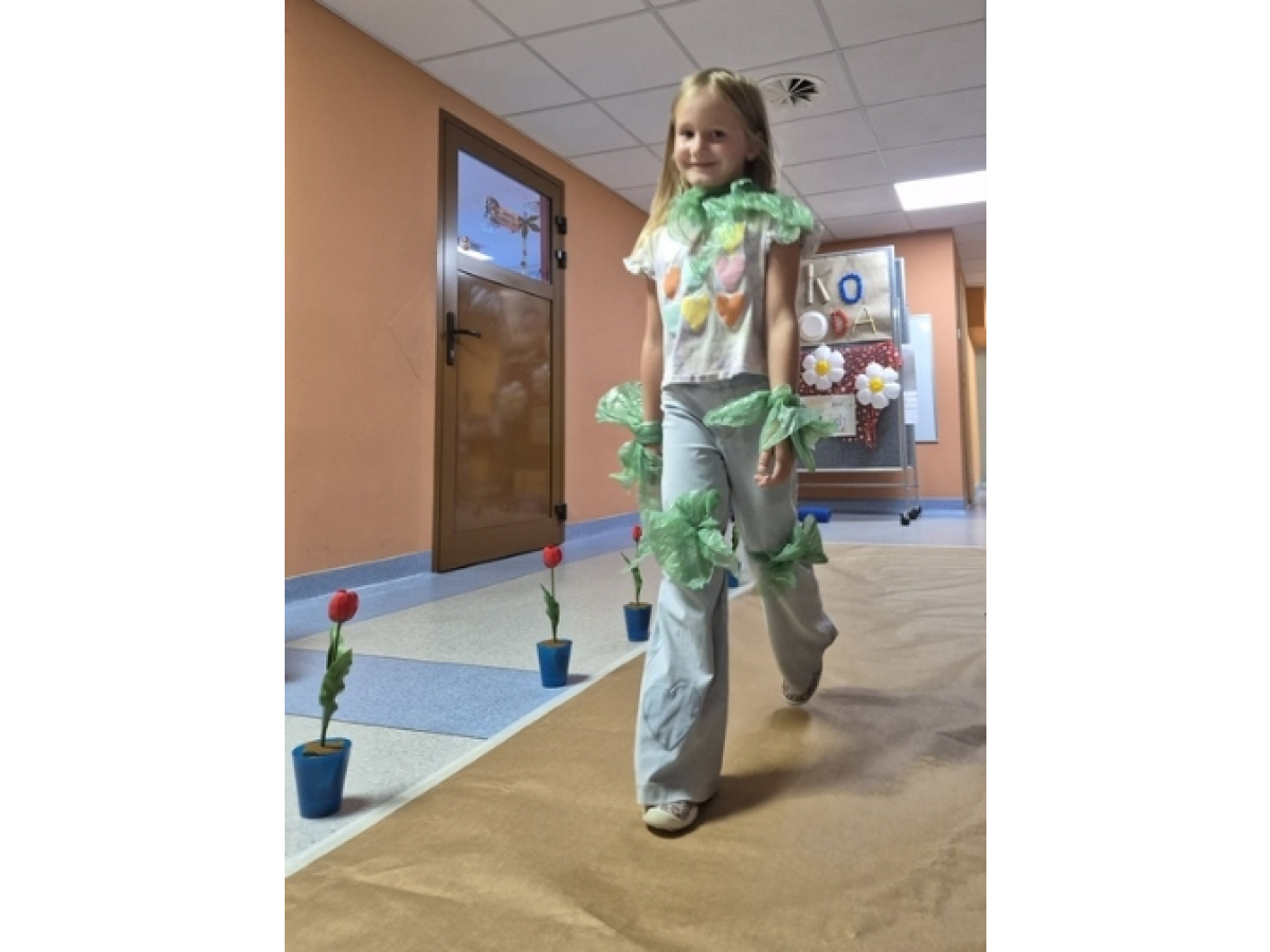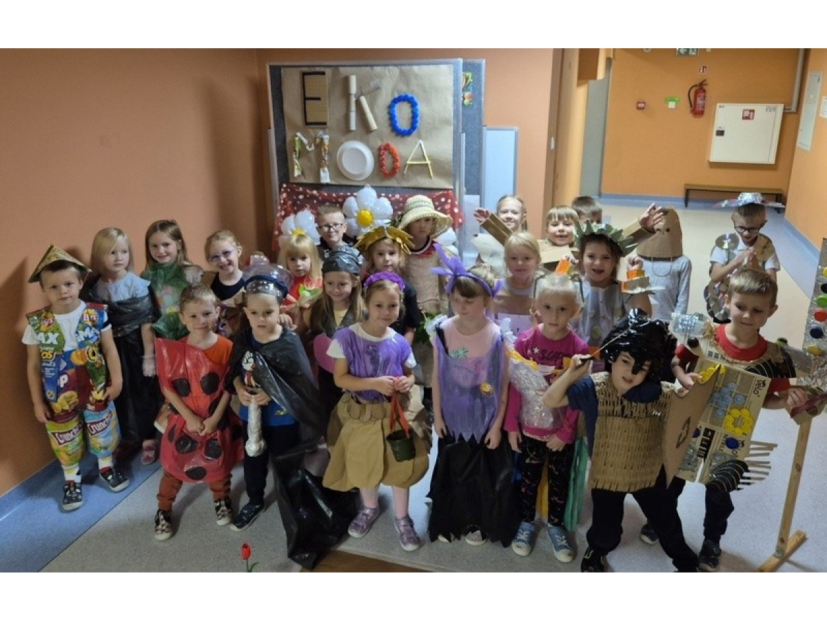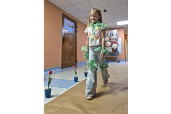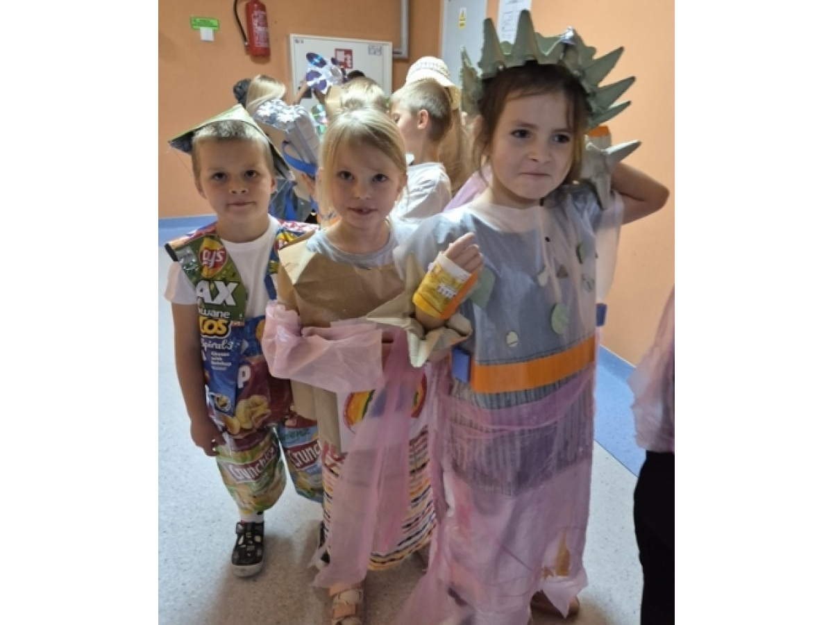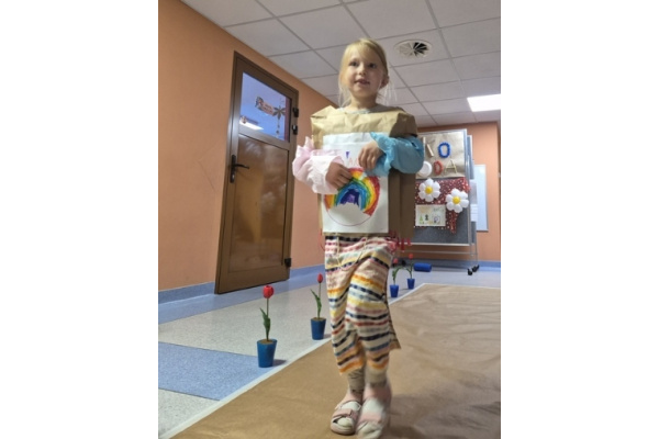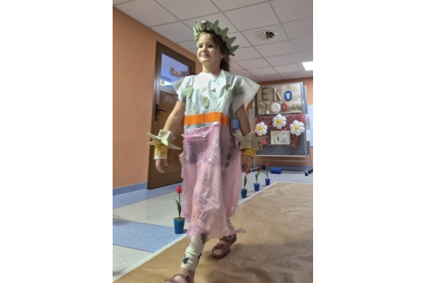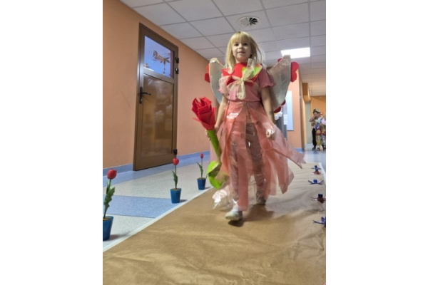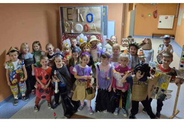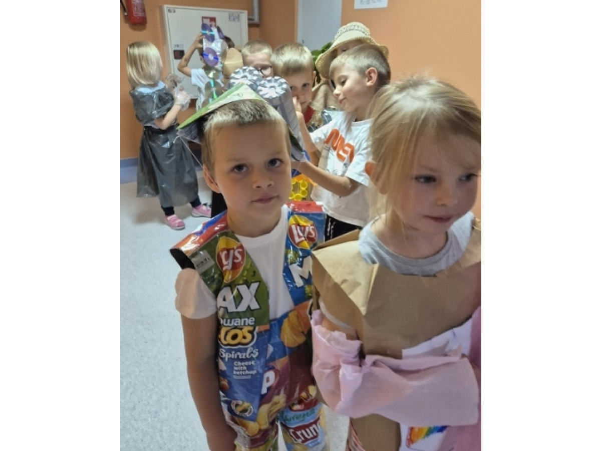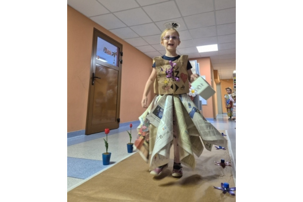 Po wspólnej pracy odbył się wyjątkowy pokaz Eko-mody, podczas którego dzieci, przy wsparciu rodziców, zaprezentowały pomysłowe stroje wykonane z materiałów przeznaczonych do recyklingu.